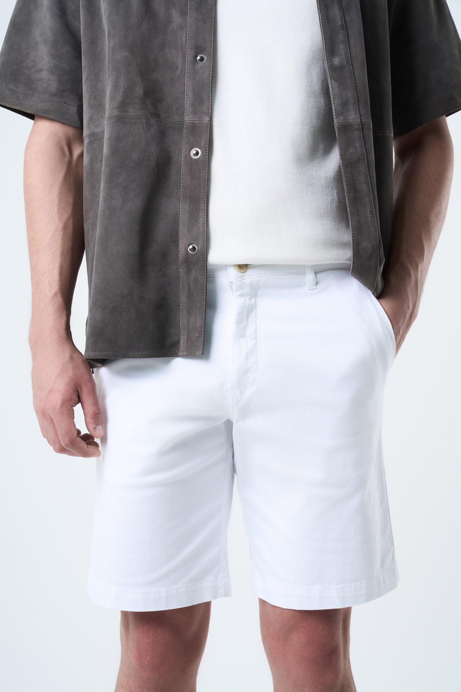 Elevating casual style, our bermuda shorts redefine comfort with their relaxed design and wide silhouette. Perfect for modern and versatile styling, they adapt to different looks, from elegant loafers to casual sneakers, reflecting a casual sophistication in every detail. Crafted in soft drill fabric, these shorts offer comfort and lightness for everyday wear. The subtly softened laundry process adds a contemporary touch, while the cool materials provide a constant feeling of comfort and freedom, making this garment an essential basic.