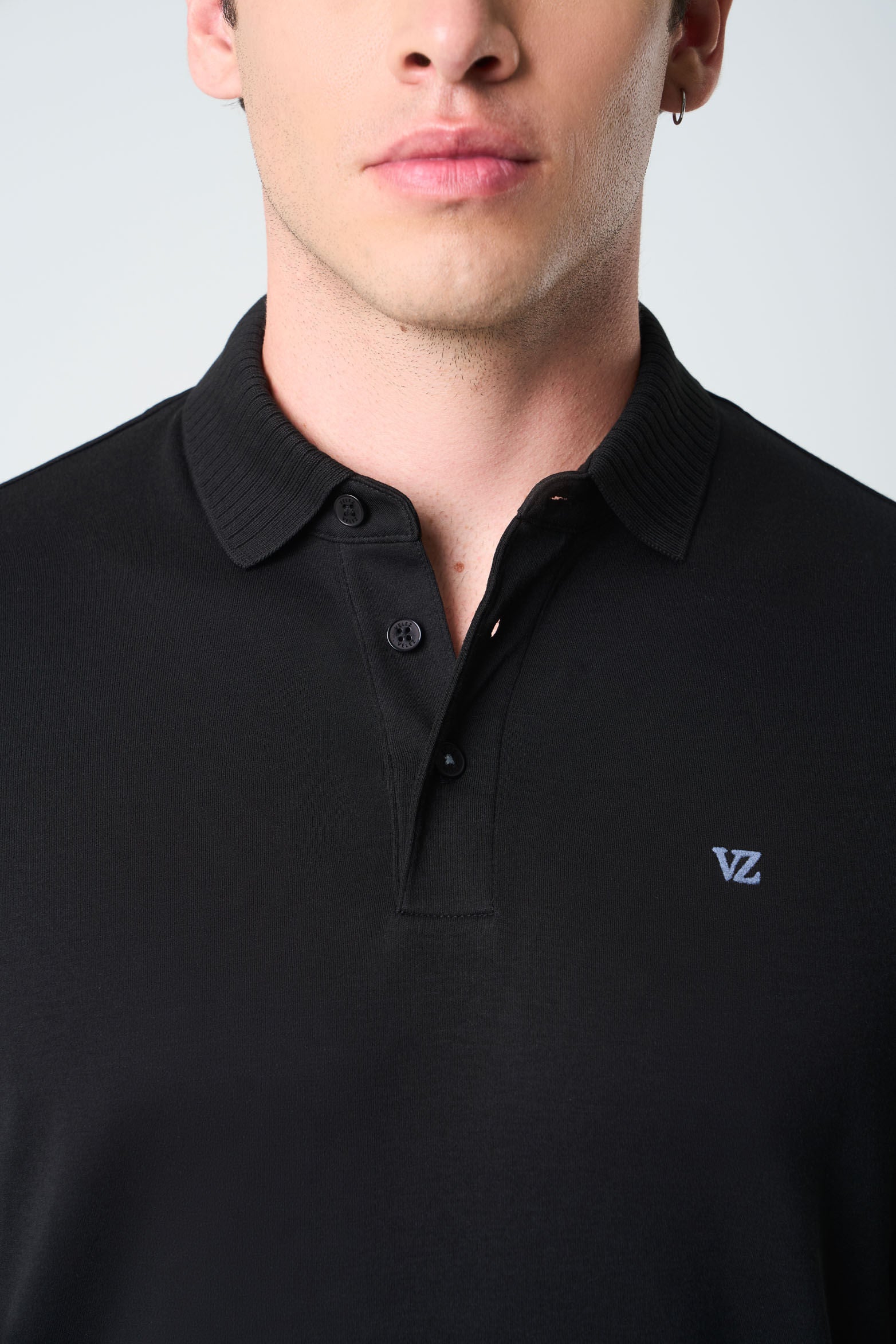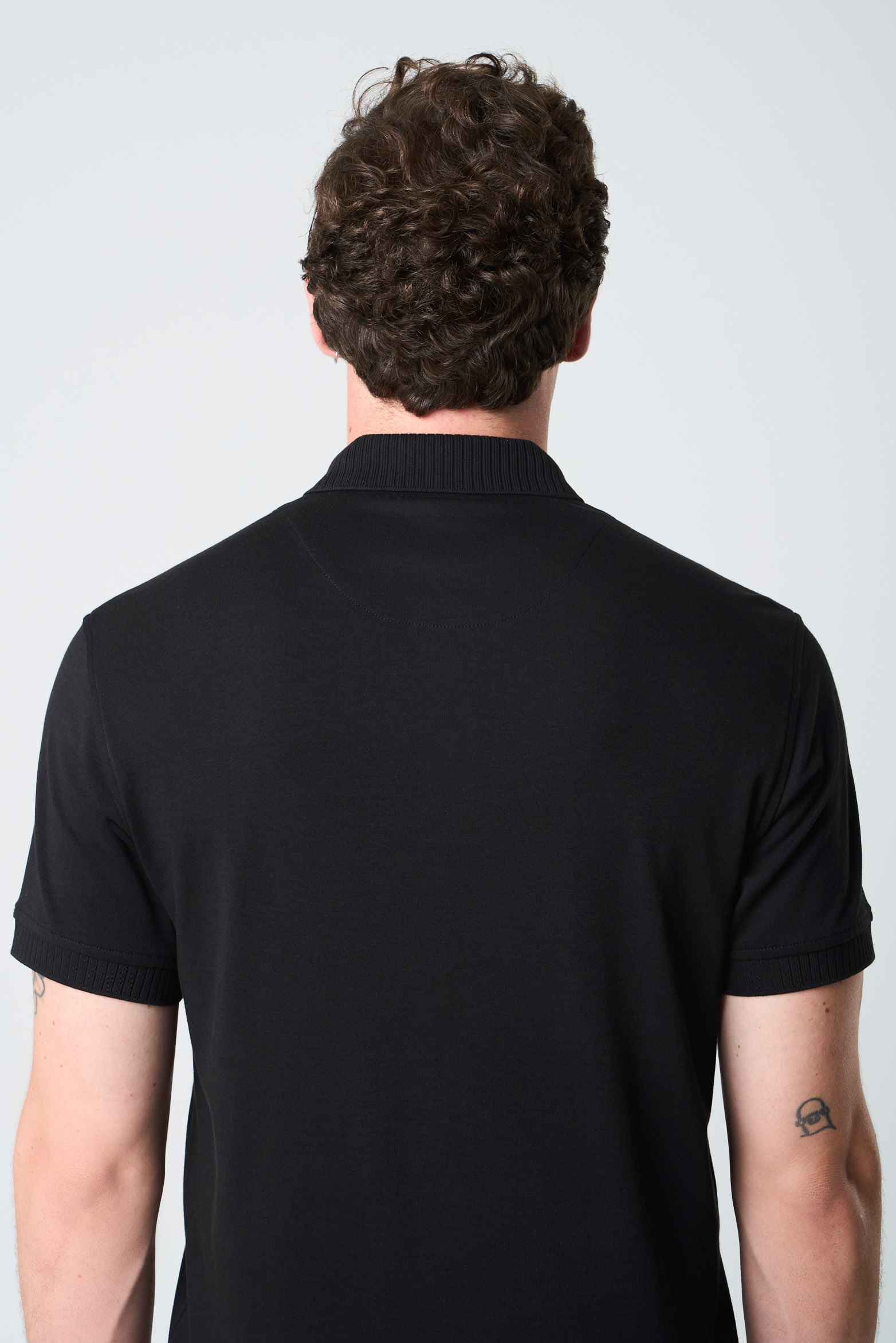An essential piece that perfectly balances classic and contemporary styles, elevating any look for any occasion. This shortsleeve polo, crafted with soft and breathable textures, is ideal for a modern outfit paired with a leather jacket and jeans, or with trousers and a blazer. Ribbed finishes on the cuffs and hem add a sophisticated touch, while its lightweight feel ensures freshness and comfort. A timeless wardrobe staple.