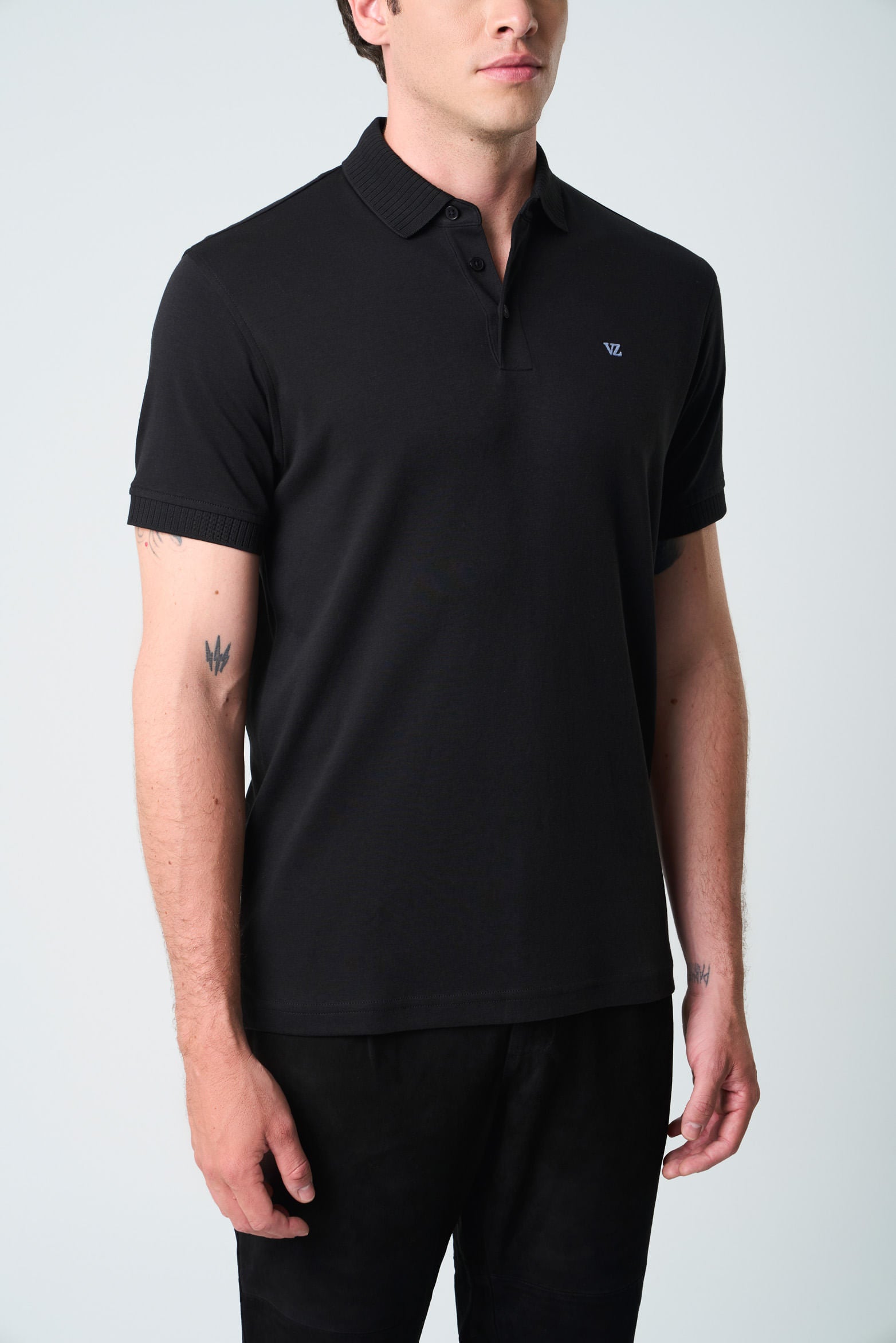 Alcor ShortSleeve Polo for Men with Ribbed Detail