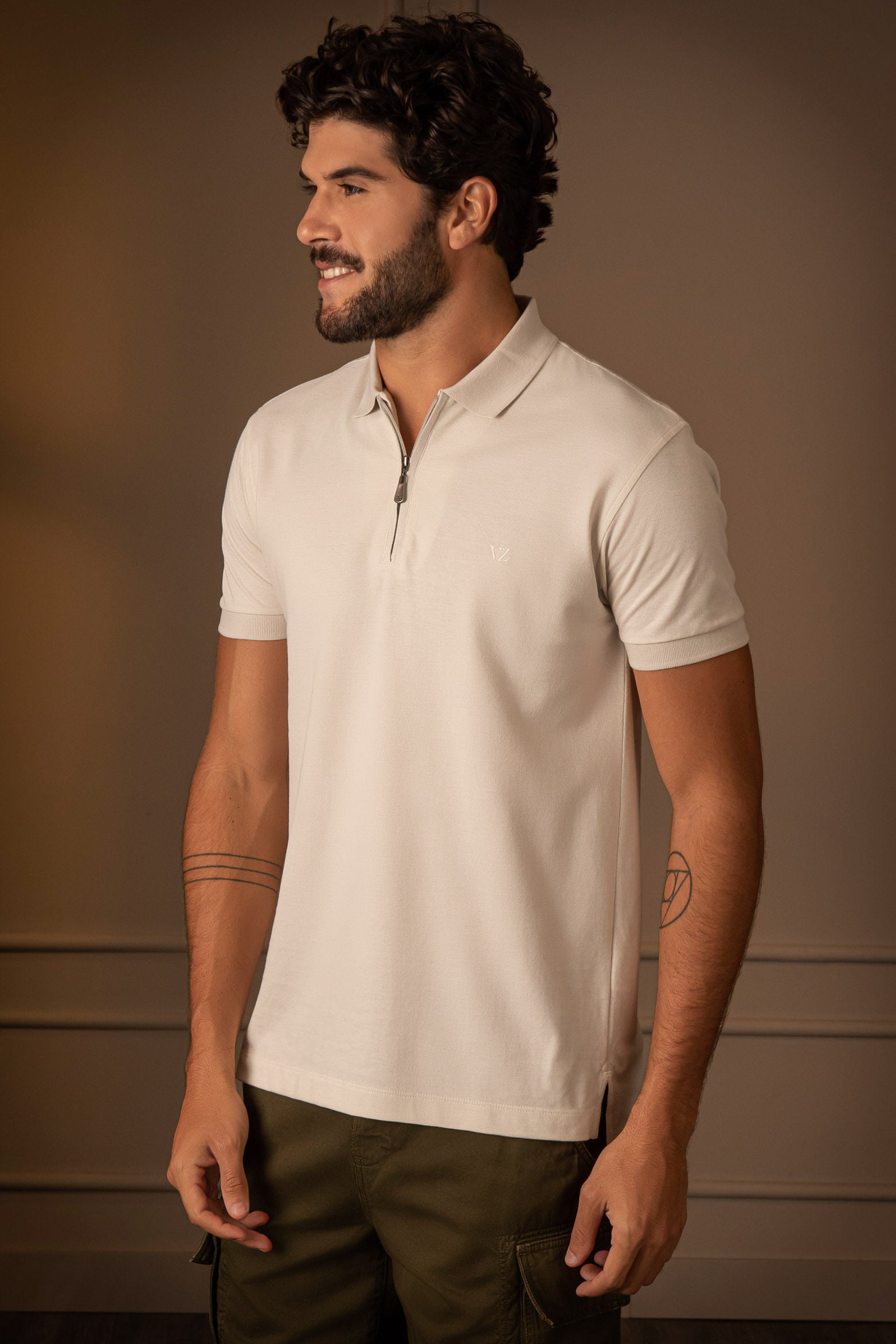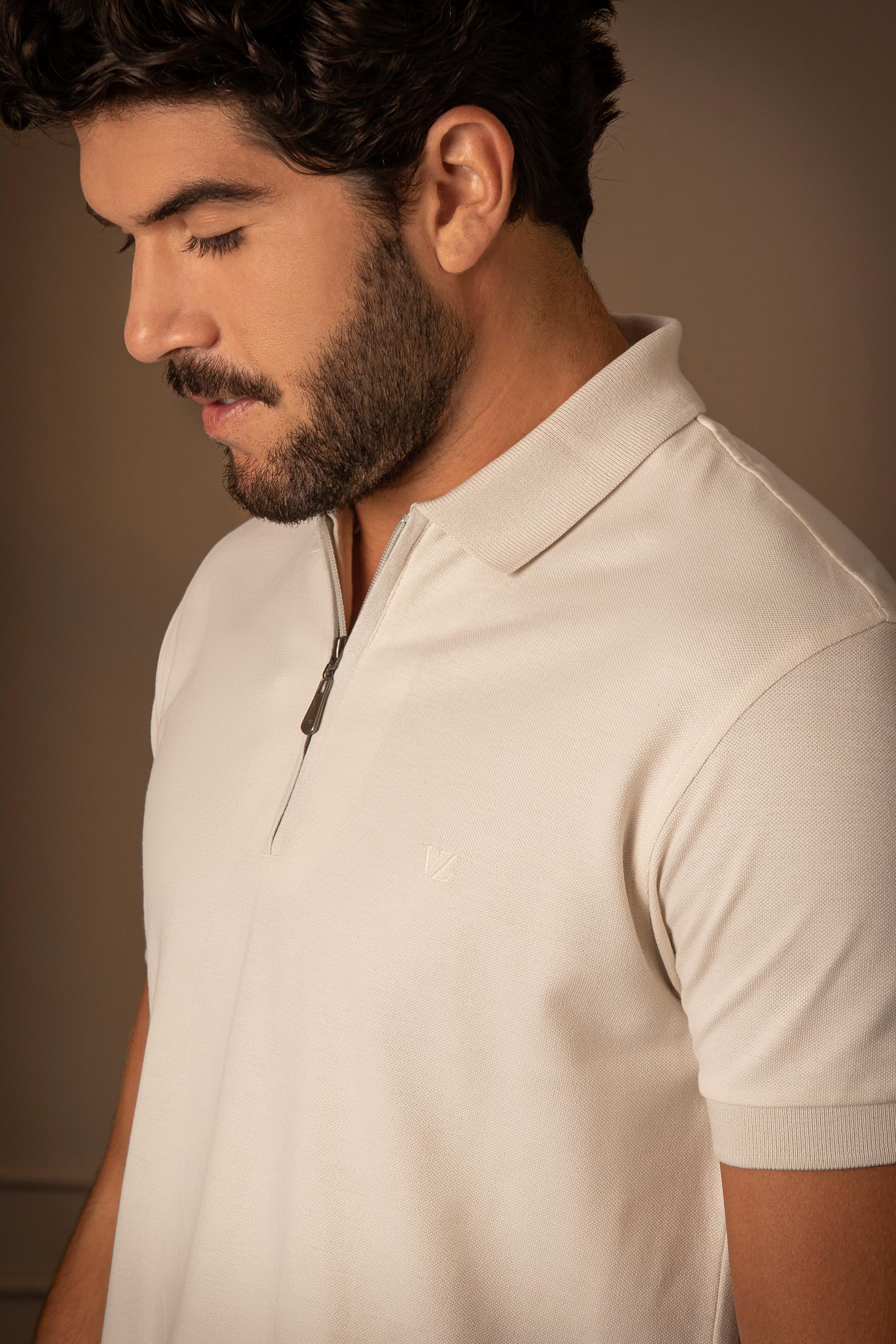 Alma Casual Cotton Polo for Men, Cream Zipper