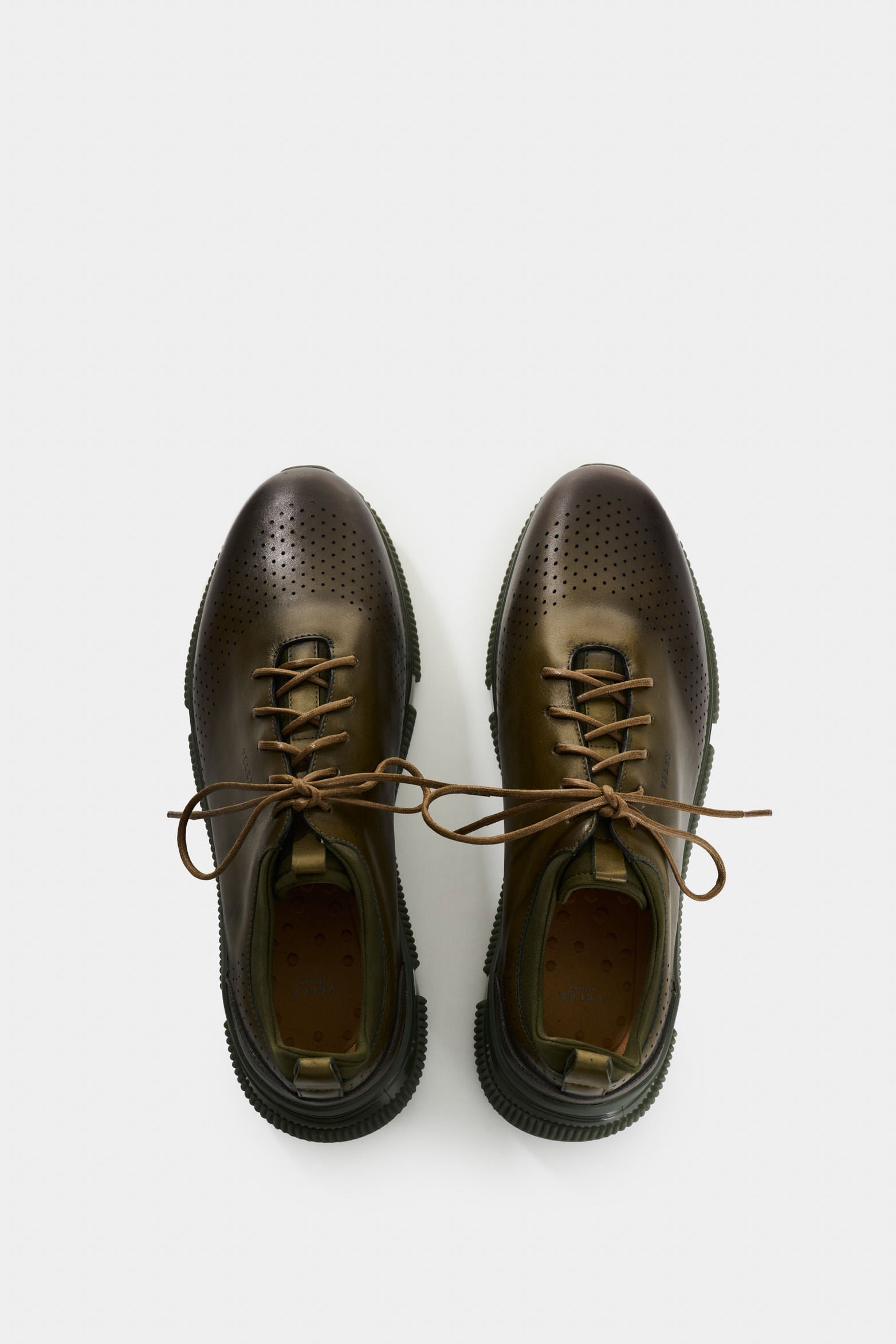 A design that merges the heritage of craftsmanship with a modern and functional approach. Perforations on the vamp add breathability, while neoprene details enhance comfort. The sustainable anatomical insole and TPU sole ensure long-lasting wear. Ideal to pair with trousers, this authentic and versatile piece stands out for its clean lines and impeccable balance between tradition and innovation.