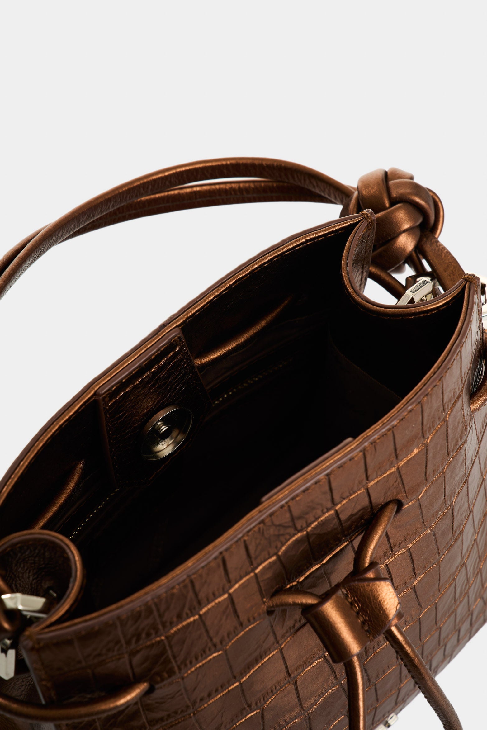 A design that transforms the everyday into handcrafted luxury. This crossbody bag in foil leather with croco-embossed texture balances sophistication and functionality, featuring artisan knot detailing on the handle and an adjustable strap for any occasion. The RFID system protects your personal data, while its versatile structure makes it the ideal piece to stand out at the office or special events.