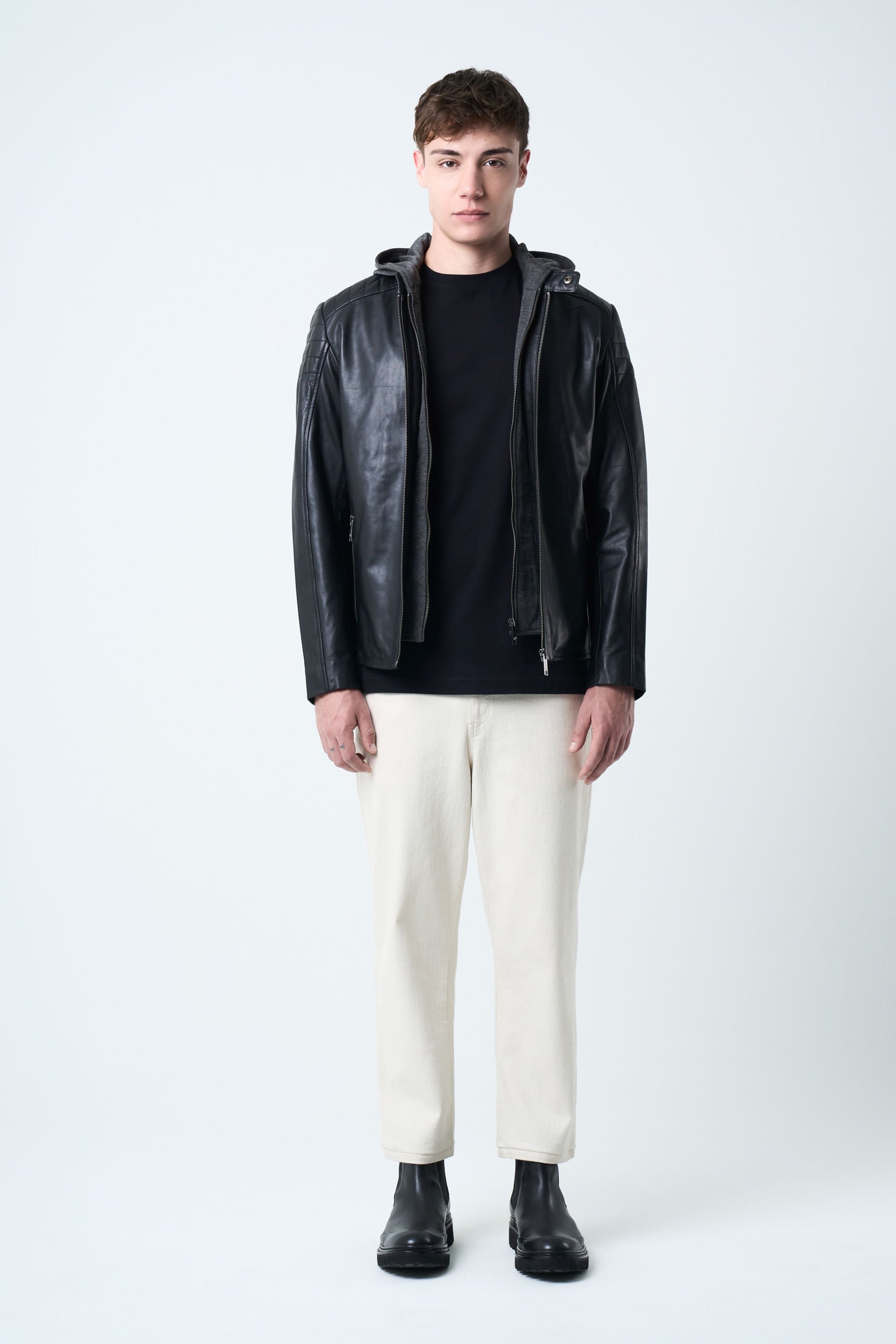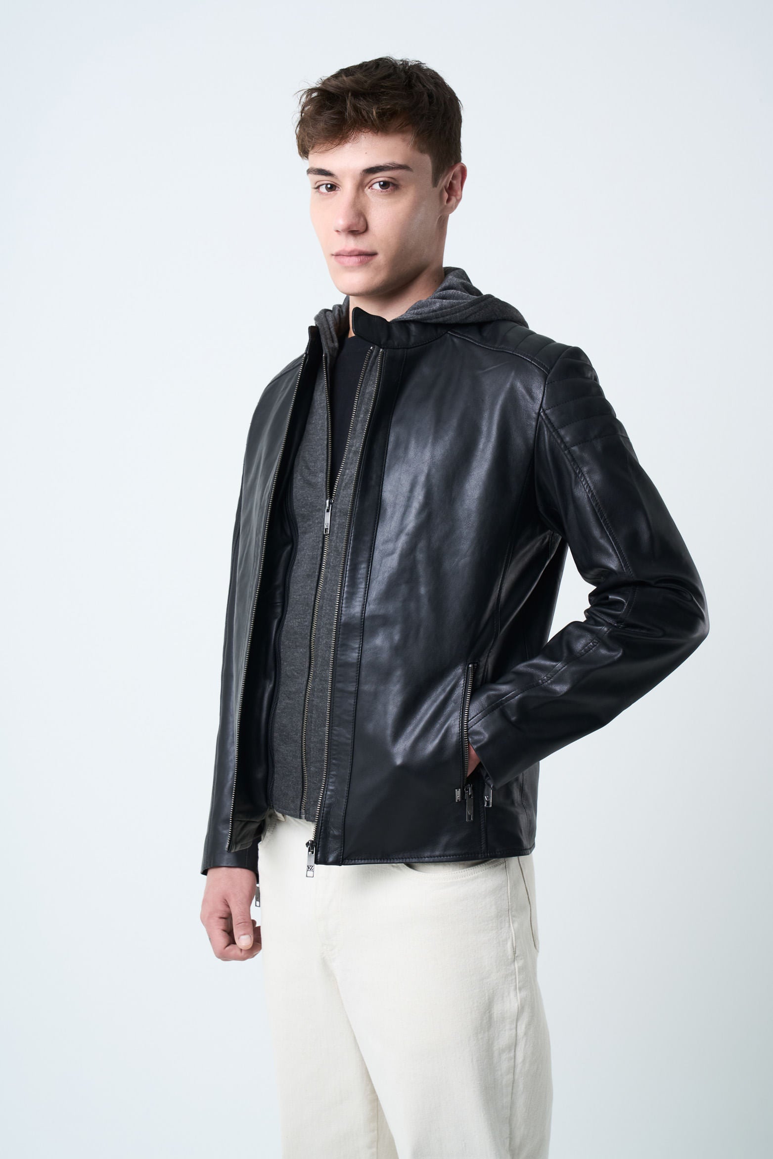 Our rider jacket, made from premium sheep leather, features a silhouette inspired by the sports world. It stands out for its functionality and versatility, thanks to details like the removable hood and mesh bib. Additionally, the design includes luxury stitching on the shoulders and sleeves that adds structure to the silhouette and enhances the level of protection. Ideal for elevating your style on cold days and your outdoor activities.