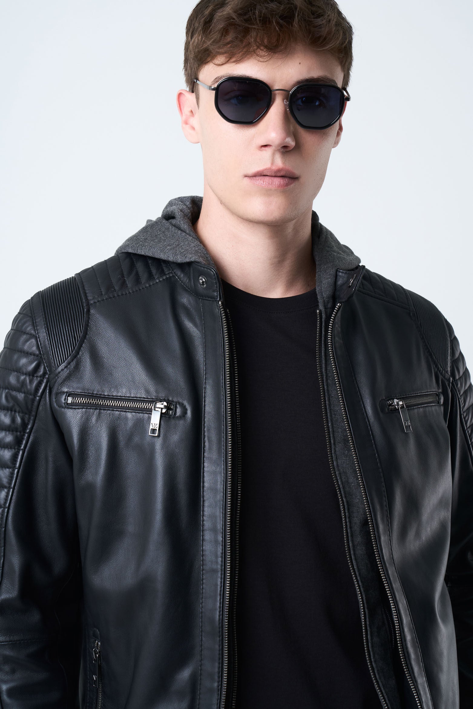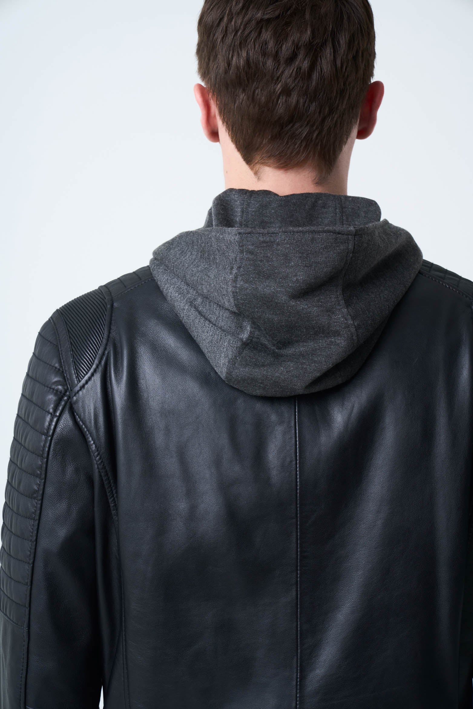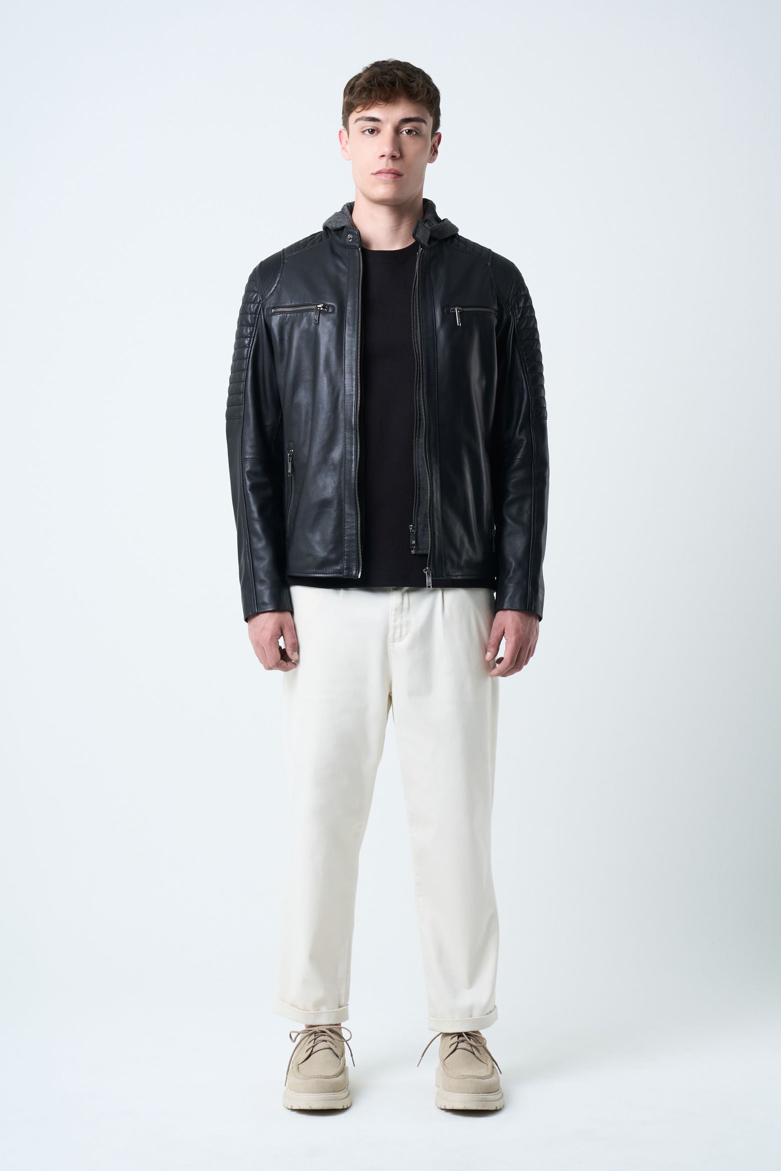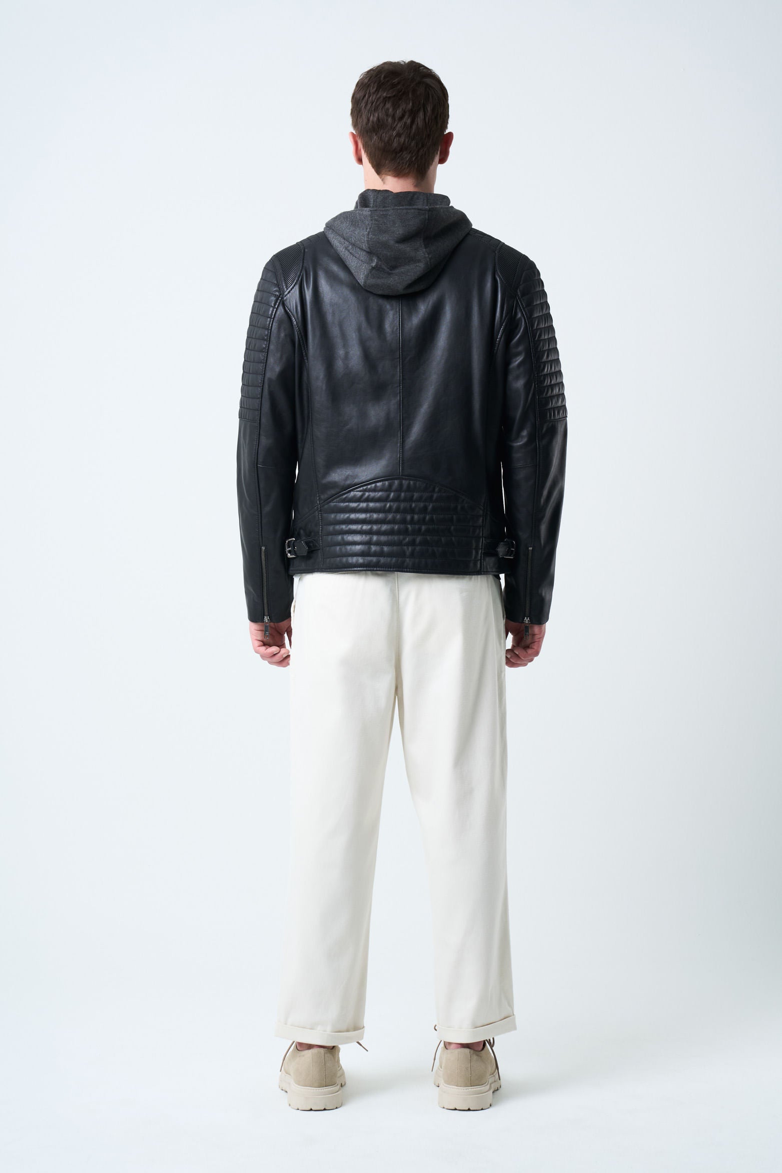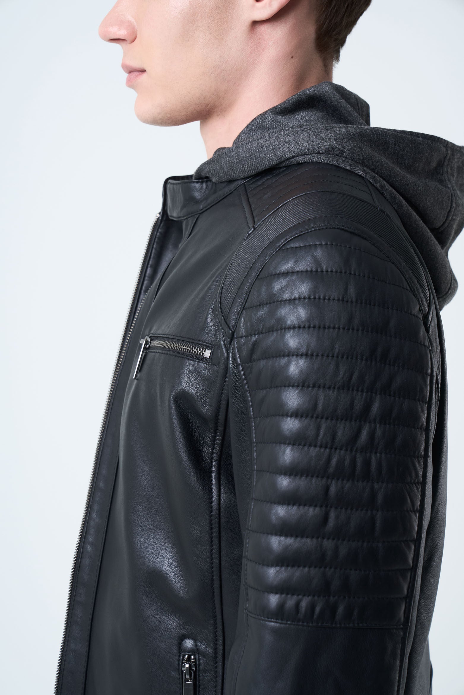 Belmont Leather Jacket for Men with Hood and Chestpiece