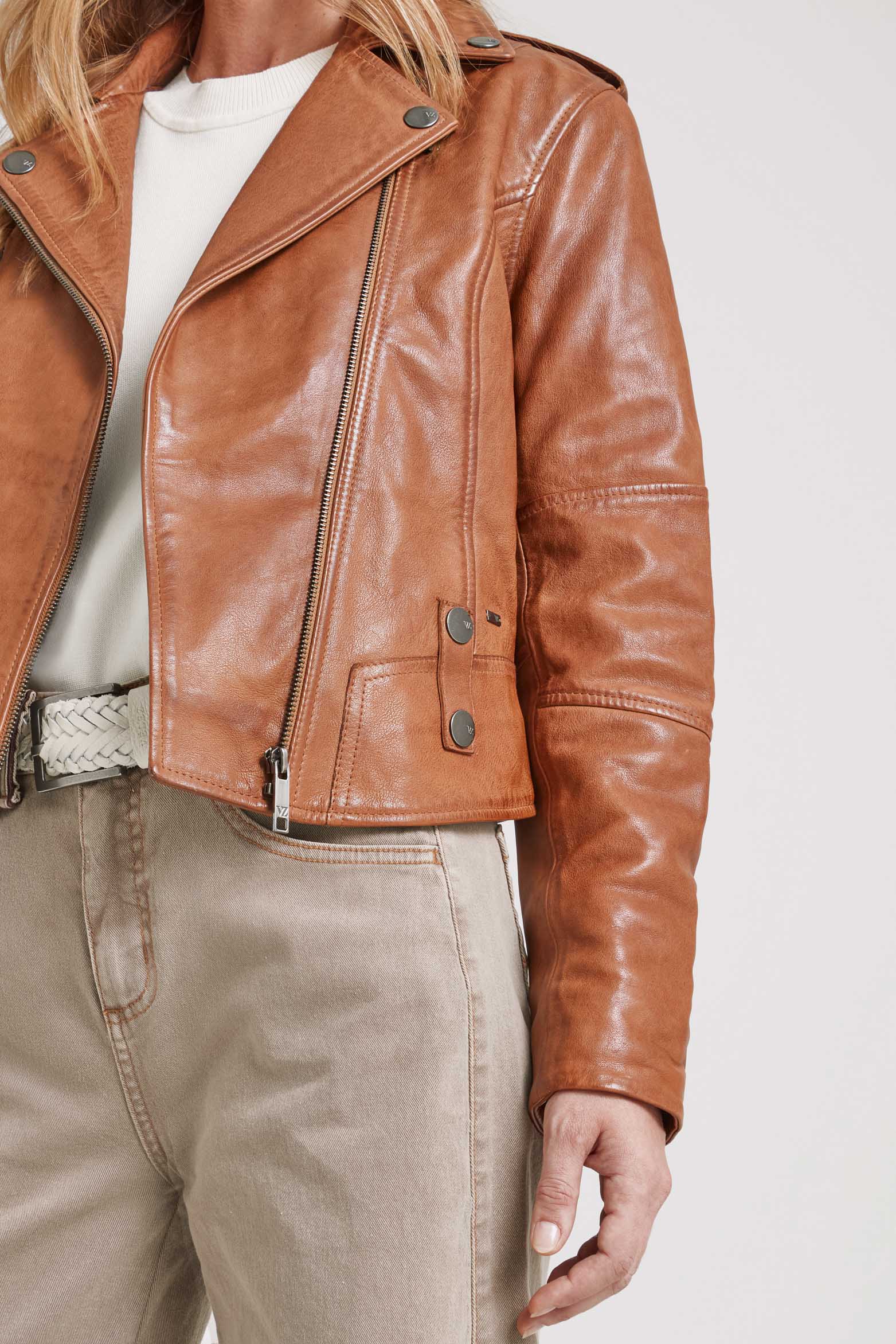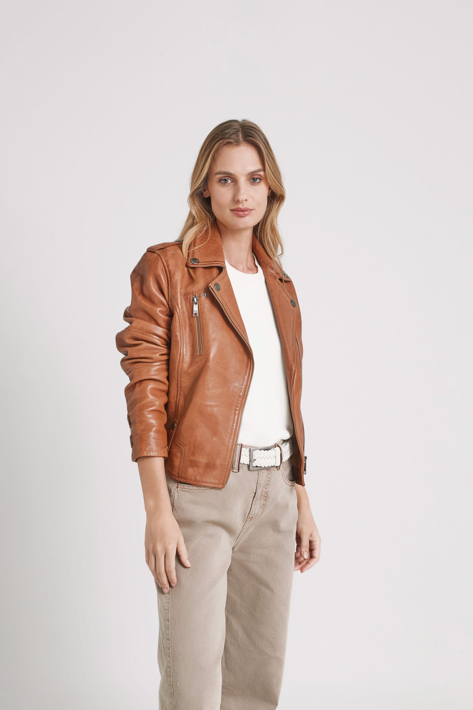Biker Nature Leather Jacket for Women with Fittedilhouette Honey
