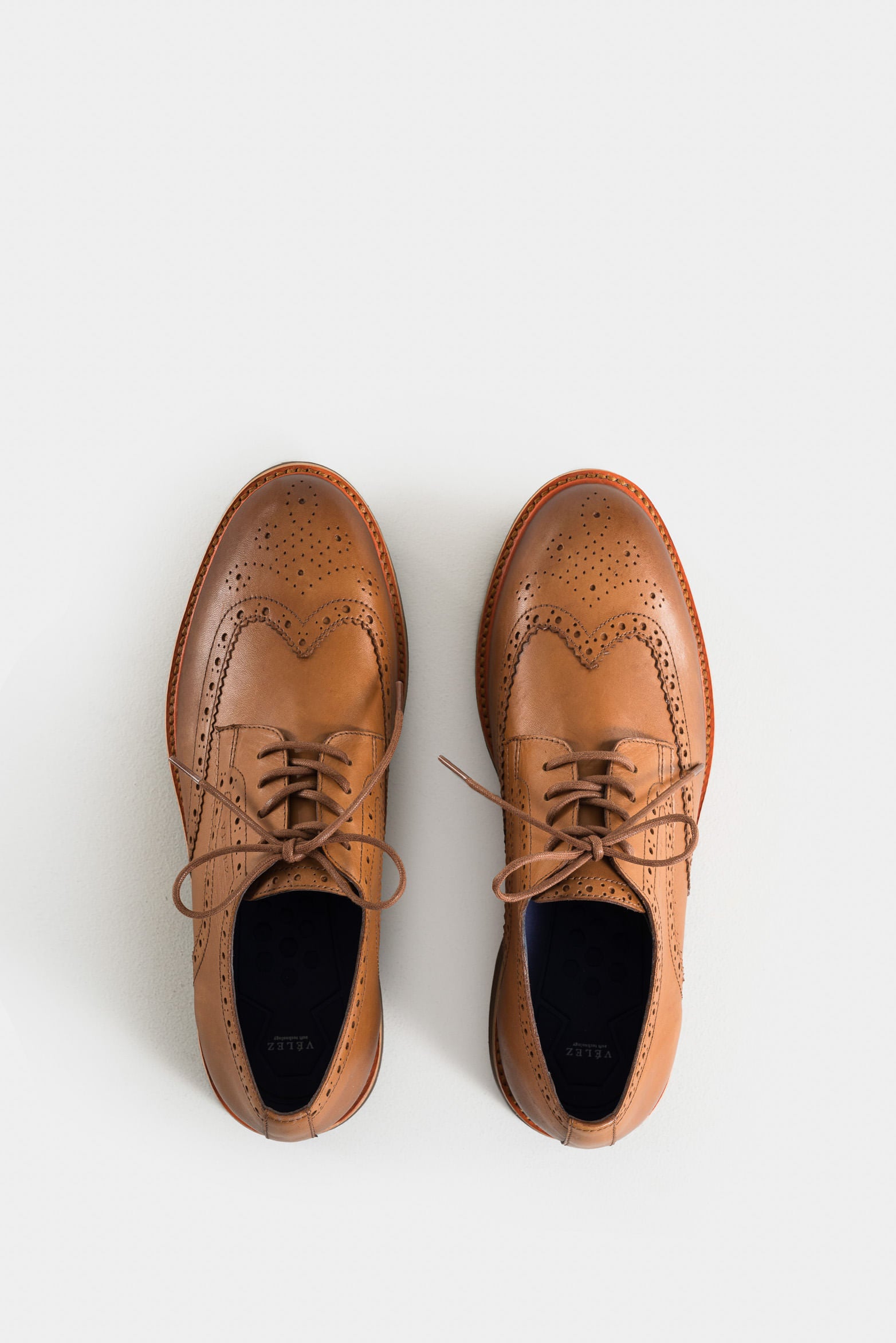 Our Brogue lace-up leather shoes encapsulate the DNA of Vélez, enhancing the value of traditional artisanal details with each piece. The value of the brand is reflected in these shoes, from the suede finish to the anatomical insole, offering comfort, durability, and a sophisticated look. The traditional cuts are renewed to offer you a unique piece that stands out for its elegance, and the EVA and rubber sole ensure a light and resistant design.