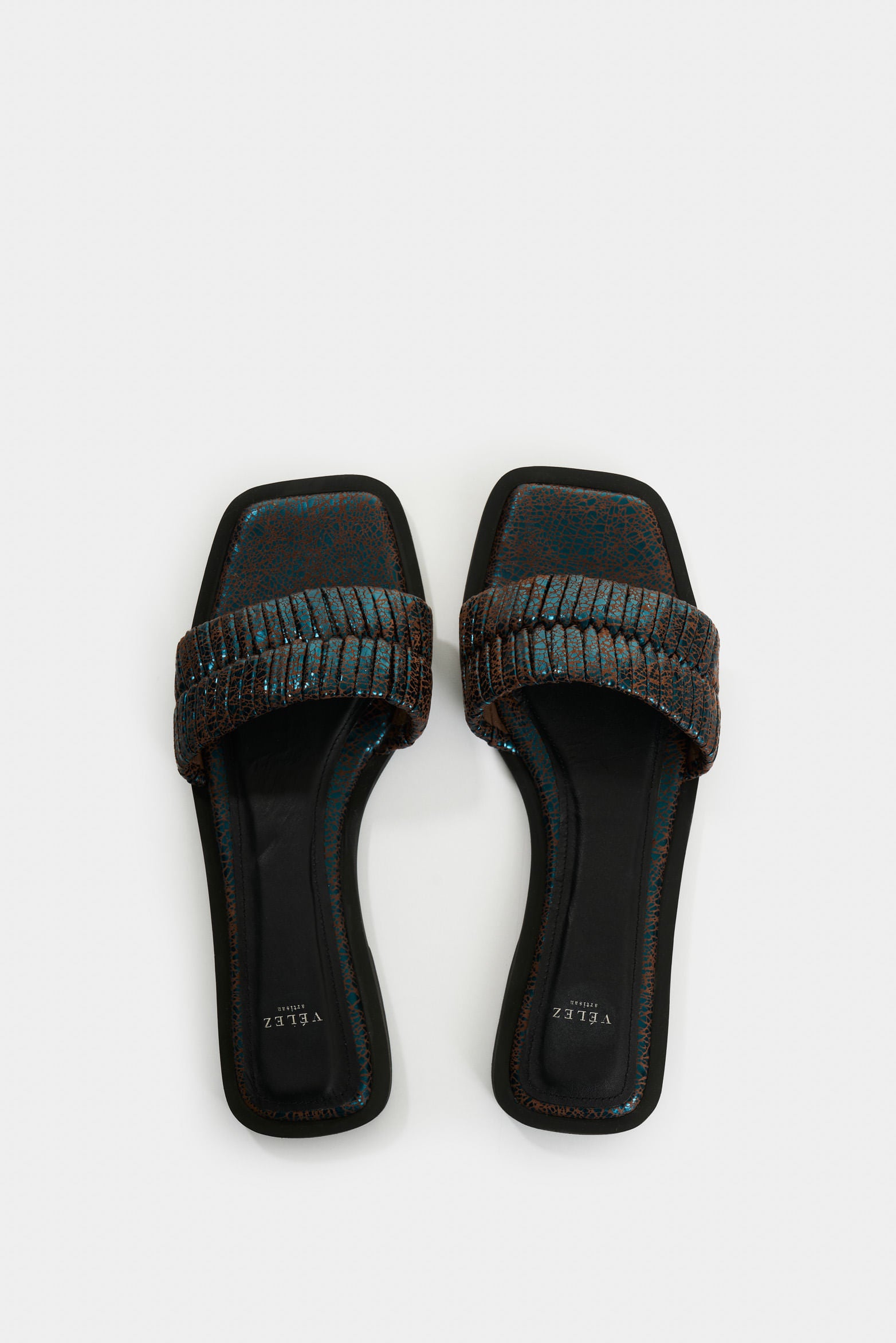 With a Mediterranean aesthetic and a natural sheen that enhances the leather’s texture, these sandals embody sophistication in every detail. Their knotted design, crafted with luxurious artisanal techniques, makes them an essential piece of Vélez’s DNA. Perfect to pair with a linen dress on warm days or a leather blazer for an elevated look, they add subtlety and distinction to any outfit.
