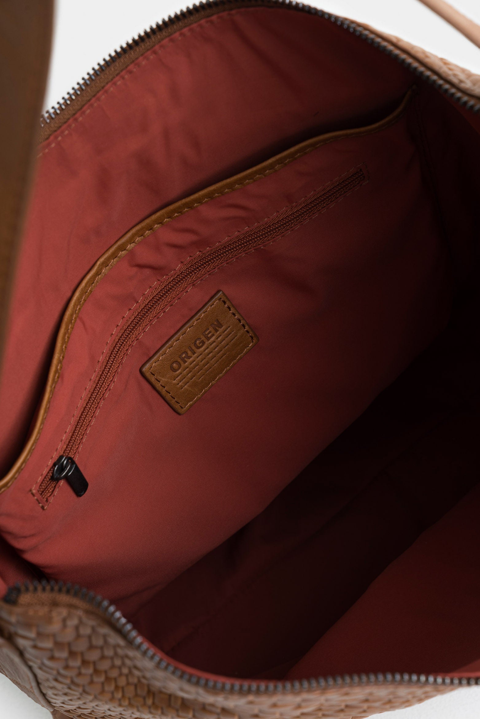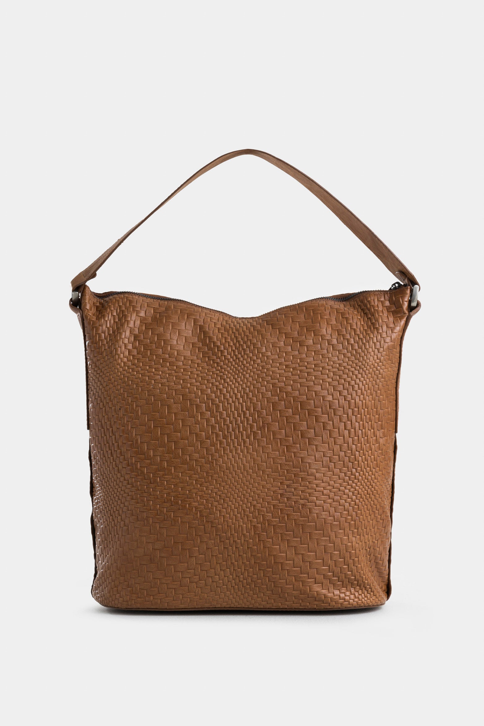 Delta Leather Shopping Bag with Wavy Engraving in Honey
