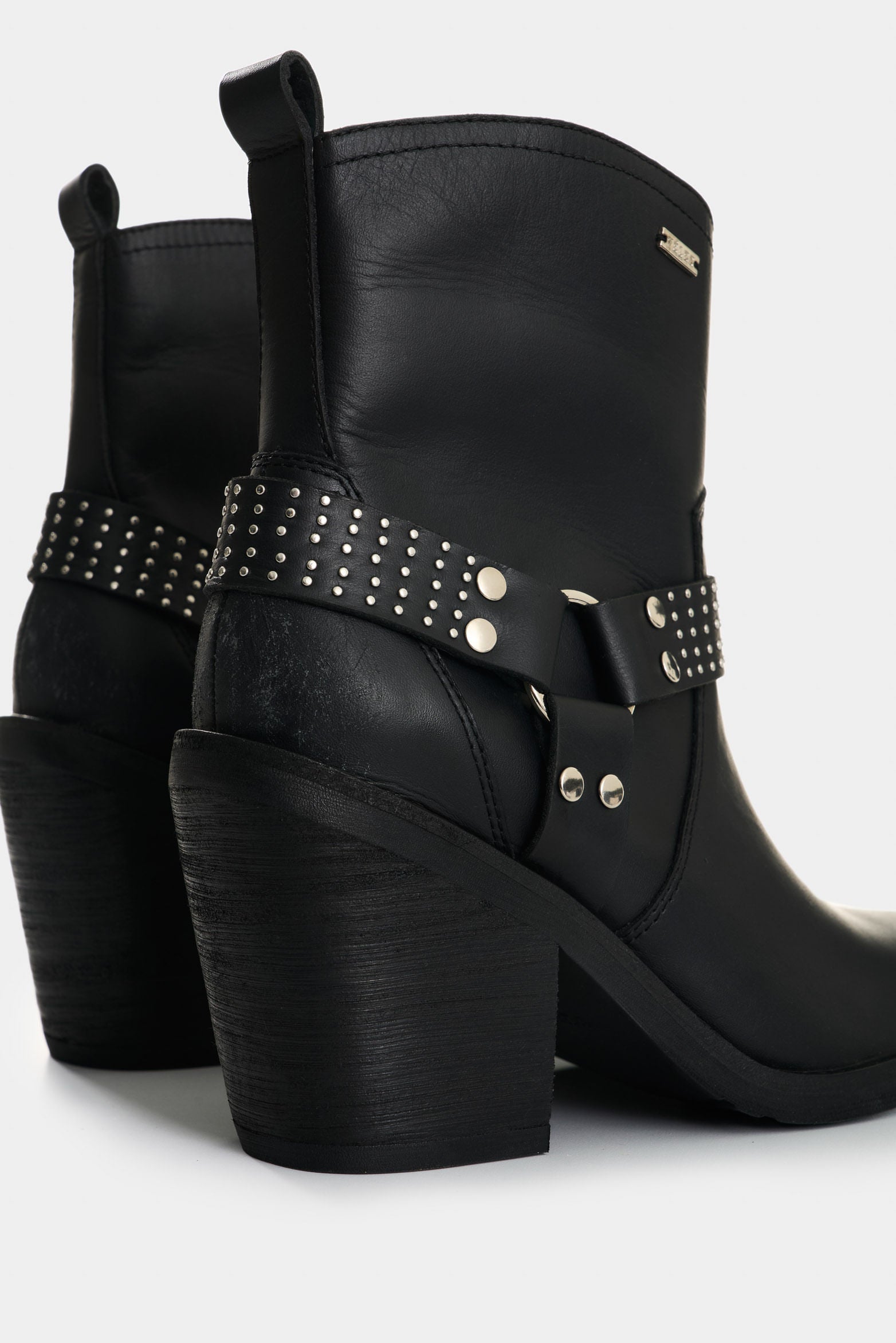 Inspired by western style, these boots stand out for their authentic character and personality filled details. The strap with metallic accents, rustic leather finish, and sturdy structure evoke a bohemian yet contemporary spirit. With a soft lined upper and leather insole, they combine design and comfort, making them the perfect complement to outfits with a relaxed and confident touch