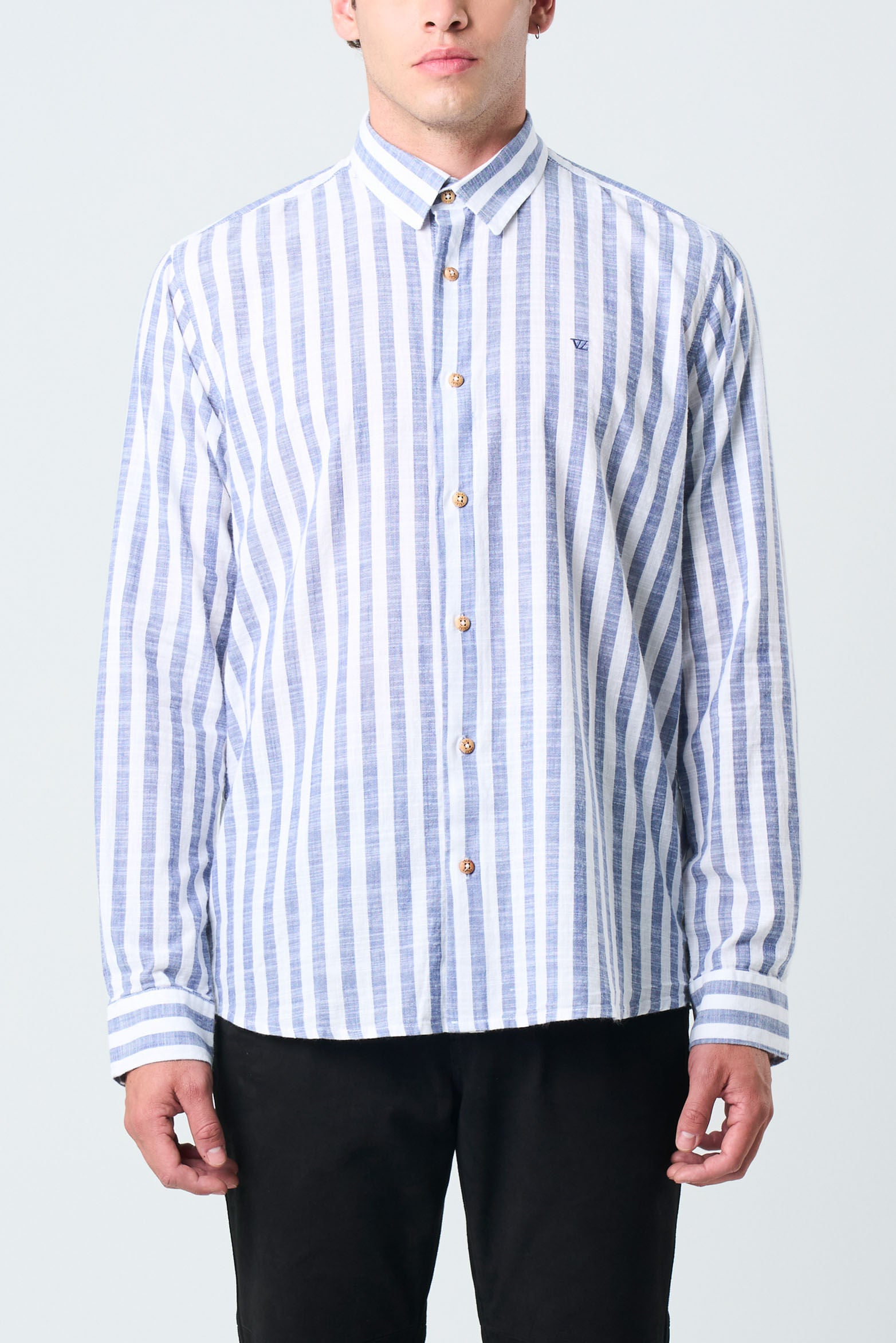 A touch of sophistication that elevates any look. This semi fitted, long-sleeve shirt with a classic collar is refreshed this season with a striped print that adds a preppy edge to your style. Crafted from lightweight fibers that prioritize comfort and versatility, it pairs effortlessly with trousers or jeans for any occasion. The tone on tone embroidered VZ logo on the placket adds an elegant and distinctive finishing touch