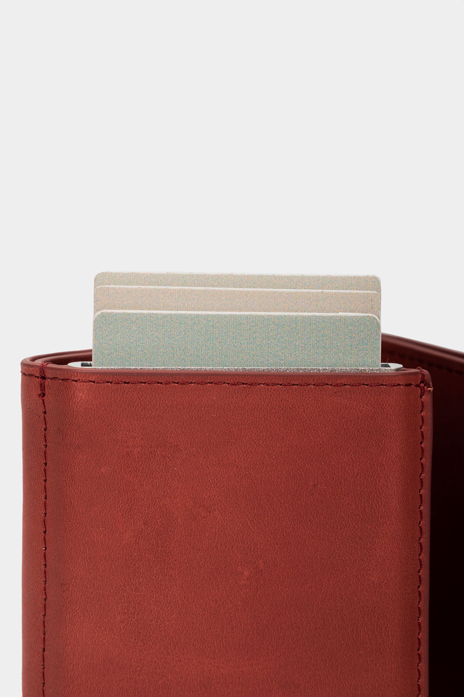 A technological piece wrapped in leather to make your everyday easier. Its aluminum frame contains a compartment for bills and multiple cards, and its ergonomic design has a magnetic and ultra-lightweight closure that includes a quick-access release button.