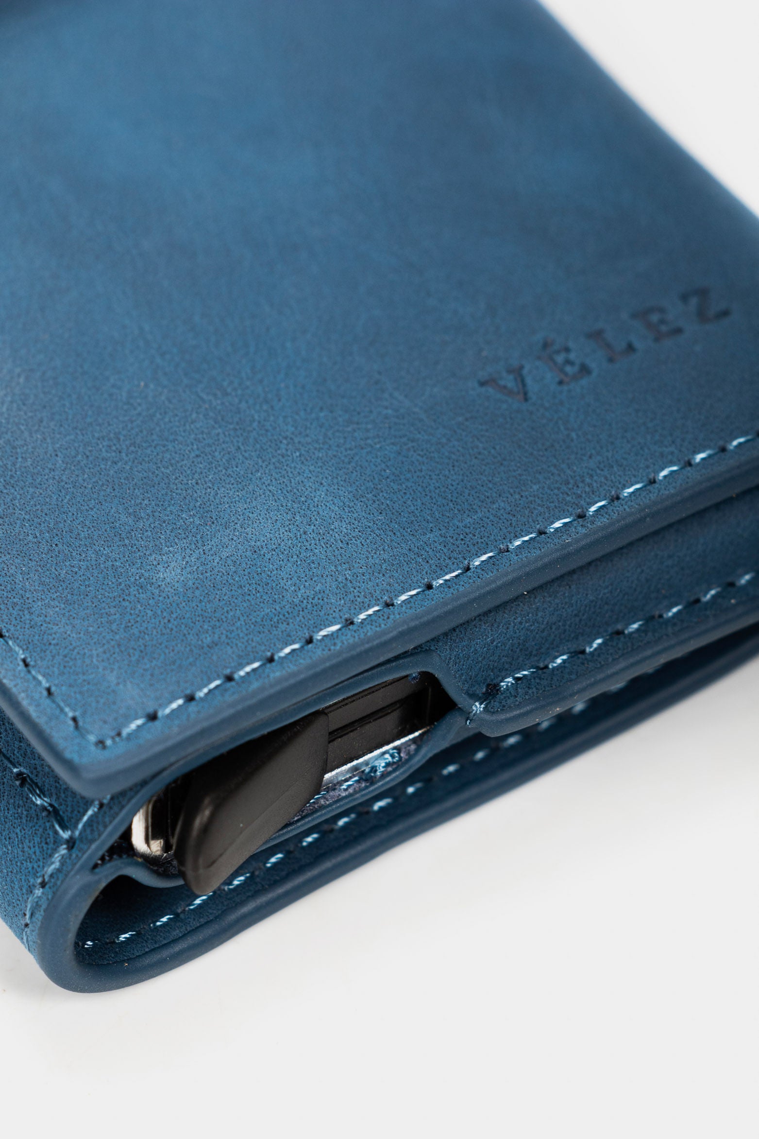 A technological piece wrapped in leather to make your everyday easier. Its aluminum frame contains a compartment for bills and multiple cards, and its ergonomic design has a magnetic and ultra-lightweight closure that includes a quick-access release button.