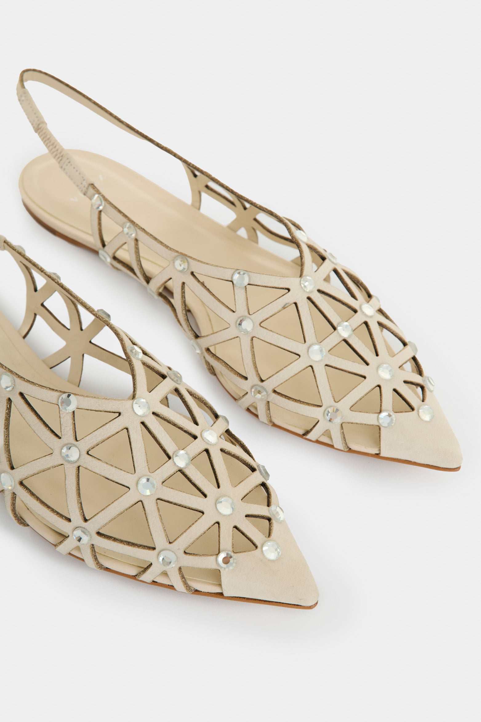 With refined and authentic structures, these ballet flats explore the aesthetics of materials and forms to offer a luxurious handcrafted piece. The cuts on the upper define their silhouette with impactful touches, while the leather-lined elastic at the heel ensures a perfect fit. Their handcrafted design and finishes make them the ideal complement to add elegance and distinction to any style.