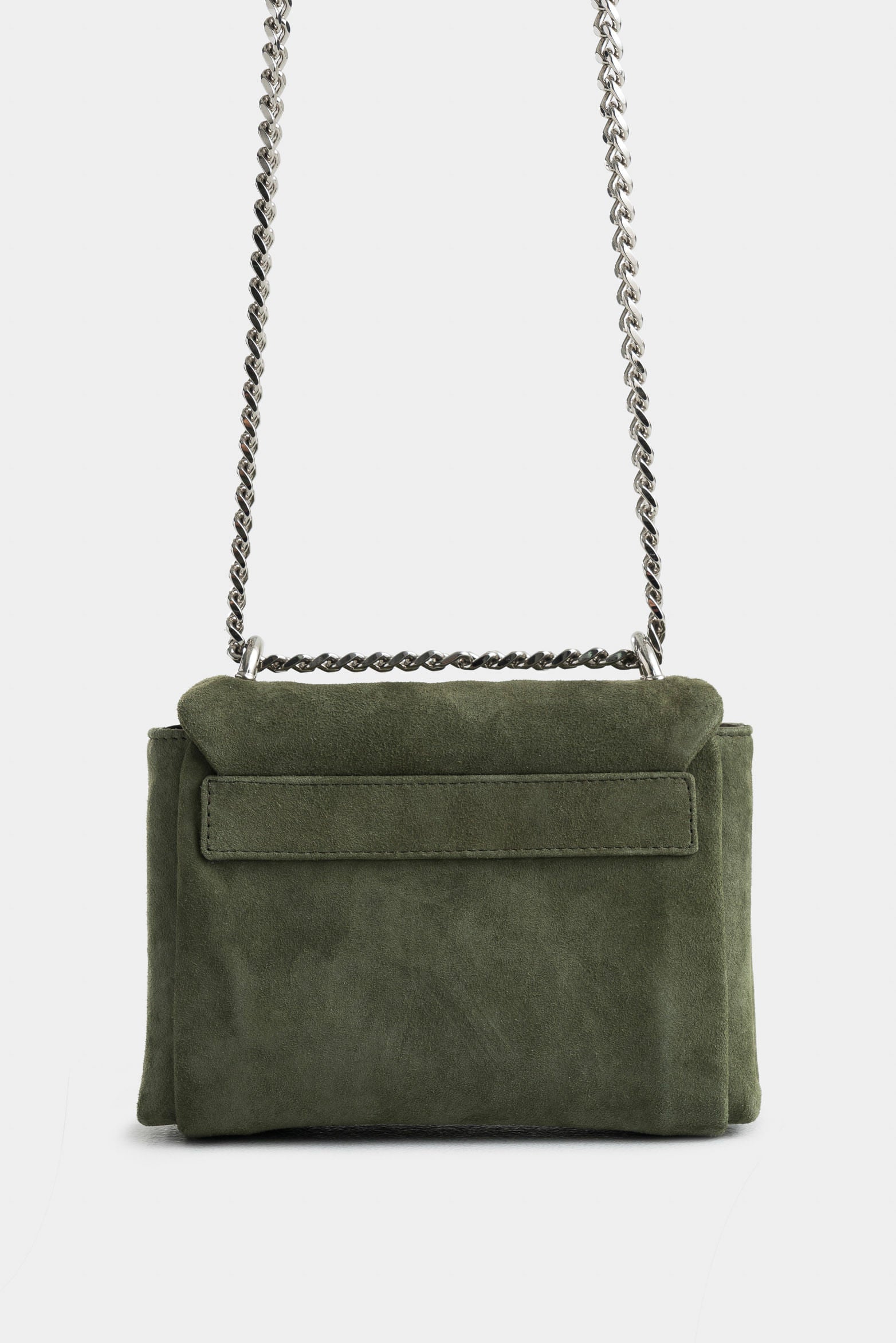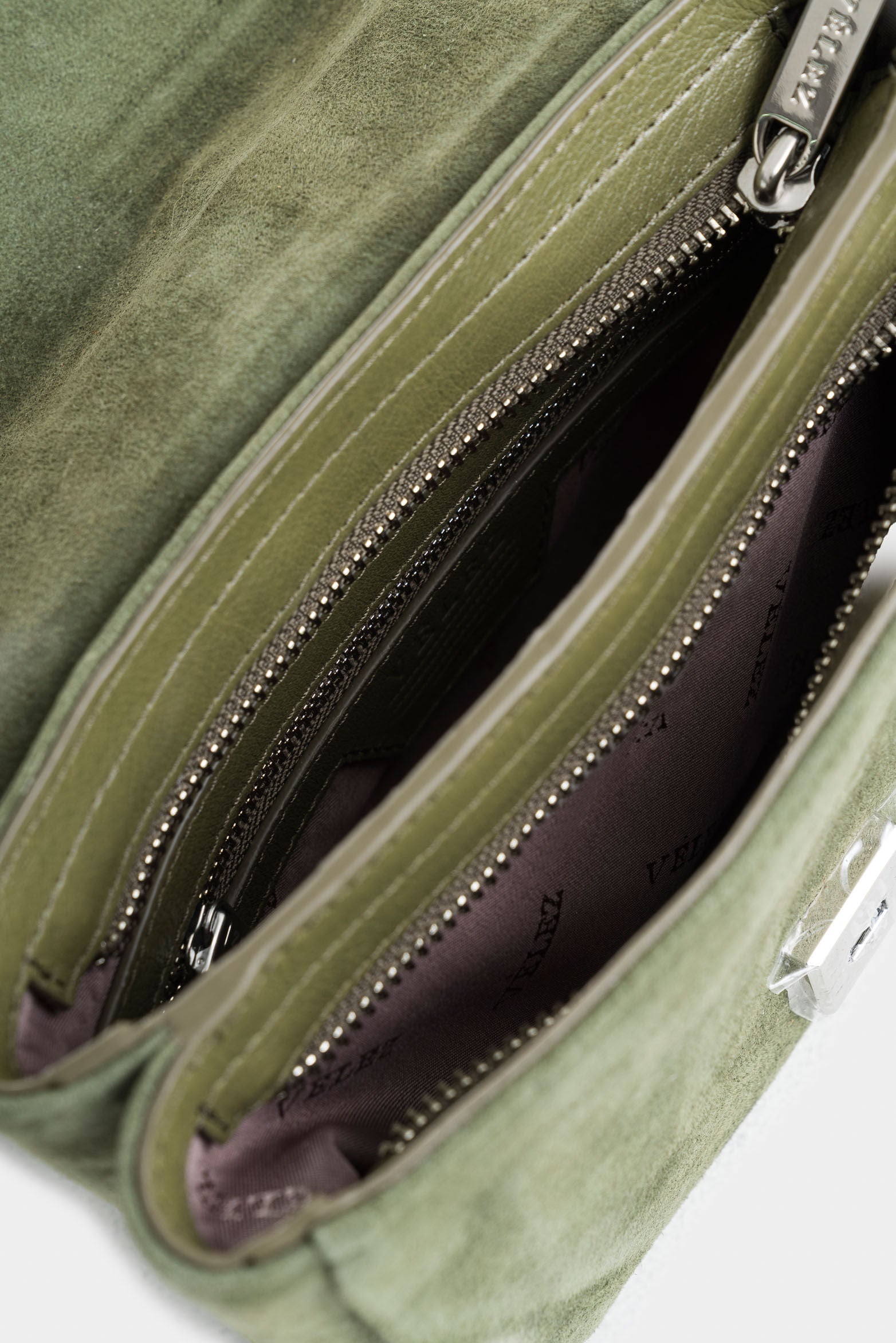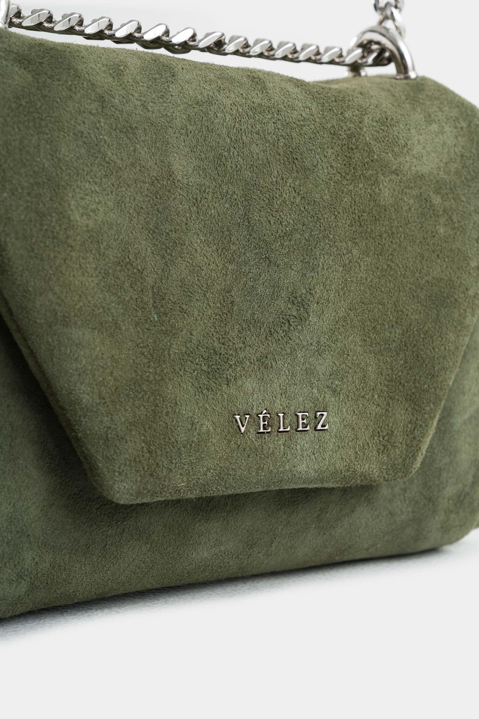 Drawing inspiration from tradition and refinement, our bowling bag, meticulously crafted in suede leather, is a reflection of Vélez's DNA. Its woven design on the flap and body stands out for its sophistication and attention to detail, enhancing its creative minimalism. The adjustable chain strap with a leather shoulder rest adds comfort and versatility, ideal for any occasion. With a flap closure system, metal zippers, and internal pockets, this bag combines spontaneity and functionality, elevating each look with style and authenticity.