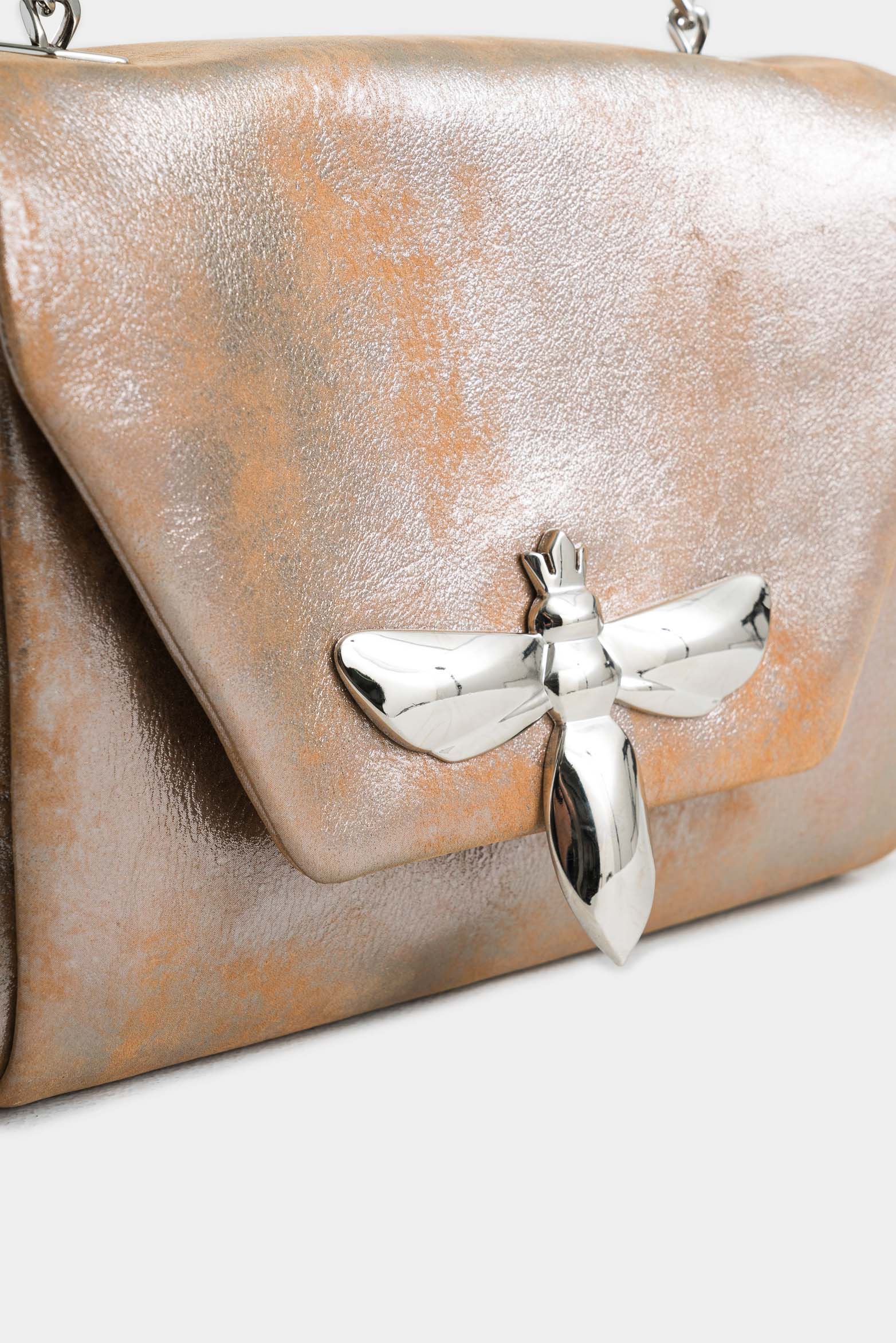 Lili Folia Leather Bowling Bag with Bee Insignia for Women