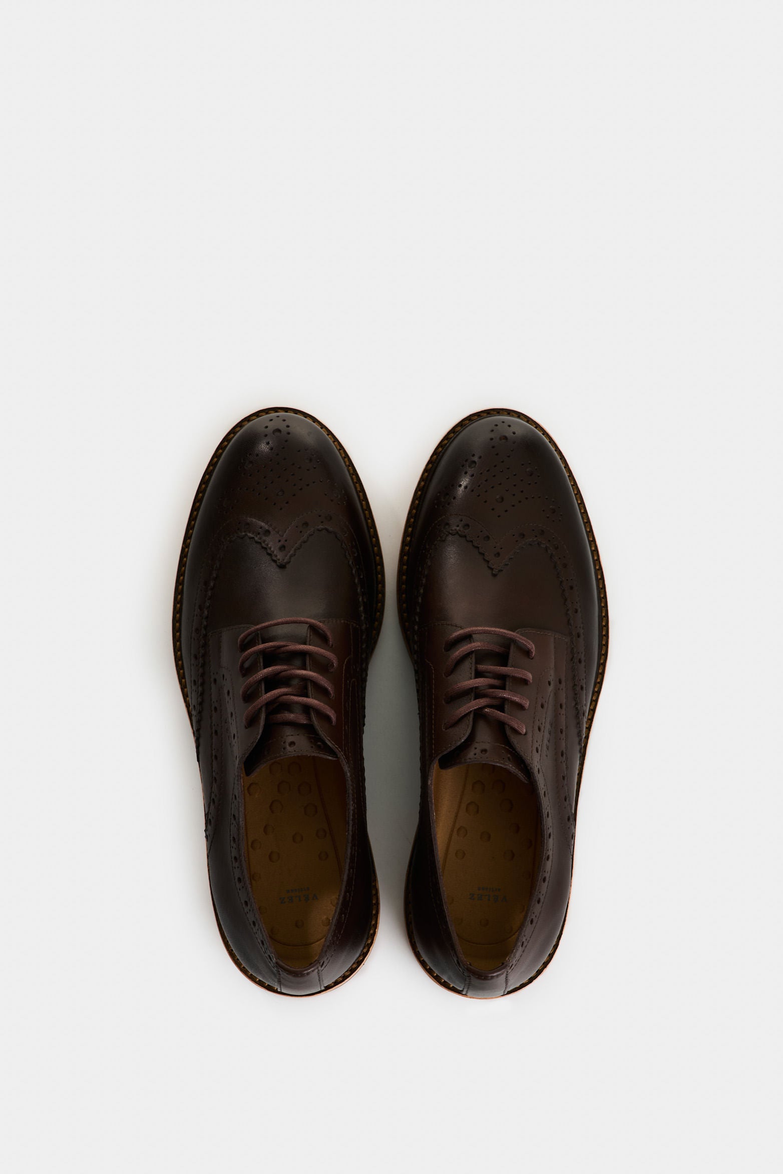 Our leather lace-up shoes celebrate the Vélez DNA through time-honored artisanal details that define a timeless silhouette. With an aged finish, classic brogue perforations, and a heel sole in EVA and rubber, this traditionally cut design is renewed for today—an ideal choice for refined, casual occasions.