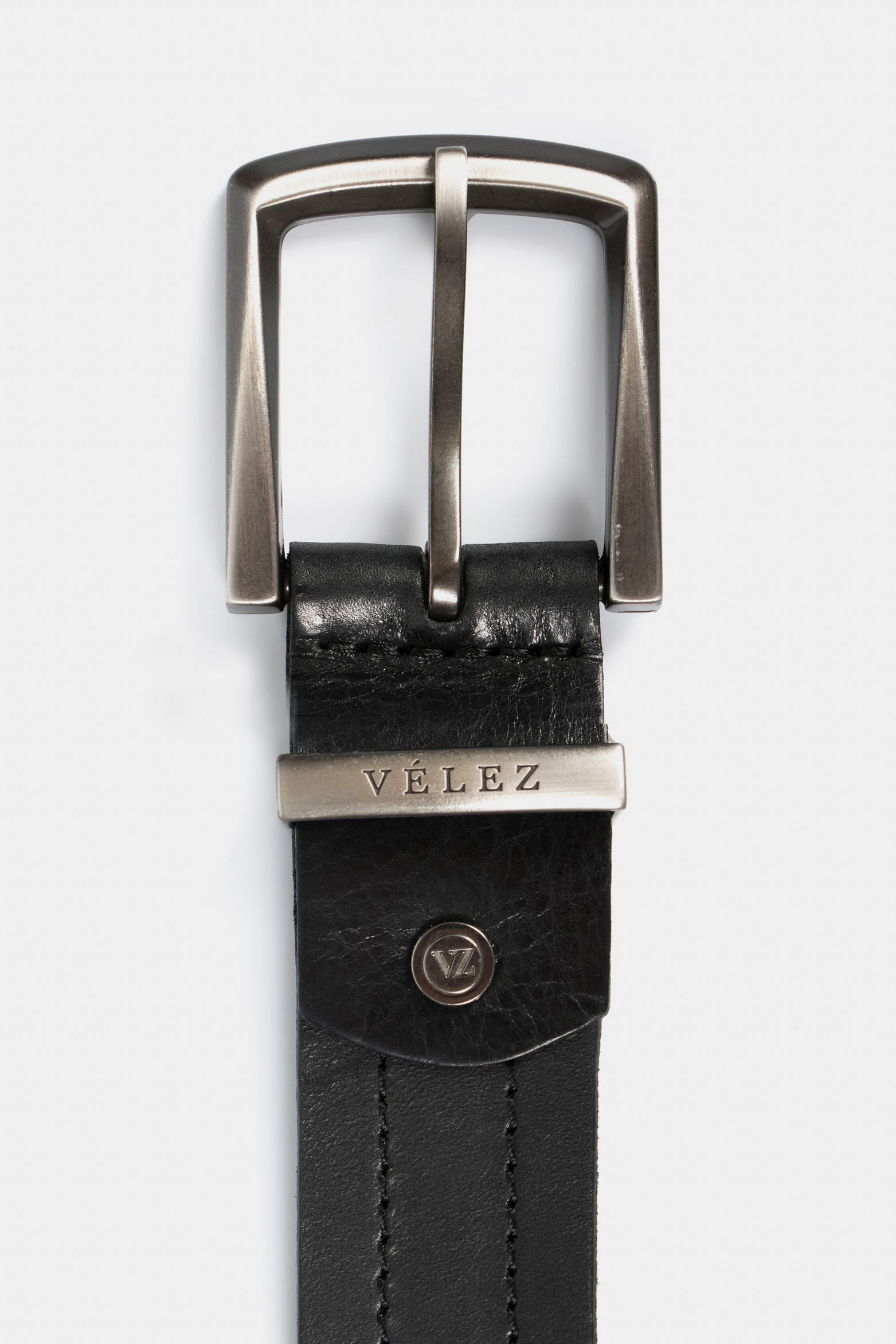 Luxury accessories add a distinctive touch to your everyday outfits. Our leather belt features a metal buckle, rounded tip and decorative stitching detail that transforms this essential into a modern, versatile piece. Tailor your belt in our Vélez stores.