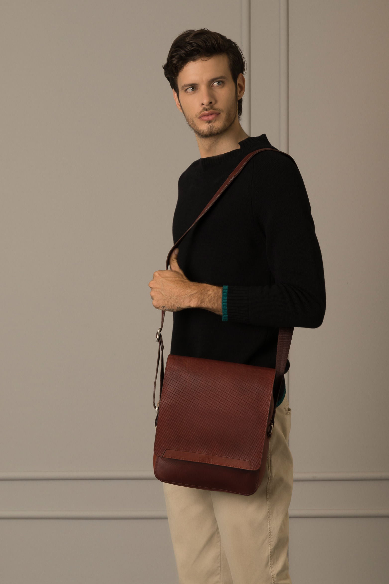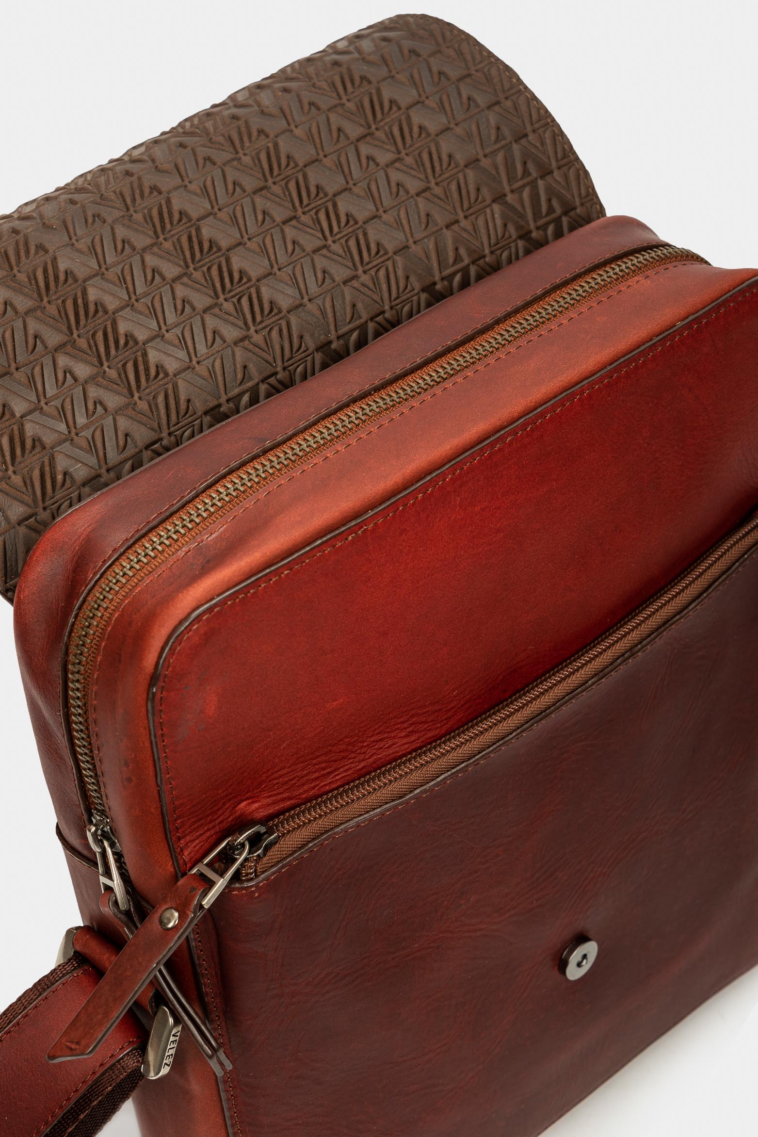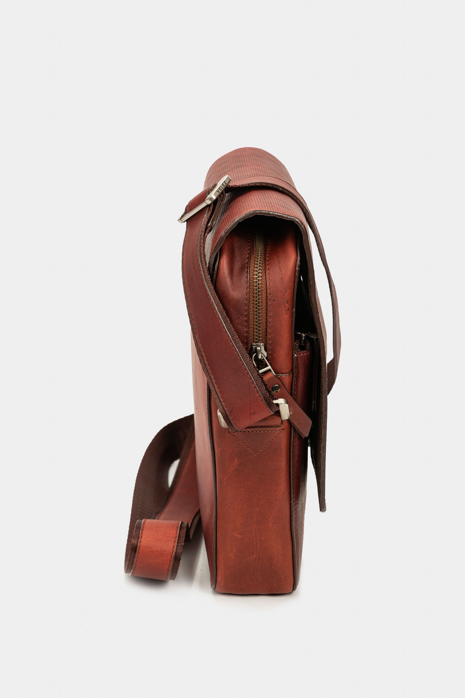 This practical, portable silhouette accompanies you on your day-to-day and complements your casual look. Our messenger-style hands-free Handbags with a magnetic snap-closure flap is casual. Crafted in leather with a natural shine and aged effect, characteristic of Vélez’s DNA.