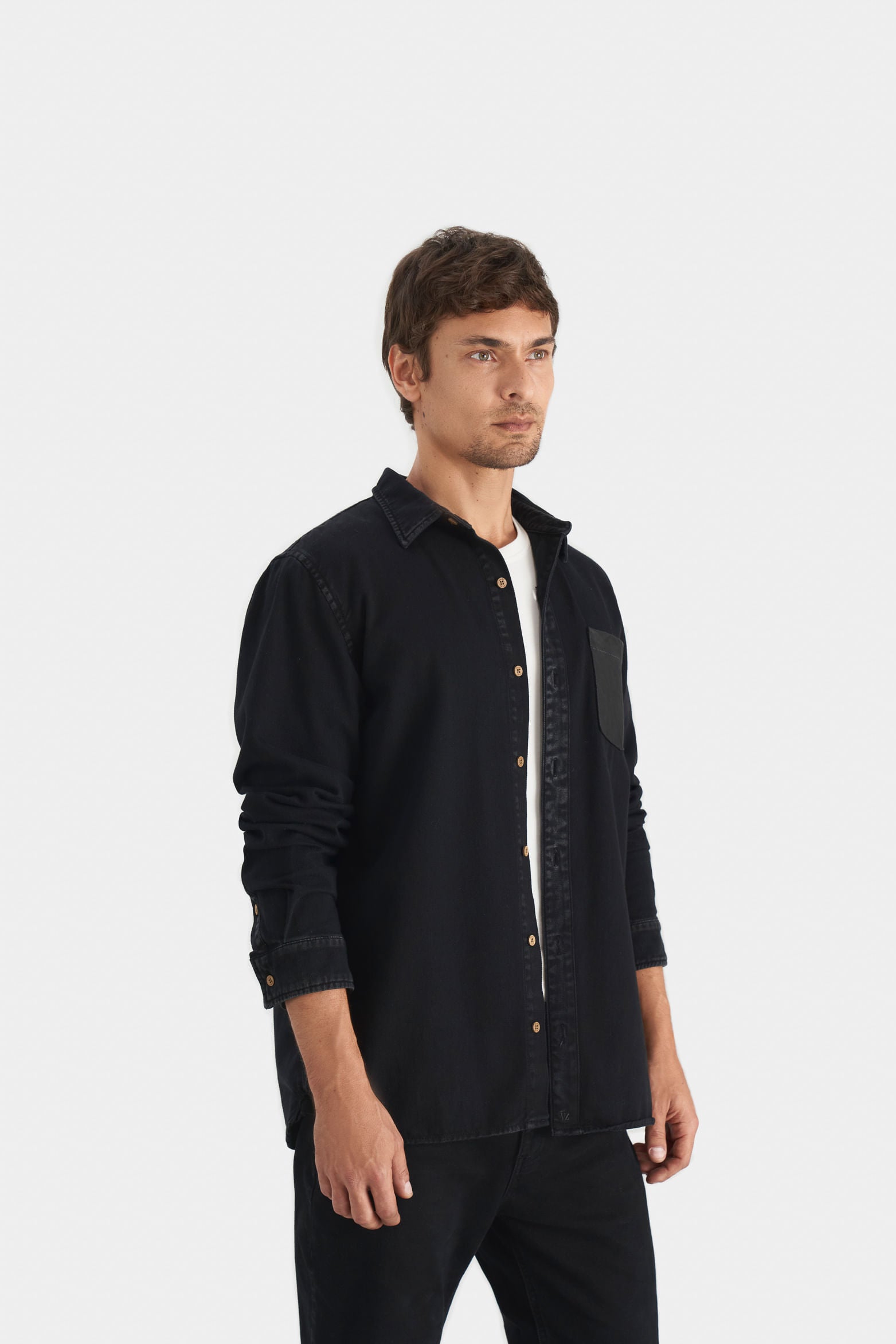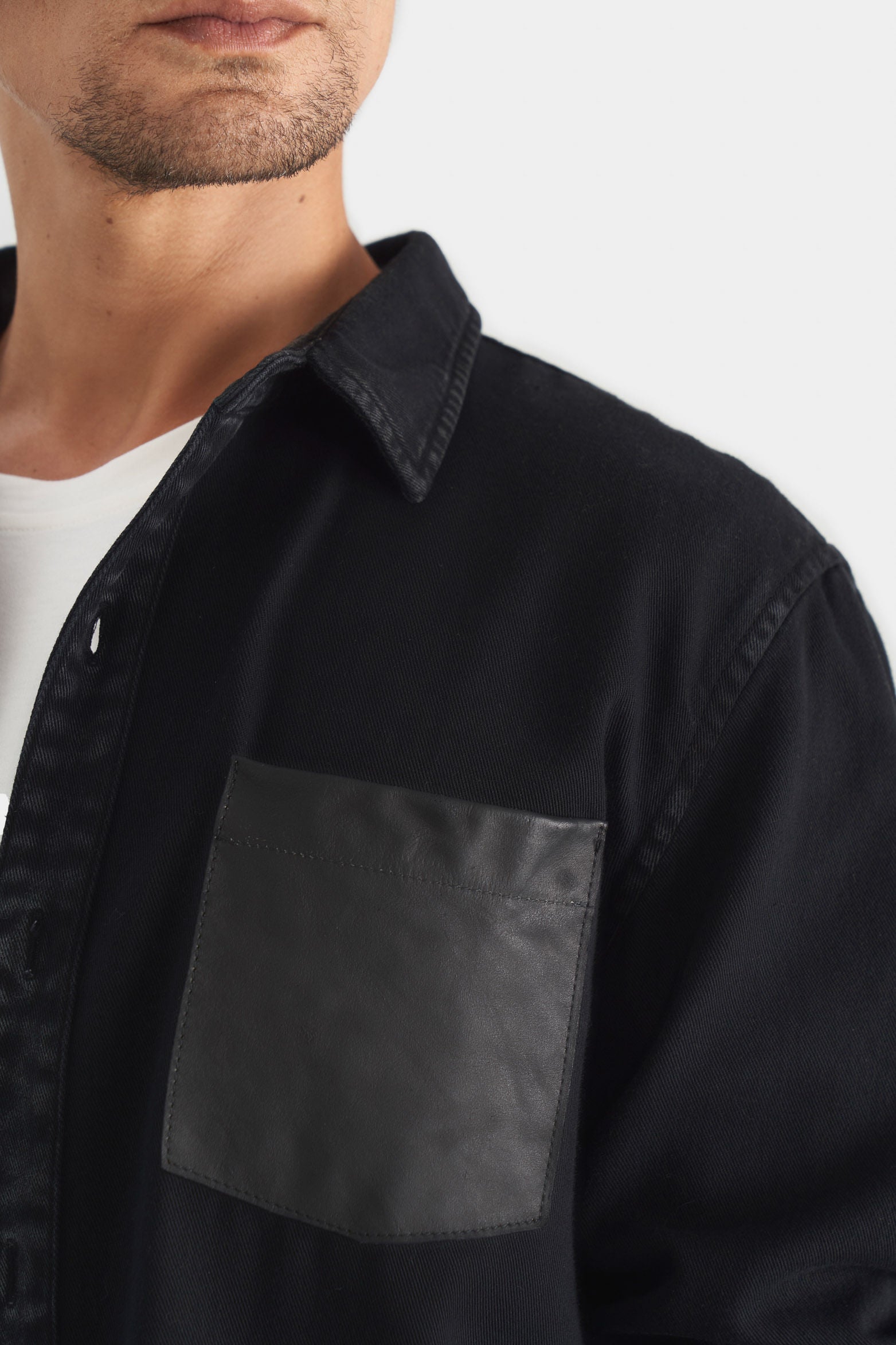 Men’s Duna Long-Sleeve Cotton Overshirt with Leather Pocket