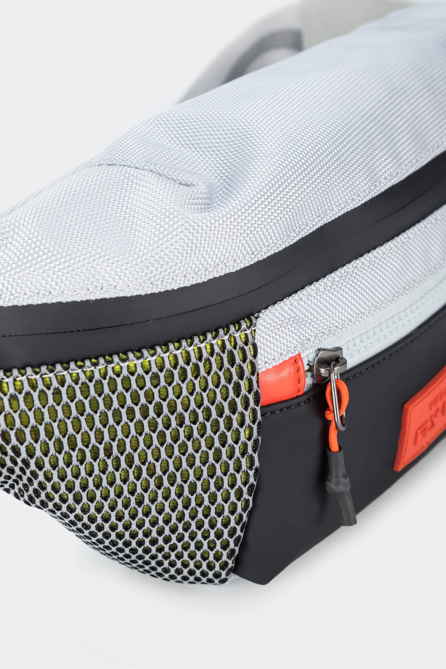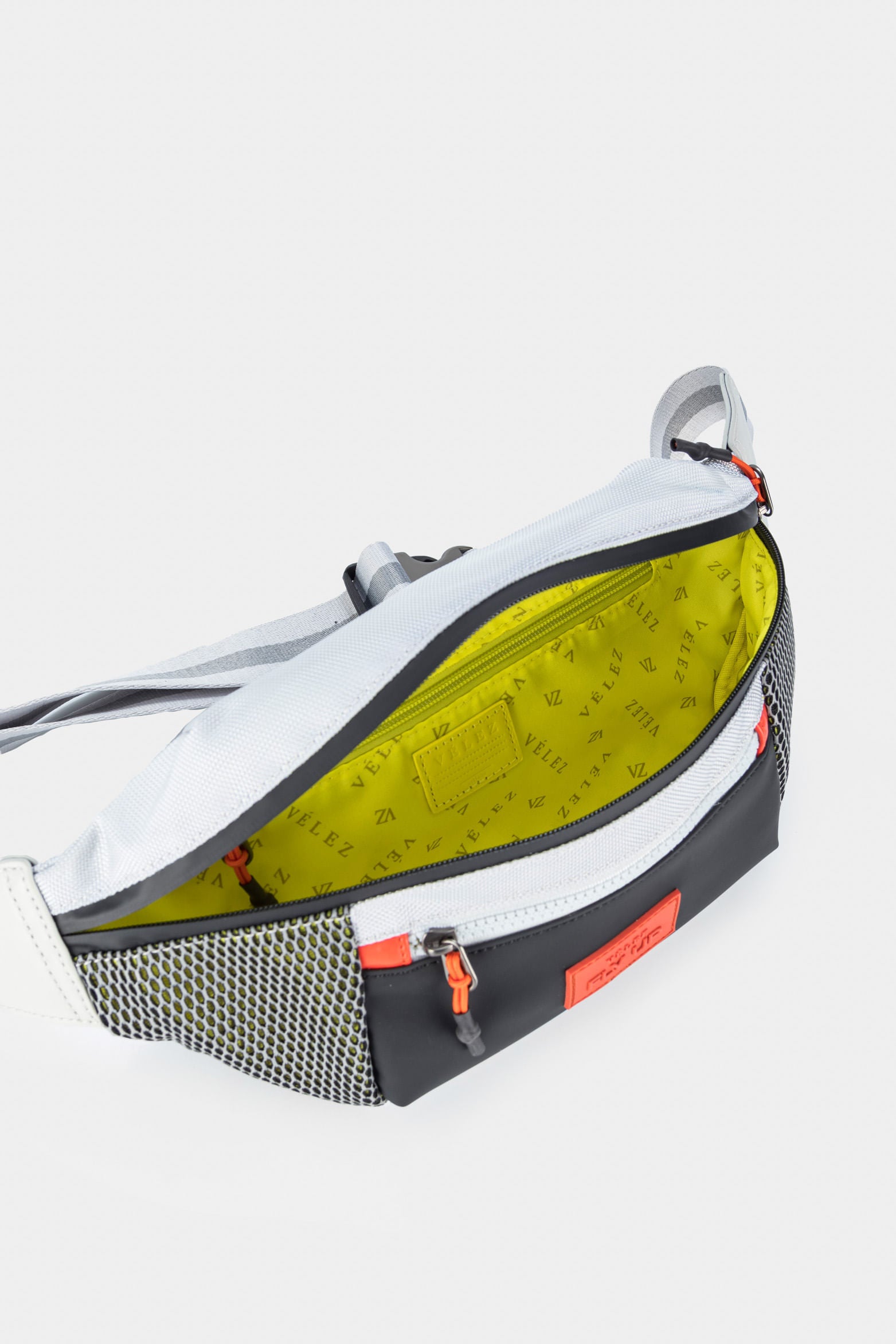A multifunctional piece from our active line. This fly-up belt Handbags is crafted in canvas, microfiber and reflective mesh. In addition, its multicolored contrast design with neon details features polyester zippers, internal compartments and a magnetic buckle for safety and comfort. Perfect for casual occasions or sports activities.
