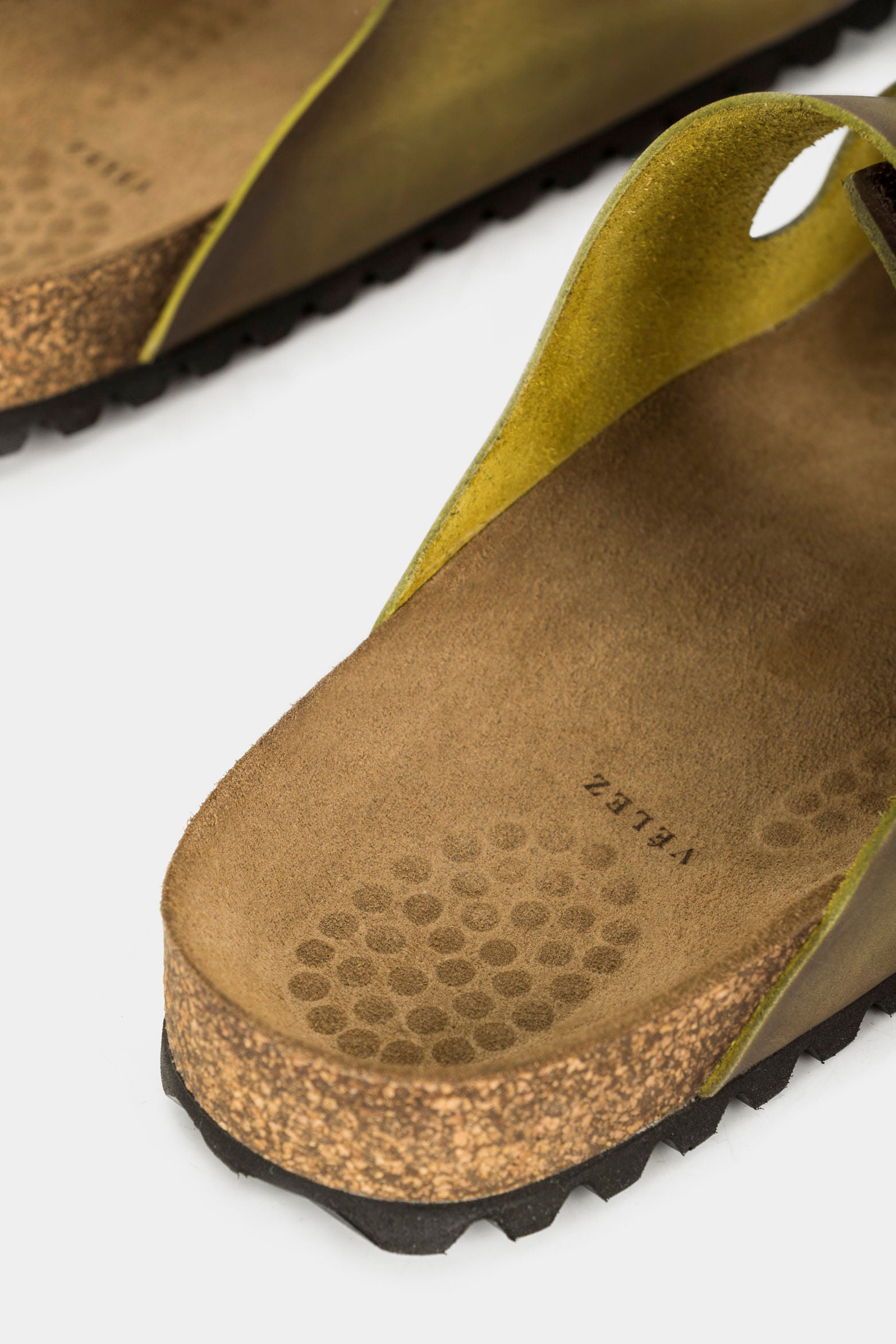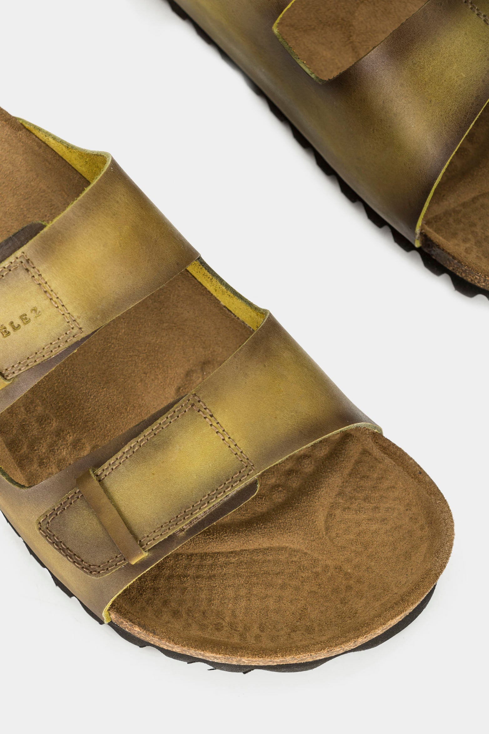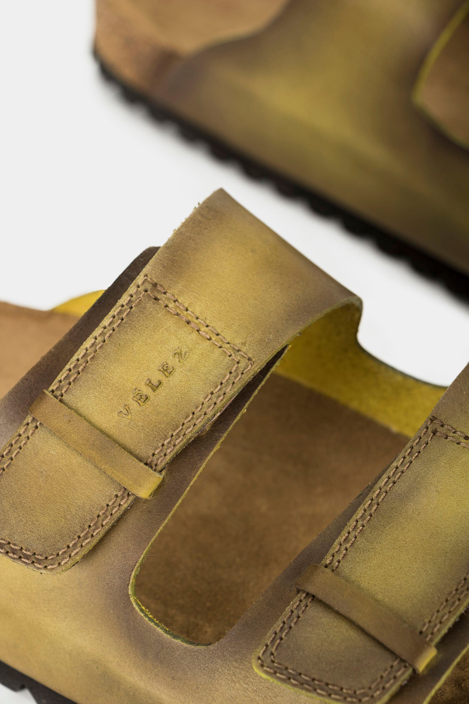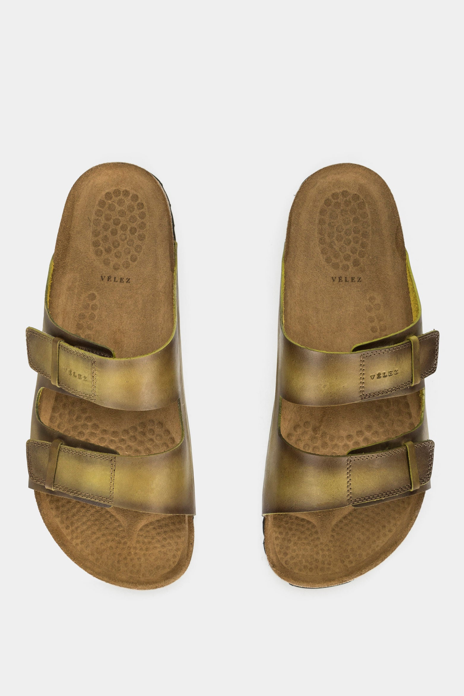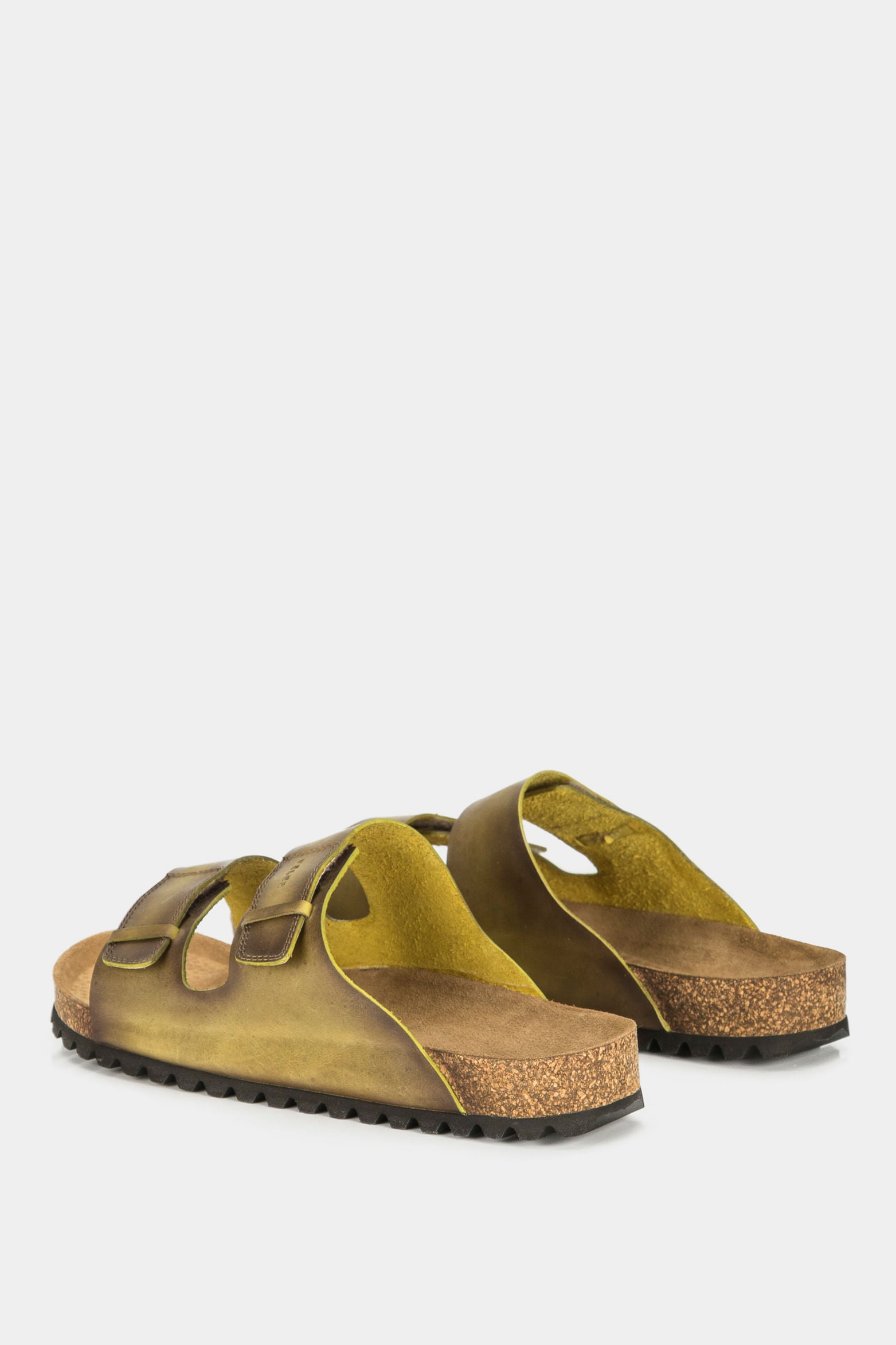 A versatile silhouette inspired by comfort. The design of our sandals in waxed, smooth leather with a natural shine is a classic of handcrafted luxury that provides the wearer with softness and comfort. Featuring an ergonomic cork insole lined in sueded hide, non-slip EVA lug outsole and a hook-and-loop fastener system, this timeless silhouette is ideal for pairing with casual looks in warm weather or for your downtime.