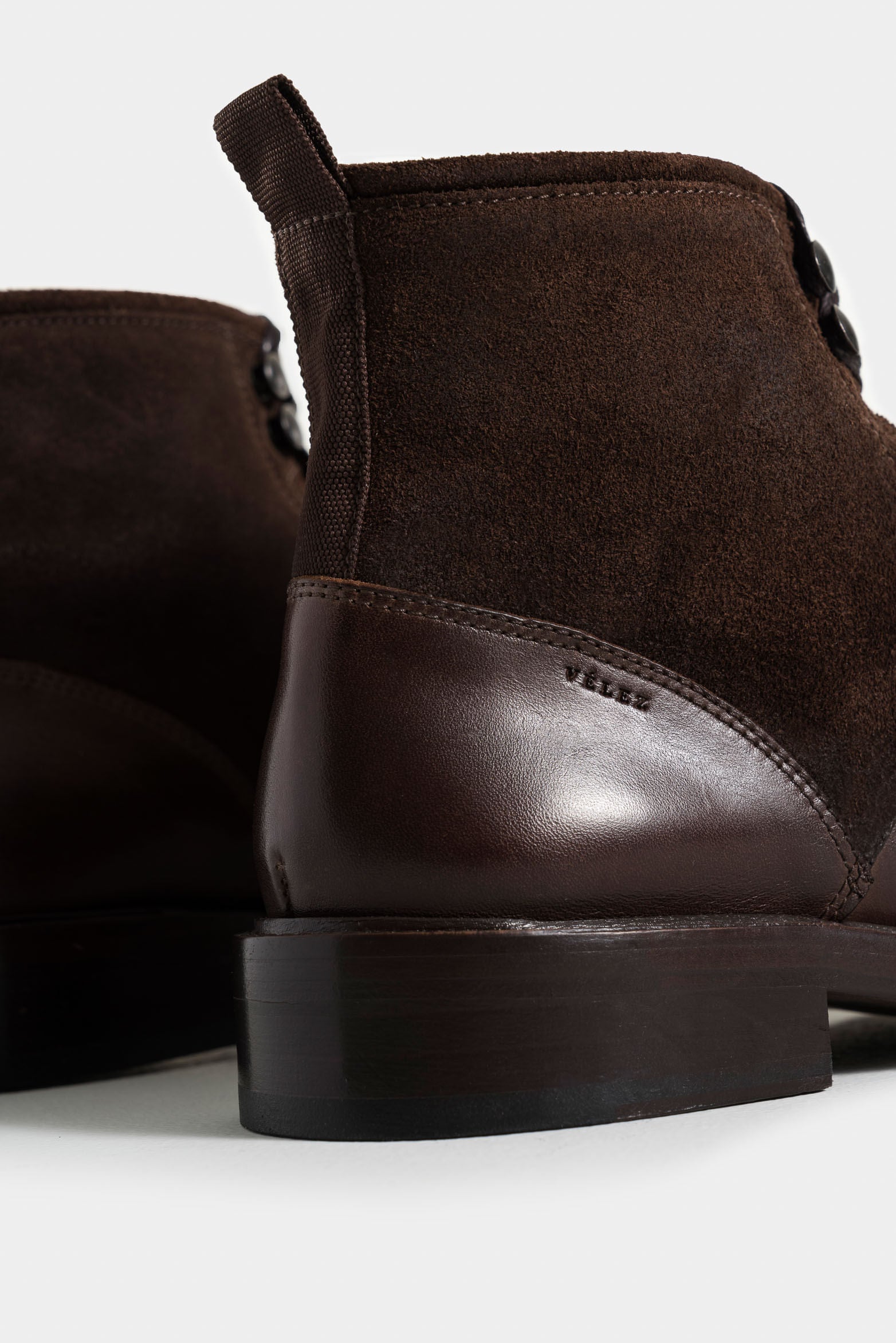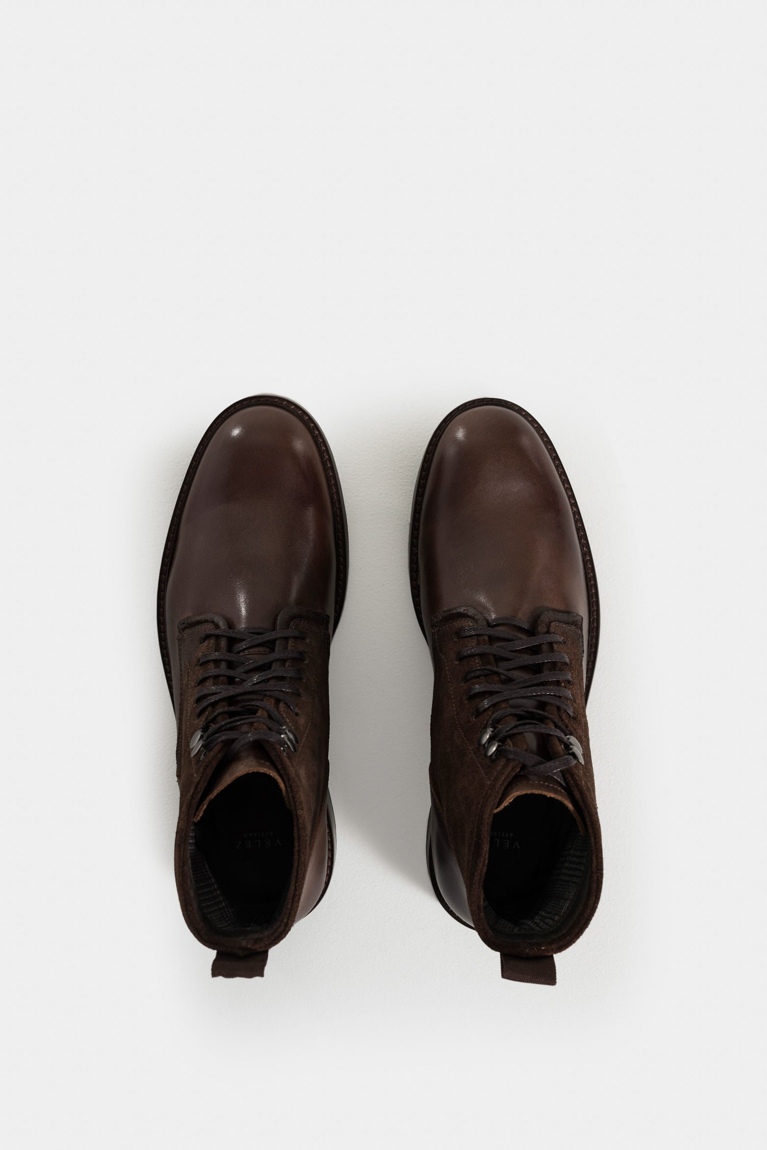 Crafted in smooth leather and suede with a subtle pull-up “writing” effect, these boots draw inspiration from office style to complement refreshed casual looks. A textured shaft, metal eyelets and hooks, and a hand-aged finish at the toe add depth and distinction—elevating a timeless essential in the modern wardrobe.