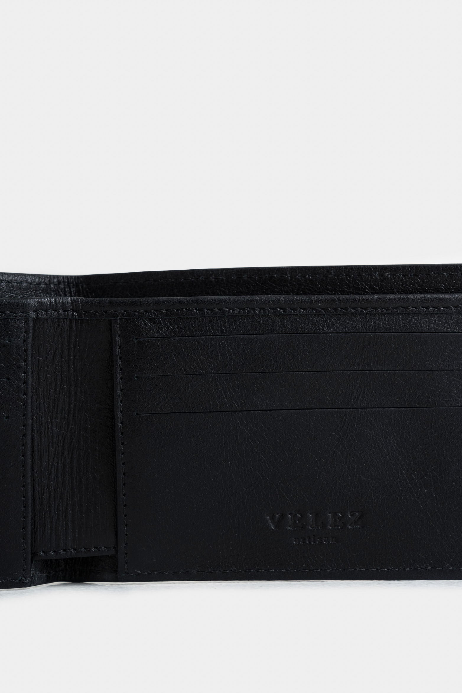 This meticulously crafted piece, made from high-quality leather, features laser engraving with the iconic Vélez bee, a detail that fuses art and functionality. Designed for everyday practicality, it offers six card slots and a spacious compartment for bills. With innovative RFID protection, your data remains secure, while the heat-stamped logo on the front underscores its exclusivity. A perfect union of craftsmanship, security, and sophisticated style.