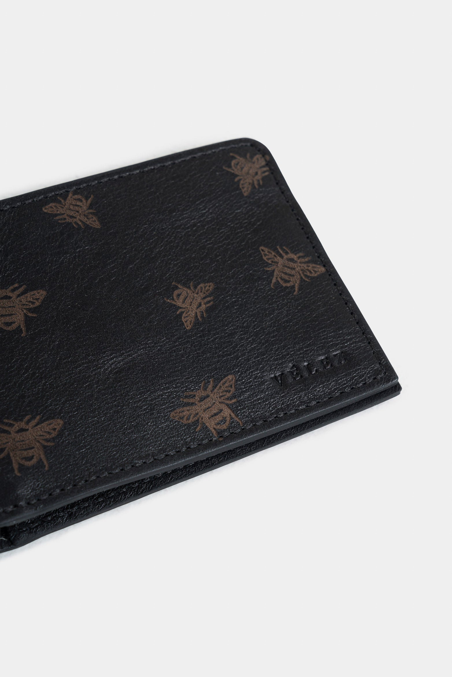 Men's Hibiscus Leather Wallet with Embossed Bee