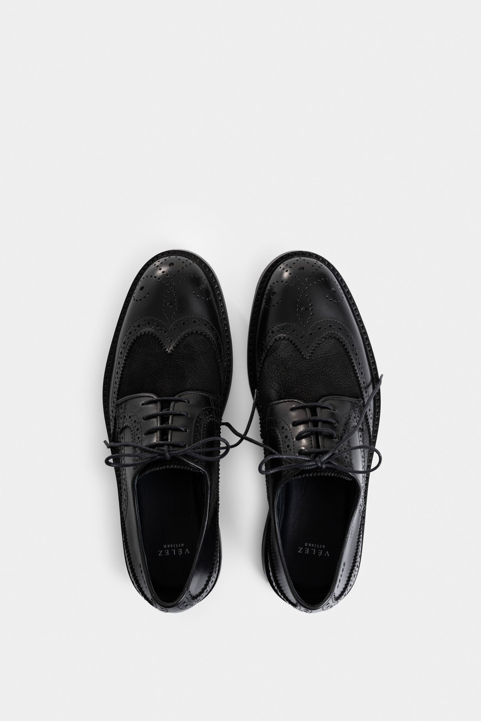 The Solar lace-up shoes for men stand out with their blend of textures, perforation details, and traditional cuts, redefining the silhouette with a contemporary twist. Handcrafted with an artisanal touch, they feature leather and crepe soles, making them the ideal choice for elevating your everyday urban ensembles.