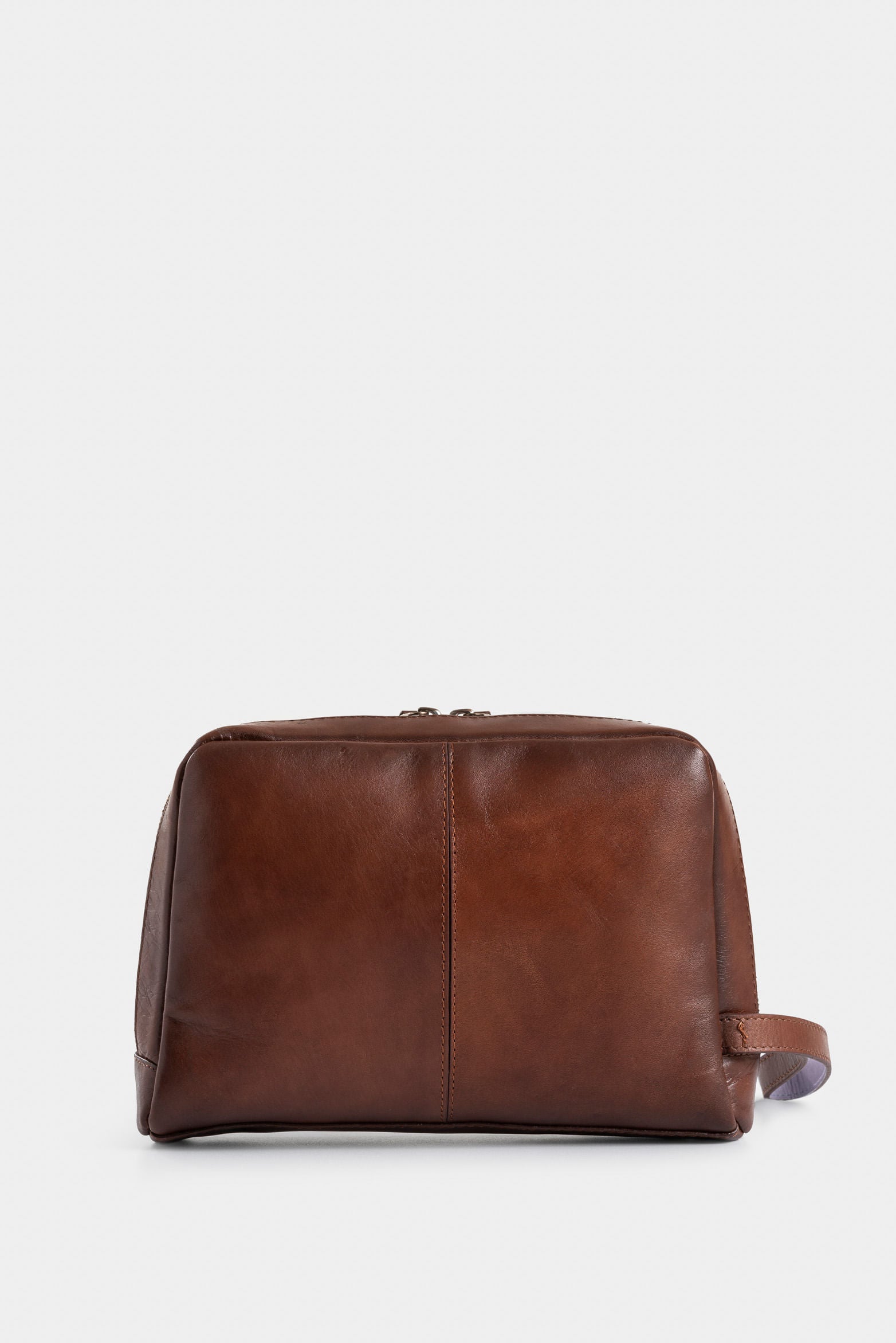 Men's Taupe 2.0 Leather Travel Organizer with Contrast Handle Detail