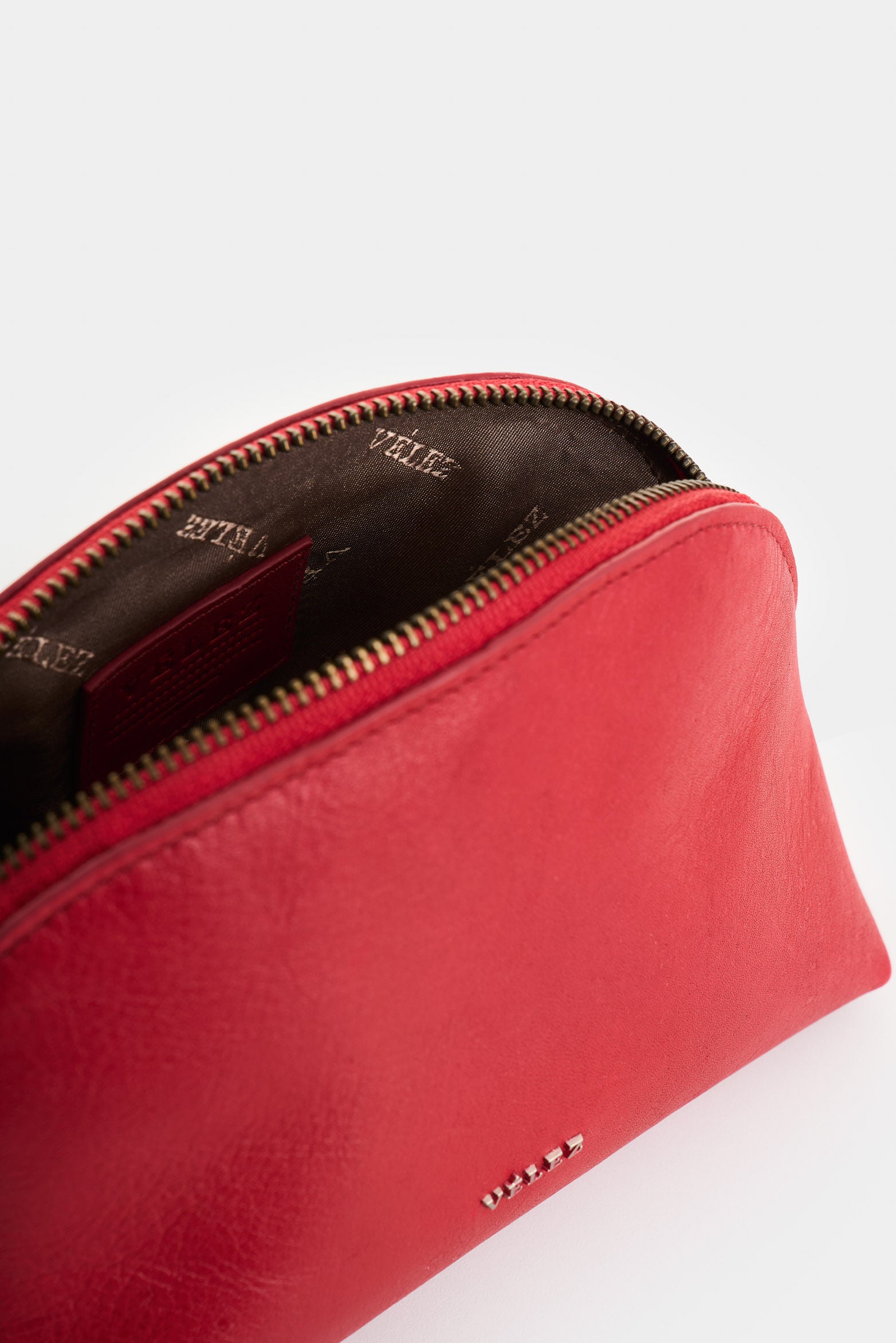 Clean lines and functionality define this smooth leather cosmetic bag. Its compact and structured design allows you to organize makeup and daily essentials with ease, while the curved silhouette and impeccable finishes reflect a refined, sophisticated aesthetic.