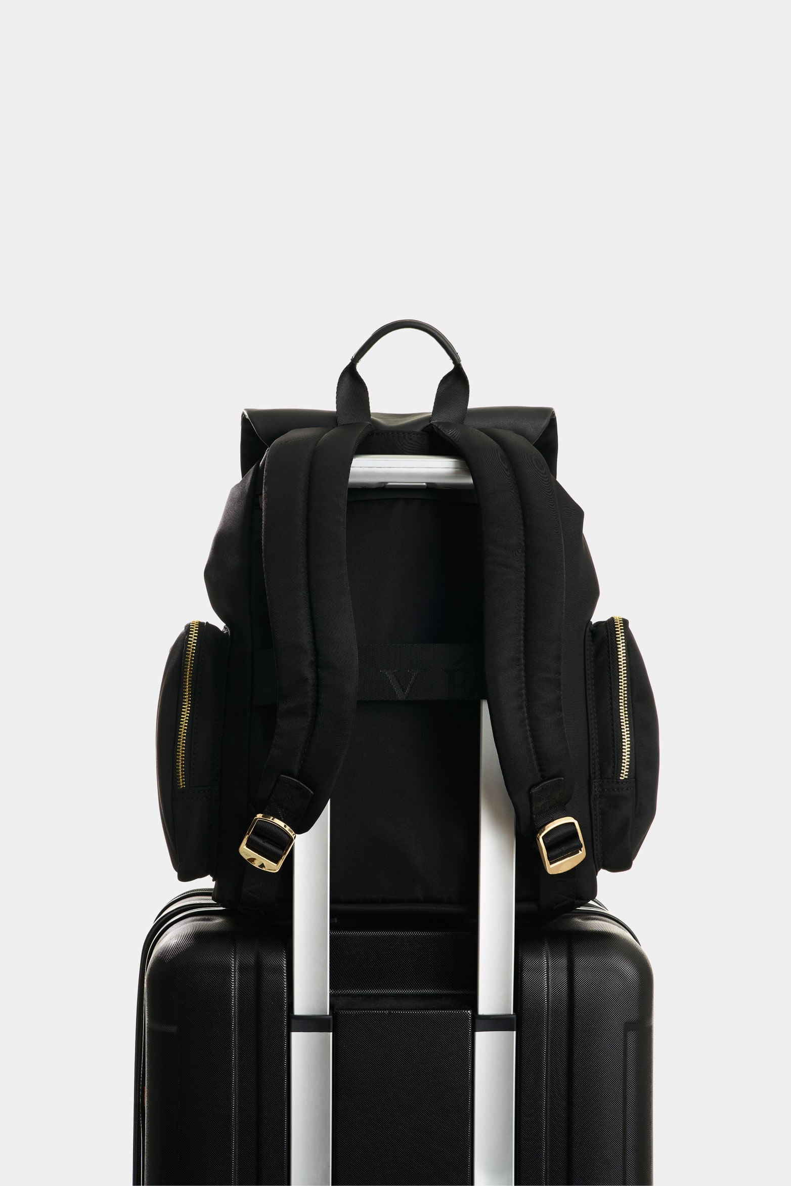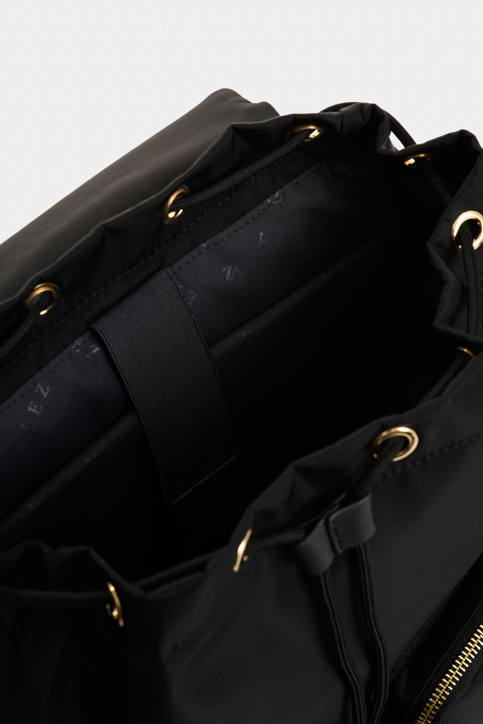 Ideal for travel or everyday use, this backpack elevates its sustainable quality by being crafted from recycled nylon, reflecting our commitment to the environment. With smooth leather details and strategic pockets, it combines functionality and contemporary style. Its gold-tone hardware and drawstring closure add a sophisticated touch, while its design highlights the craftsmanship and quality that define our essence.