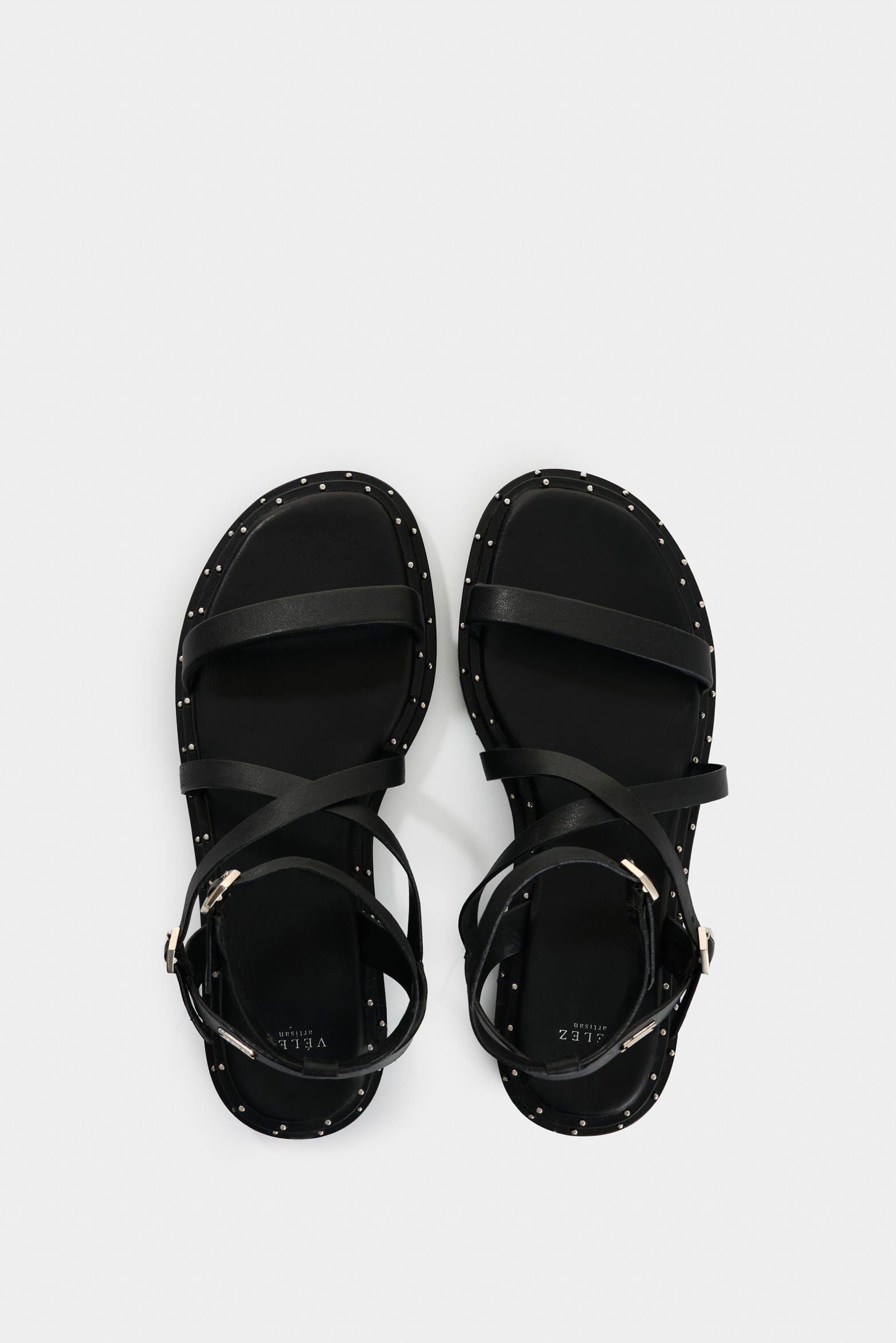 With a rebellious touch and luxurious sheen, these platform sandals elevate any look beyond the predictable, adding a utilitarian yet timeless style. Crafted in smooth leather with a natural sheen finish, they feature a double-welt lug sole and mini metallic studs that exude strength and character. Their buckle fastening system and leather-lined insole ensure comfort, all handcrafted with the Vélez artisan heritage.
