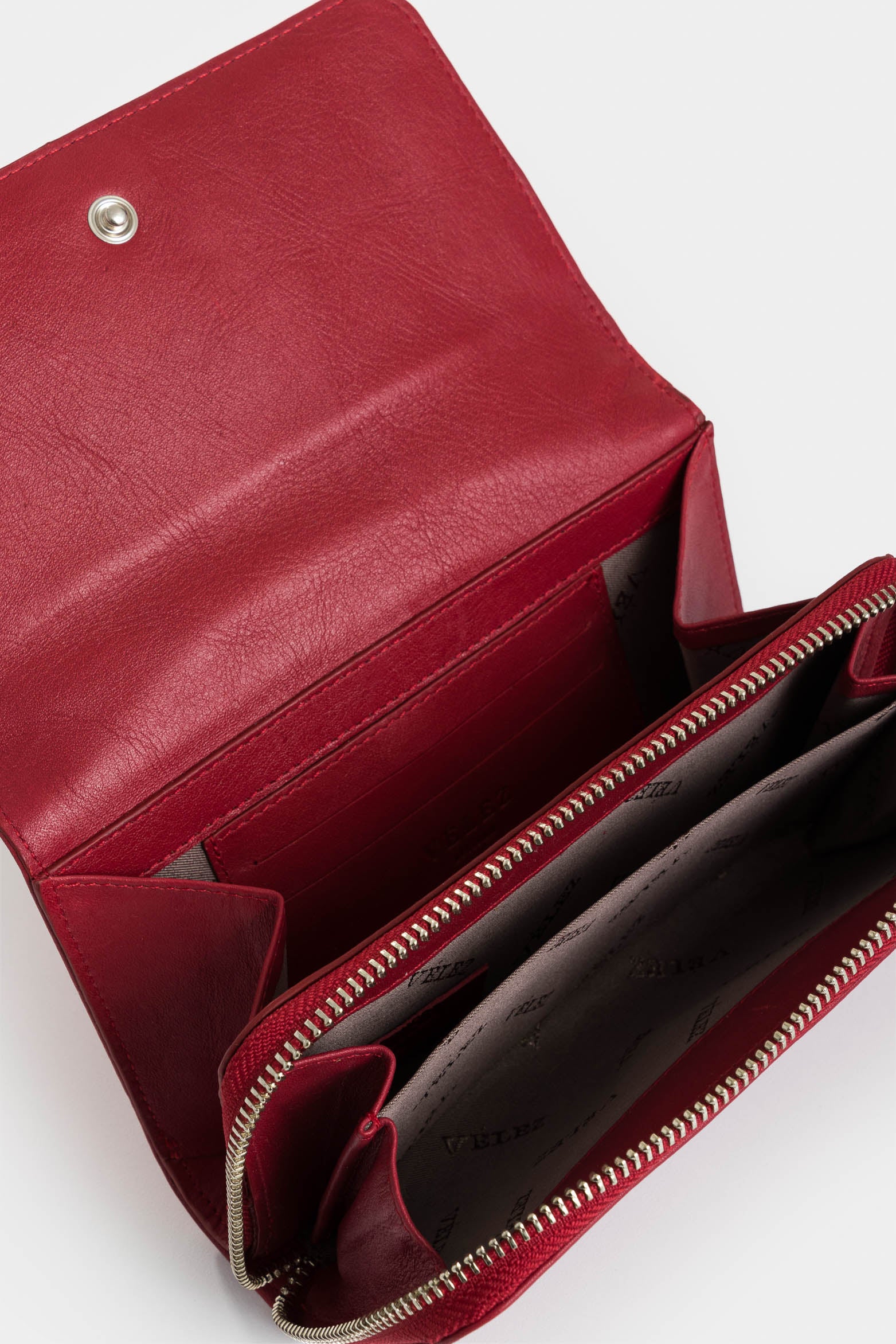 Our wallet, a symbol of rebellious femininity and practical luxury, stands out for its leather with croc finish and silver foil, offering versatility and durability. Internally organized and jacquard-lined, it includes card slots and a zippered pocket for documents and coins. Its flap and hidden snap closure system ensure security, while its aesthetic reflects Vélez's authenticity and avant-garde craftsmanship in every detail.
