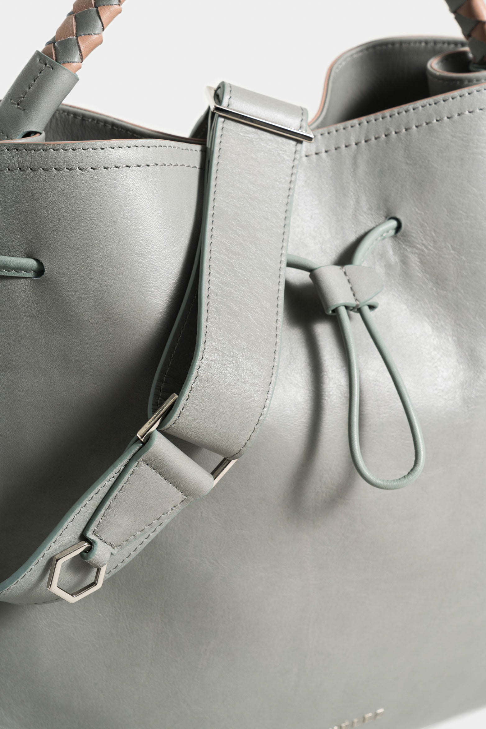 With ample space, a contemporary form, and a sophisticated silhouette, our Pers shopping bag type is a prime example of artisan luxury and authenticity that defines our essence. Made from smooth leather with an adjustable drawstring system and clasp, its form is comfortable for daily use and sufficiently elegant to accompany you to any type of event or occasion. Inside you will find an internal zip pocket and a flat pocket for your cell phone. Its handwoven handle detail raises the silhouette to a piece with high artisan value.