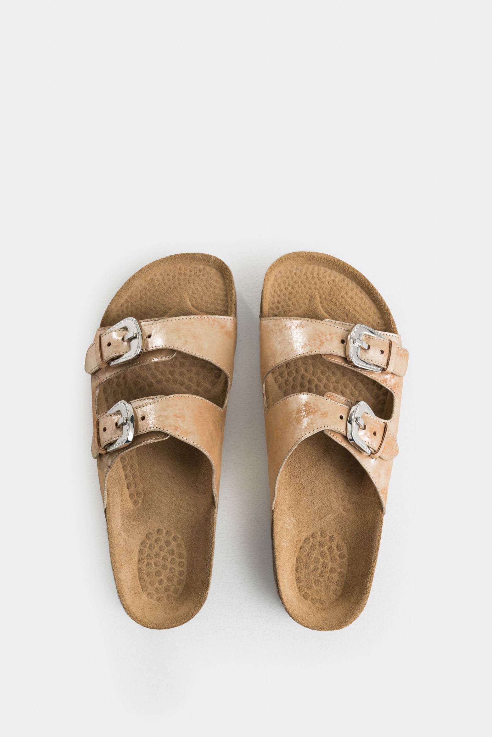 Pilos Flat Sandals in Foil Leather with Cork Sole