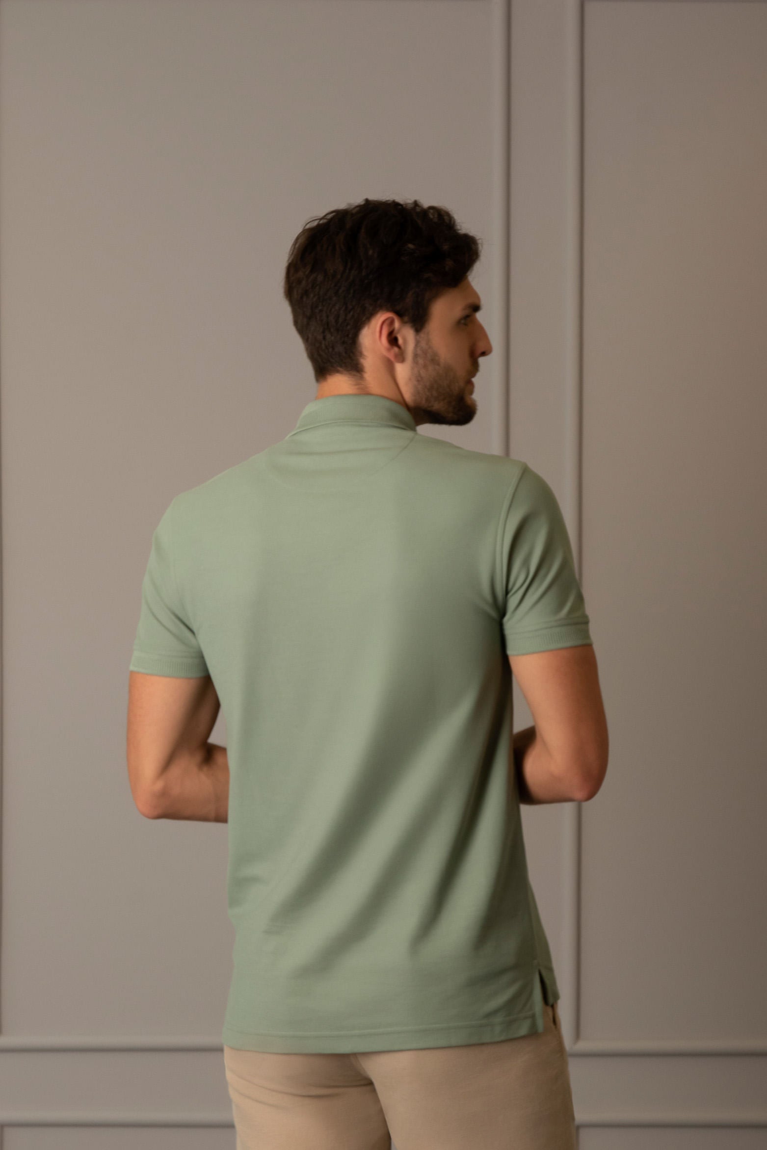 A polo shirt, crafted in checkered jacquard fabric. Its woven collar, constructed in the same color range, offers a texture that adds value and makes it stand out. A fresh and youthful garment, perfect for pairing with jeans, trousers, or shorts for casual looks.