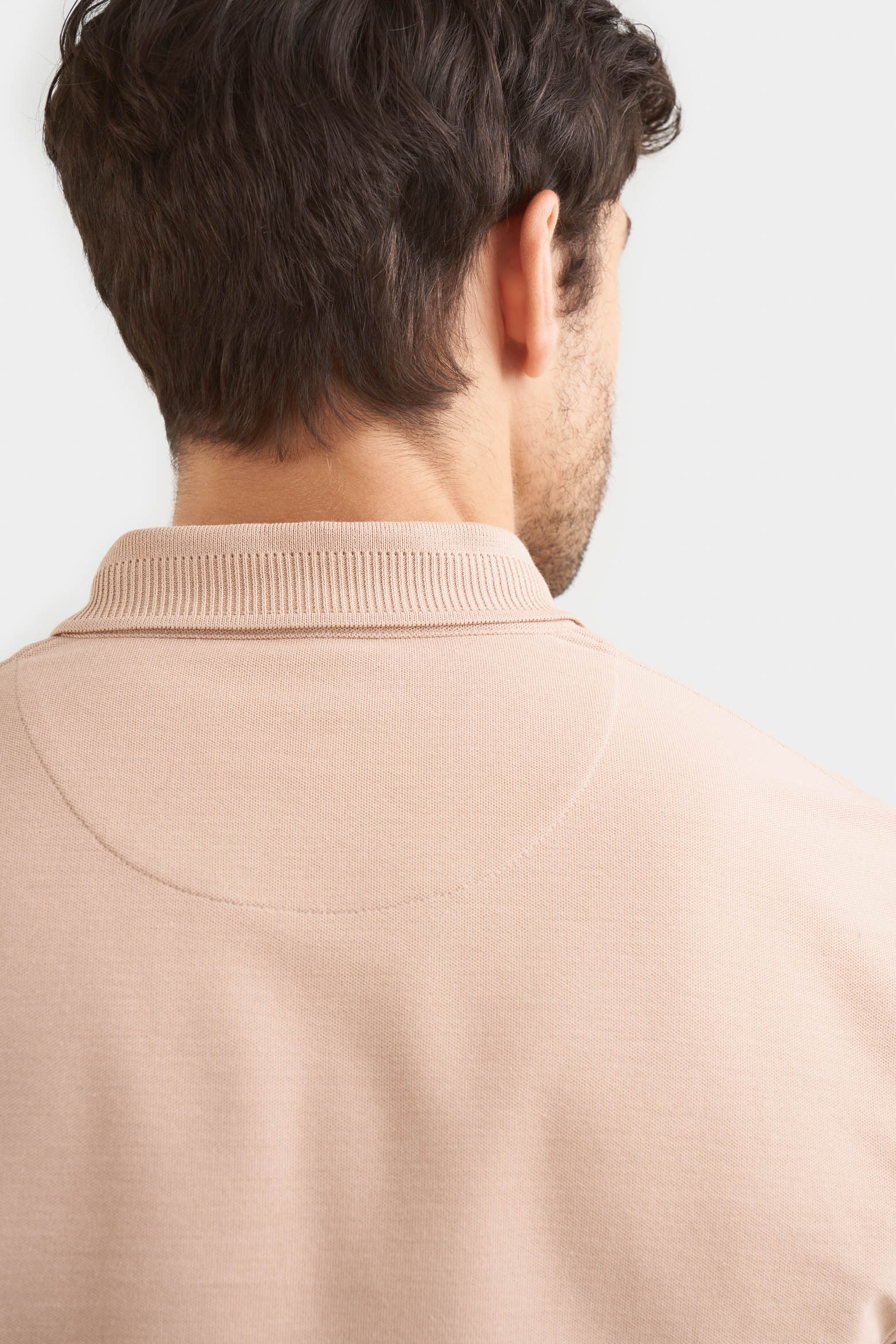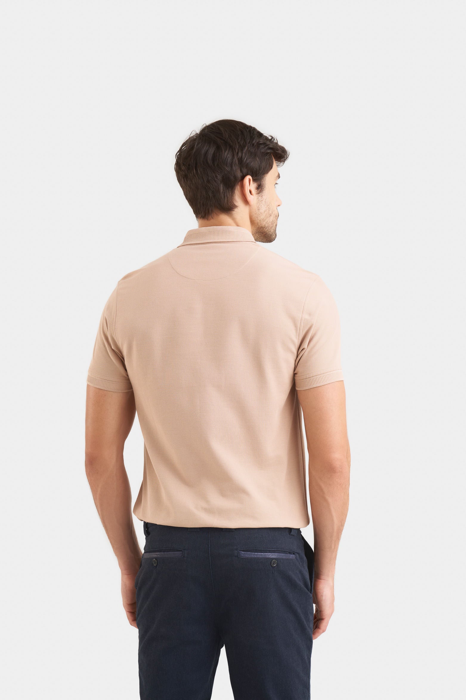 A polo shirt, crafted in checkered jacquard fabric. Its woven collar, constructed in the same color range, offers a texture that adds value and makes it stand out. A fresh and youthful garment, perfect for pairing with jeans, trousers, or shorts for casual looks.
