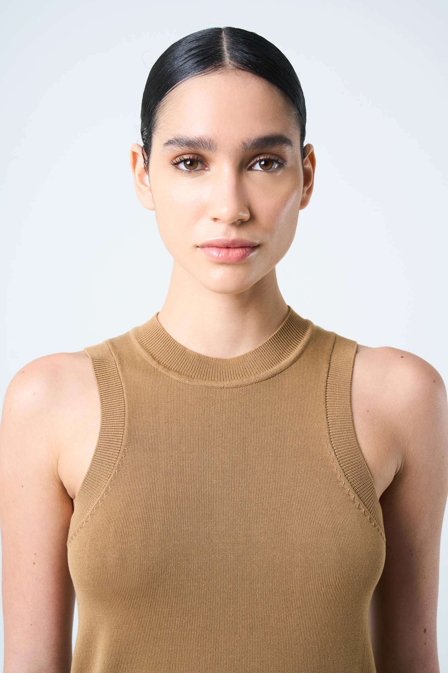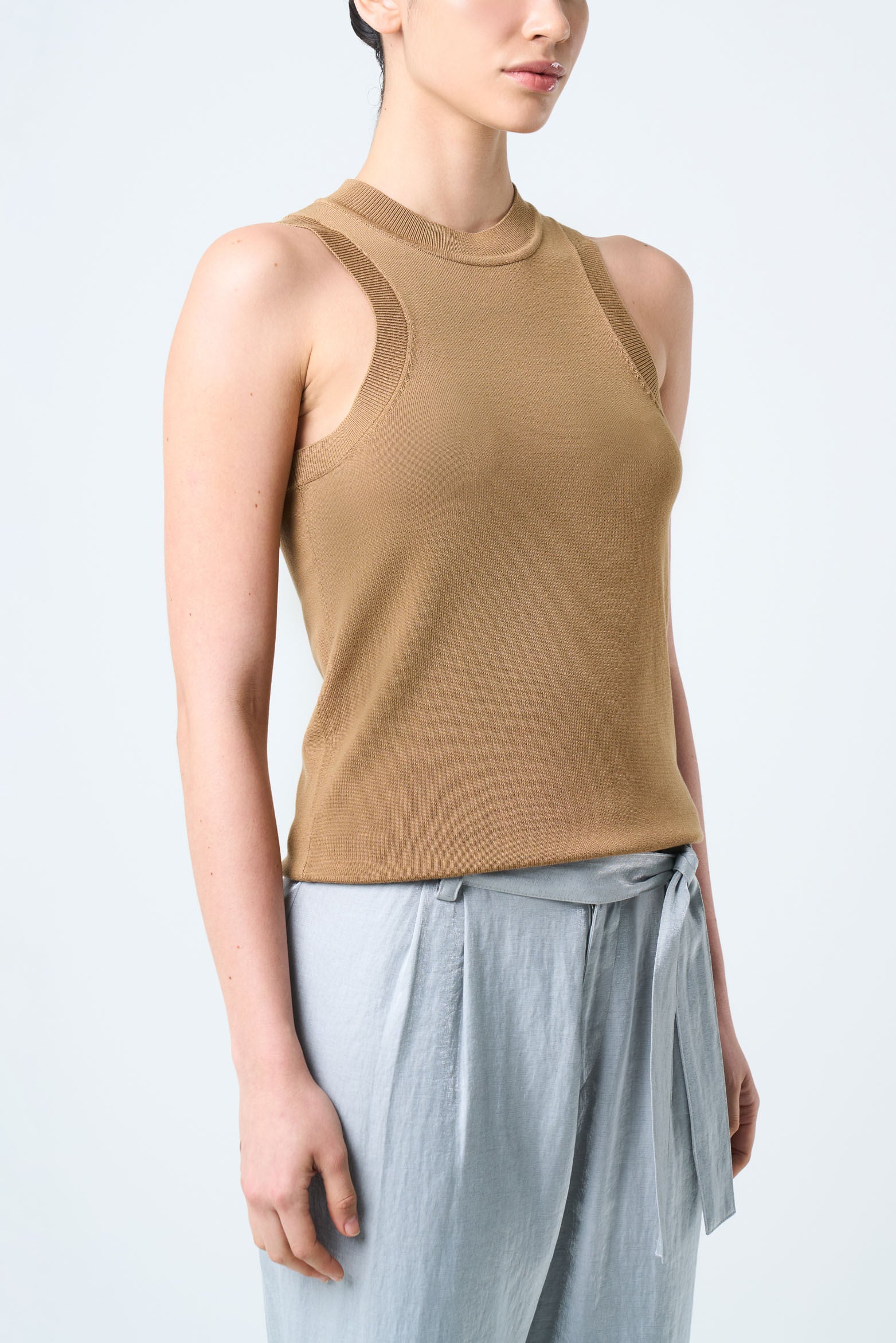 Rectilinear Knit Tank Top for Women Sleeveless Honey