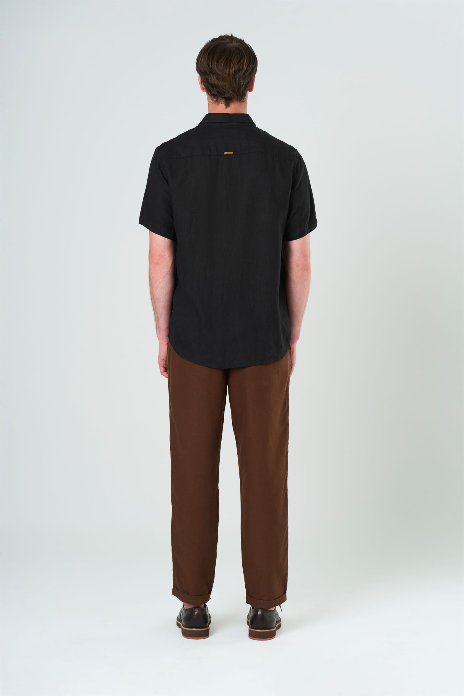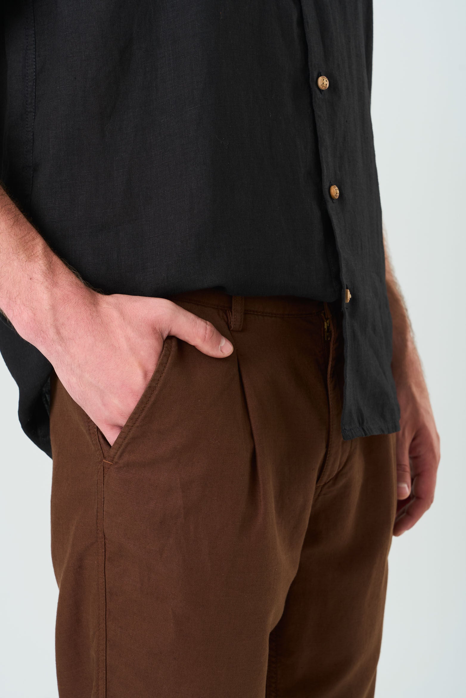Ideal for those days when you want to feel fresh and comfortable, these 100% linen trousers with front pleats adapt to any occasion. Their relaxed fit and subtle flare make them perfect for pairing with woven shirts, creating a contemporary and sophisticated look, or with t-shirts for a more casual style. A versatile piece that elevates any outfit with natural charm.