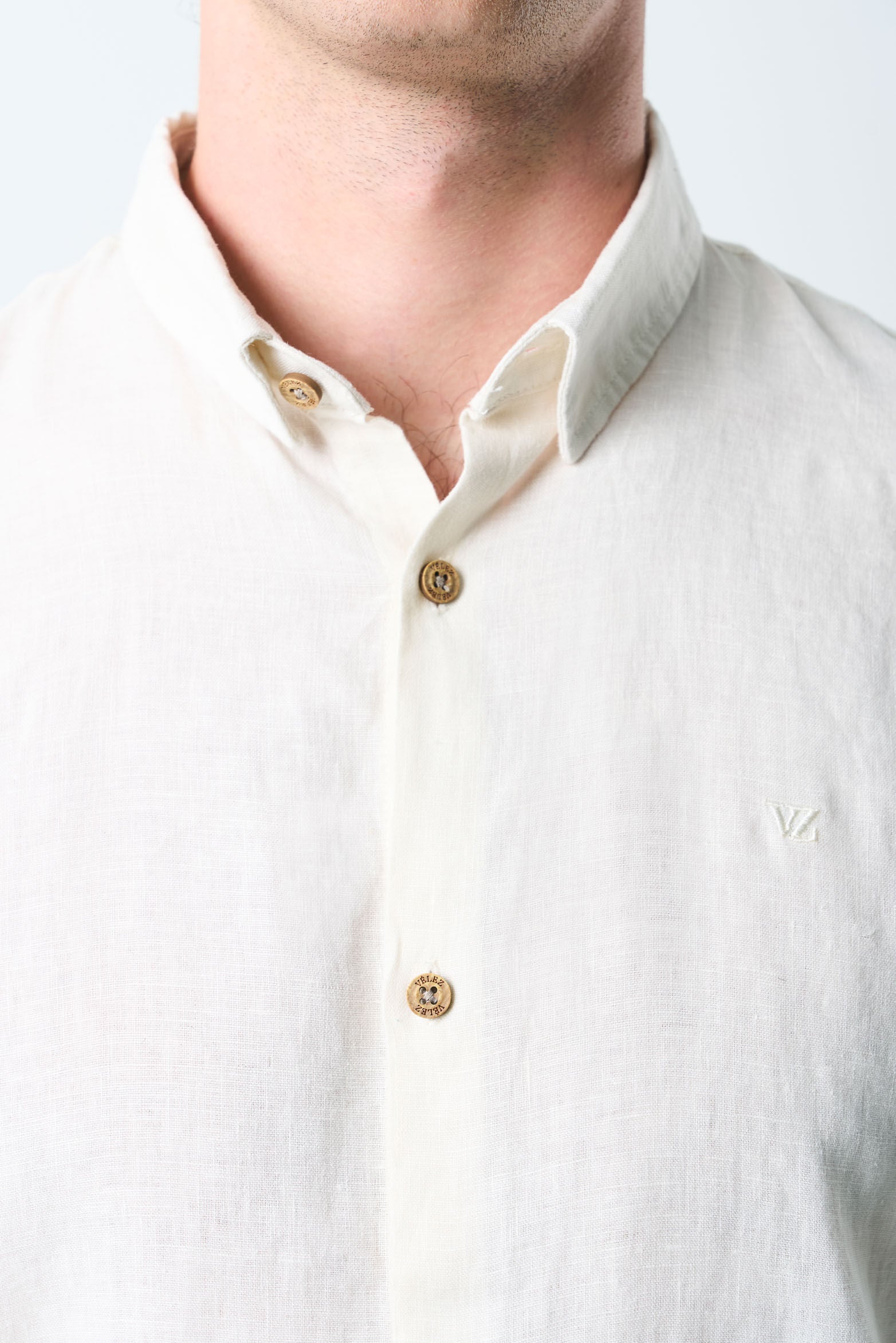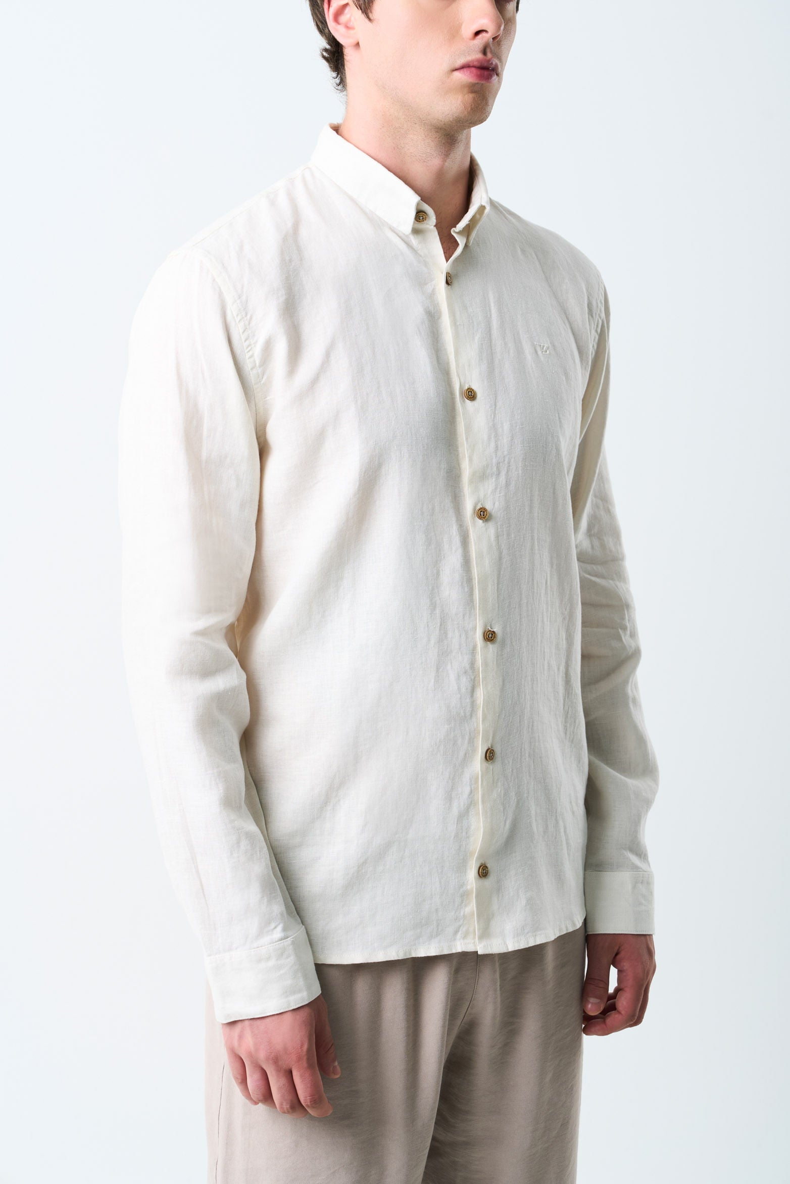 A balance between freshness and elegance, this semi fitted shirt crafted from 100% linen brings lightness and comfort to your days. The wood look buttons add an artisanal detail that enhances its character. Perfect for moving seamlessly between formal and casual settings, it complements your outfits with a versatile piece of natural charm and timeless sophistication