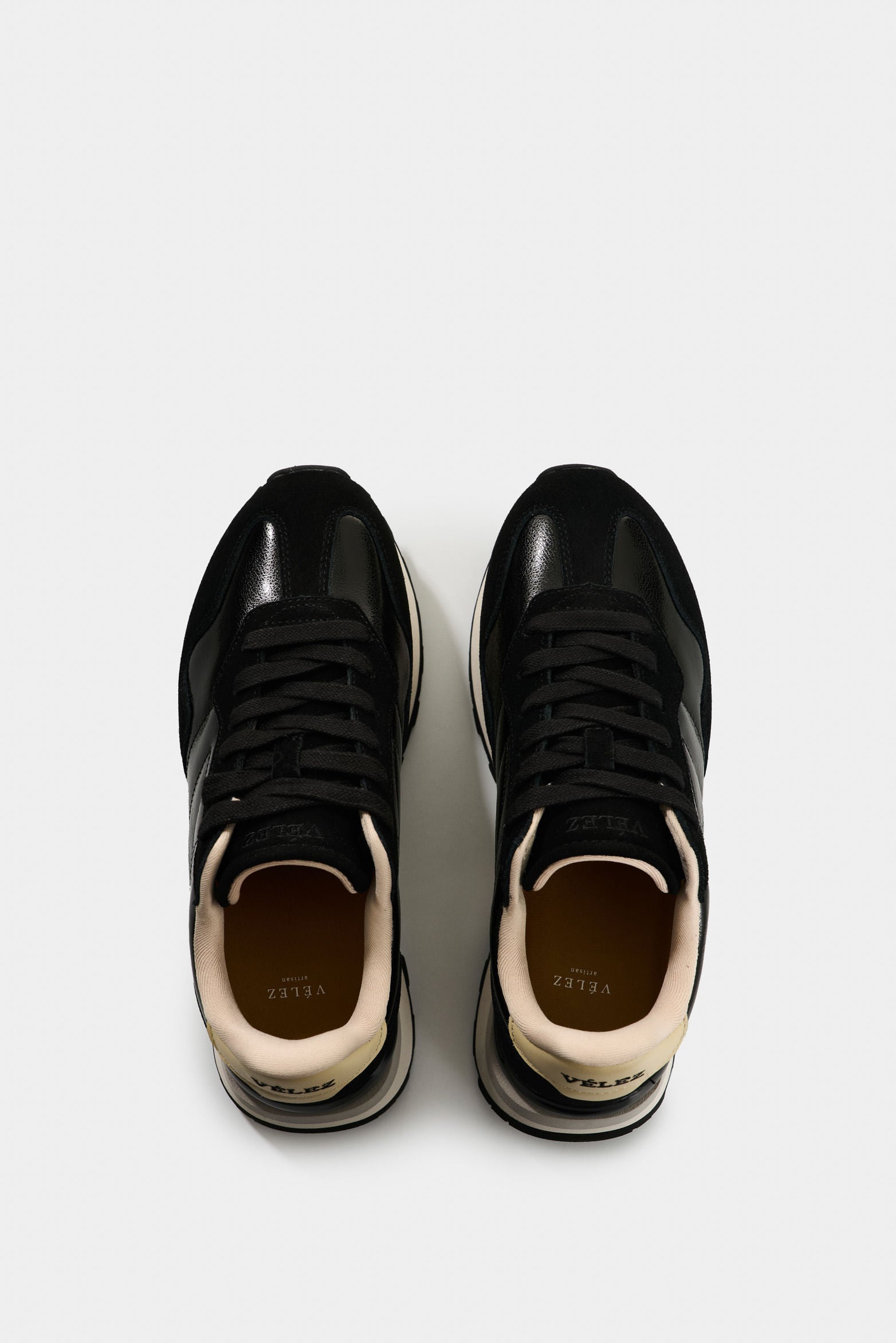 With a distinctive sheen and avant-garde contrasts, these sneakers stand out for their authentic design that unites the best of sporty and casual style. The smooth two-tone EVA sole offers lightness and traction, while the combination of split leather, smooth leather, and foiled leather provides softness and breathability. The stitching creates a dynamic and distinctive texture, guaranteeing comfort for an elevated and sophisticated experience.