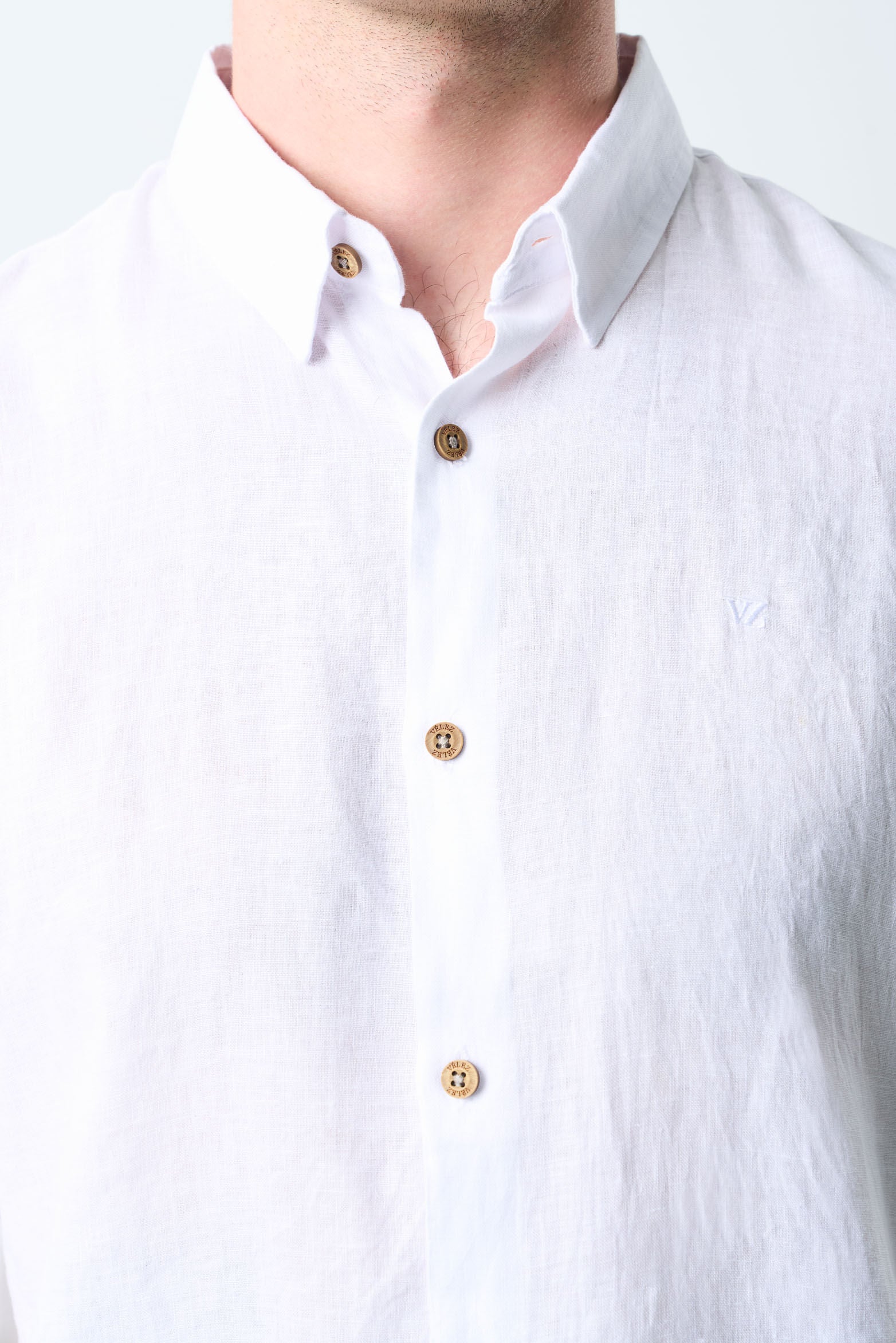 A balance between freshness and elegance, this semi-fitted shirt crafted from 100% linen offers lightness and comfort for your everyday wear. The wood-look buttons add an artisanal touch that enhances its character. Perfect for transitioning between formal and casual occasions, it completes your outfits with a versatile piece of natural charm and timeless sophistication