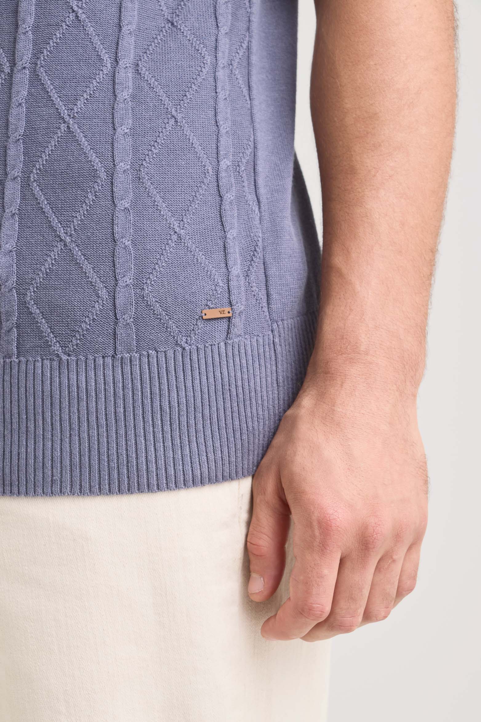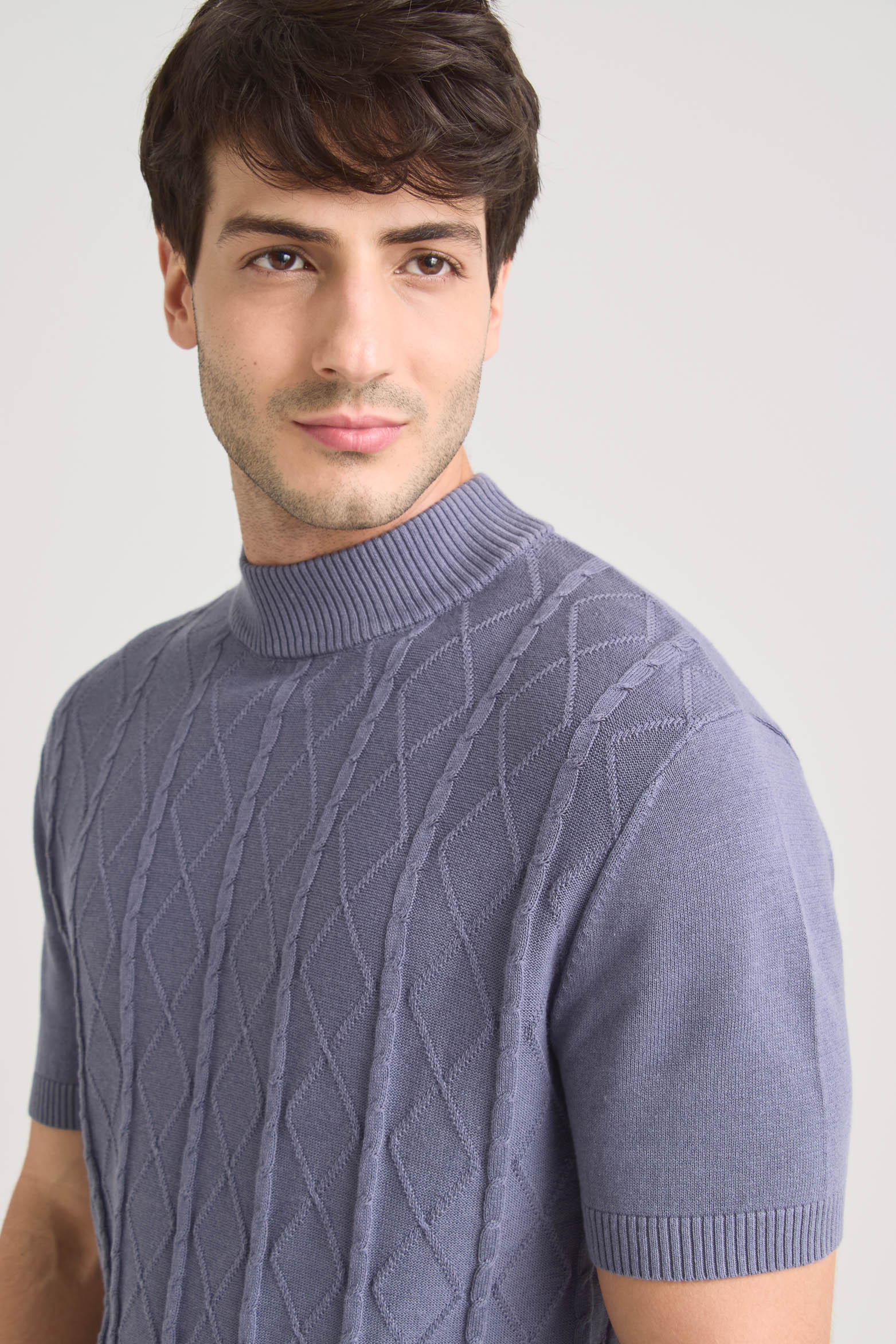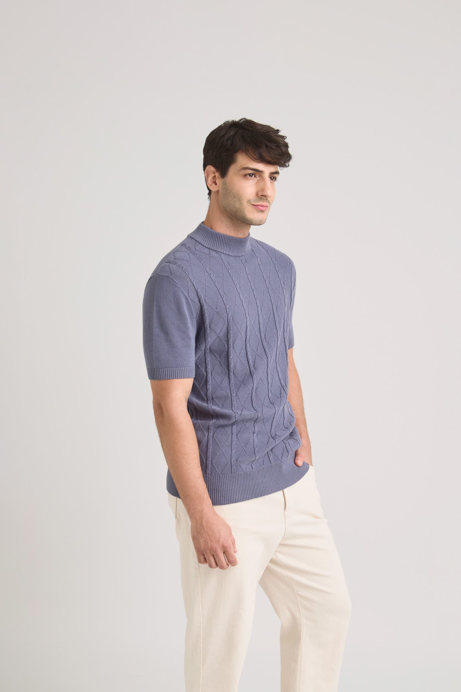 Elevate your style with our knitted T-shirt. Its design, made from light fabric, features strongly contemporary shapes and a monochromatic palette ideal for executive wear or relaxed looks. With its geometrical patterns, each season this T-shirt ensures a style that transcends trends, securing a place as an essential in your wardrobe.