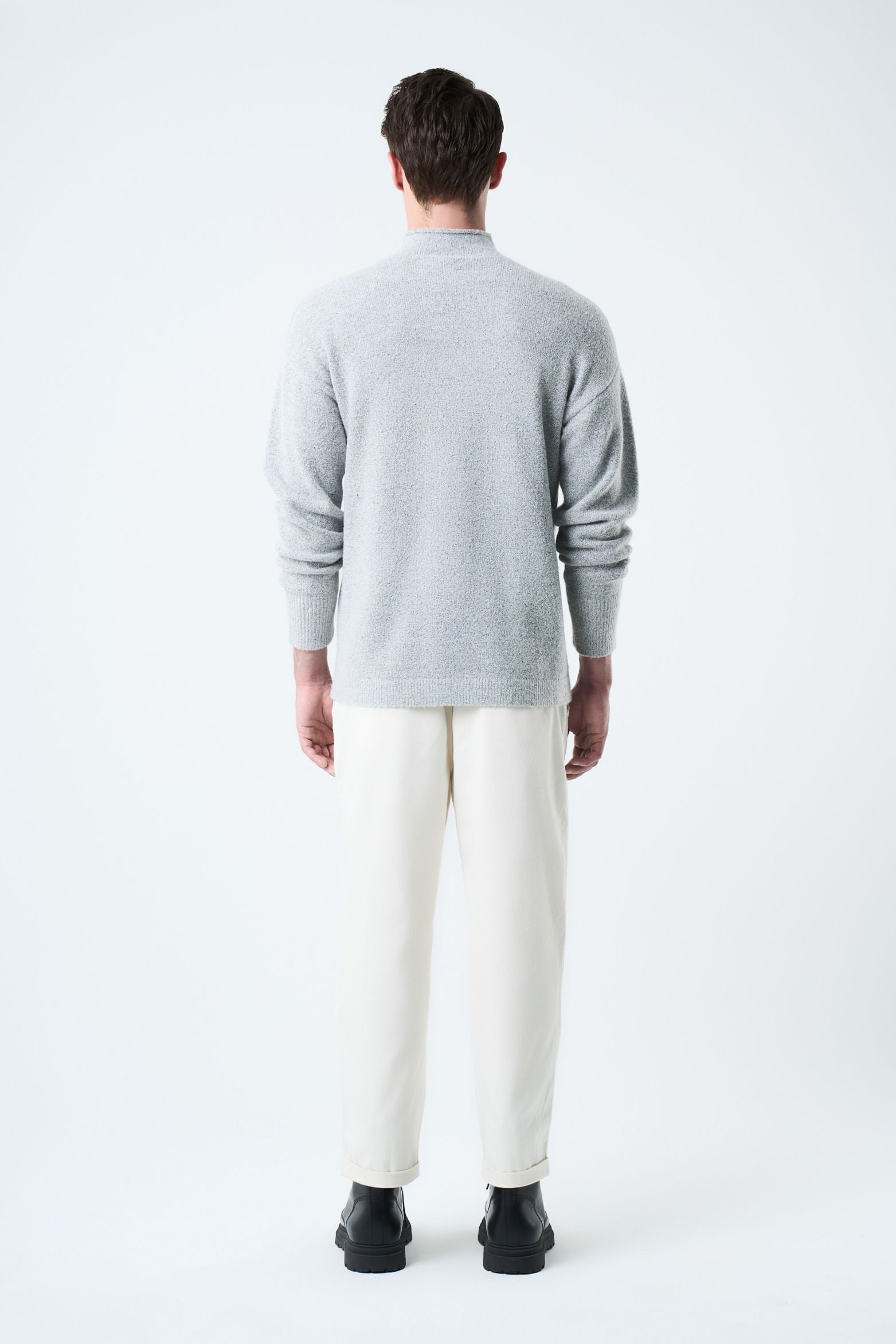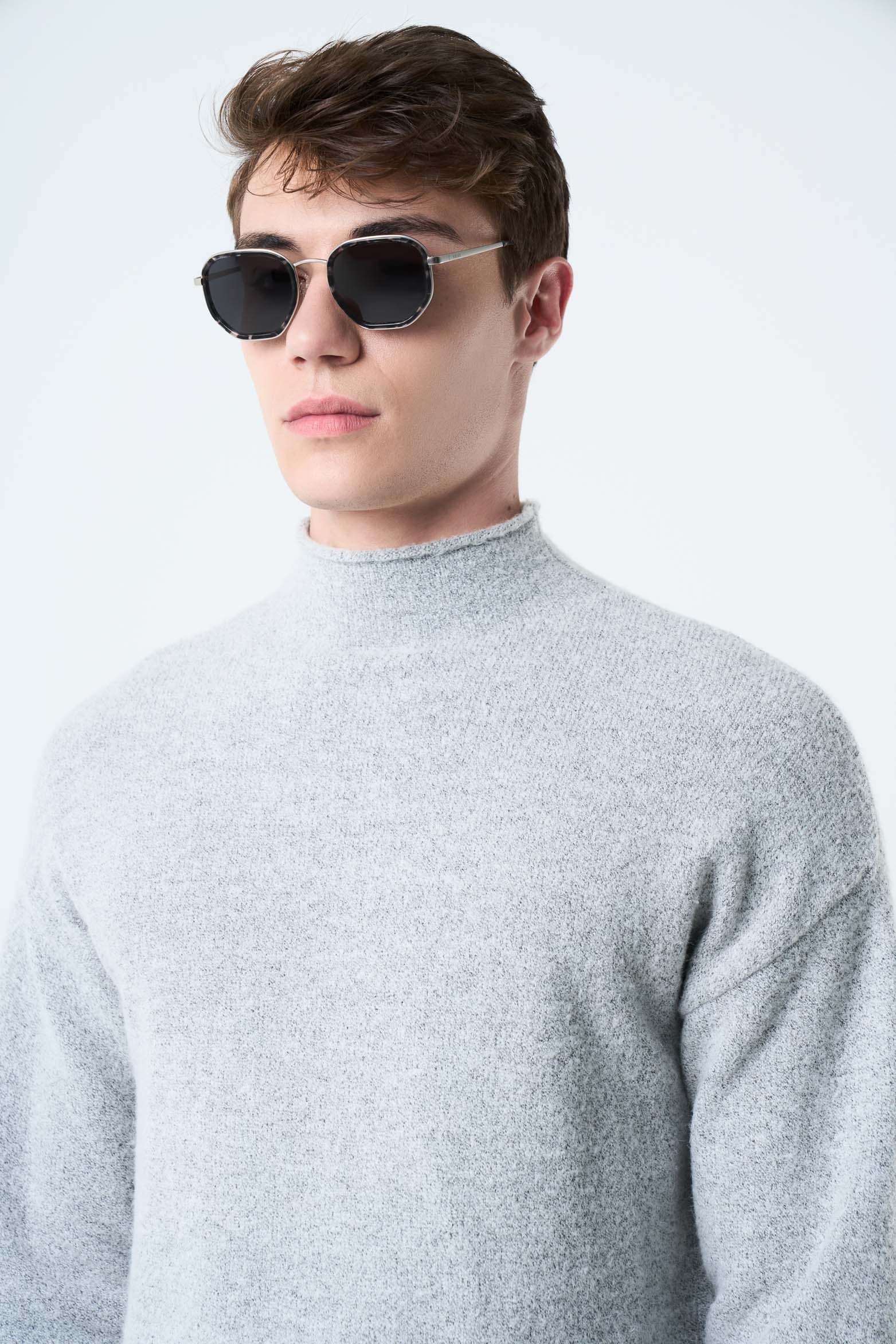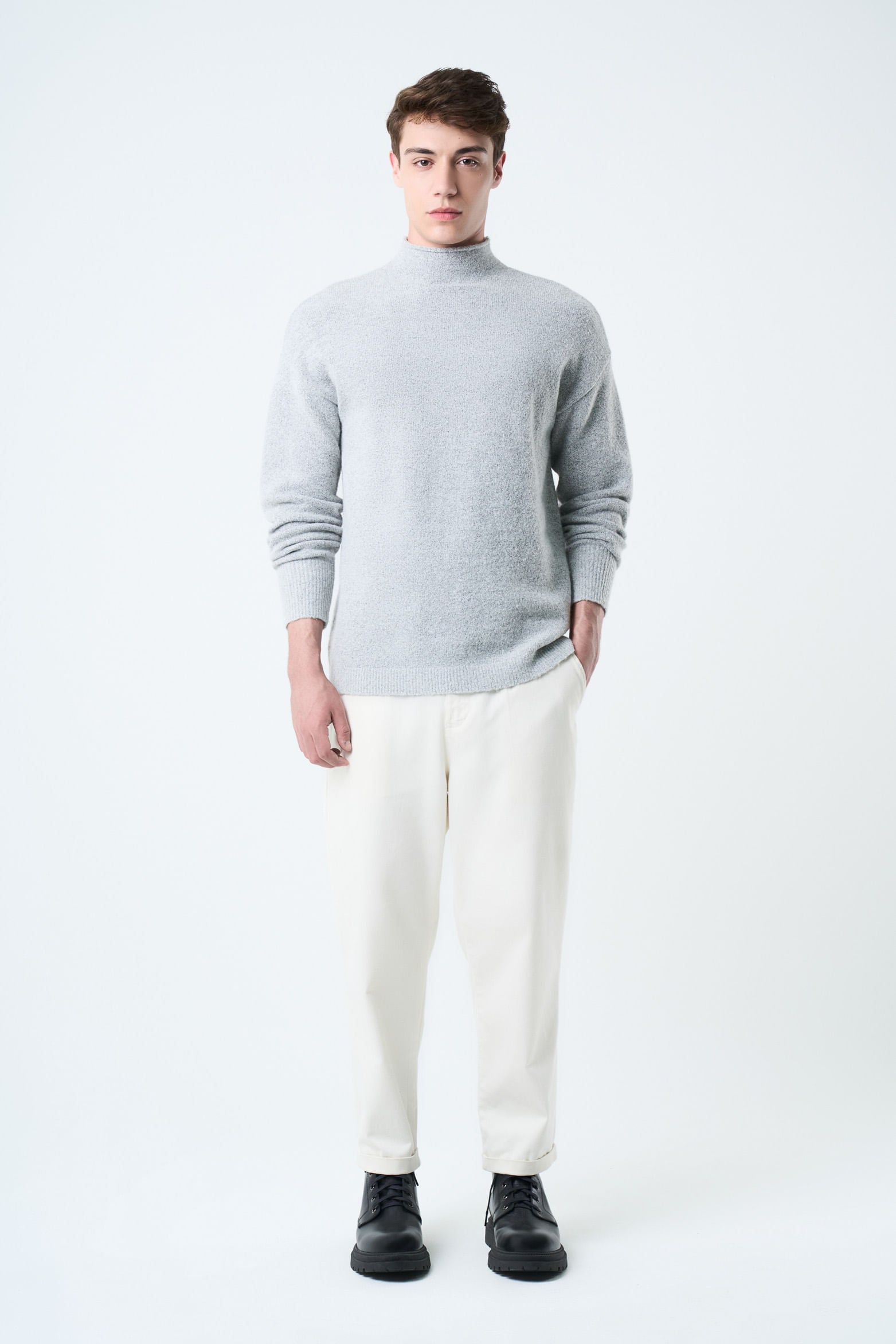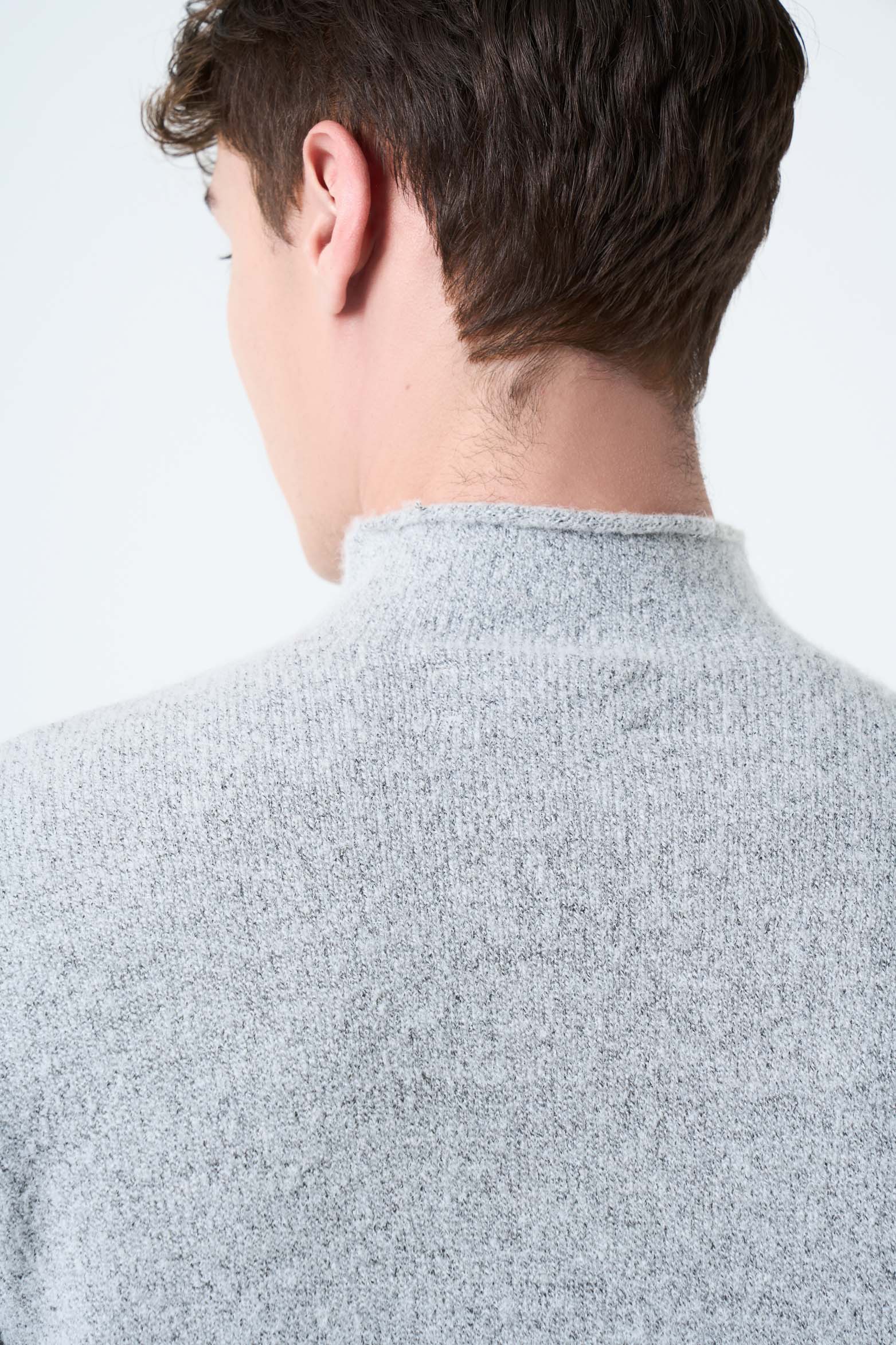 Elevate your winter outfits with the softness and sophisticated minimalism of our turtleneck knit sweater. It blends two thread colors, offering a pleasant texture and feel for cold weather. Featuring ribbed cuffs and hem and a straight fit, it is ideal for adding warmth and style to your outfits, standing out with its understated elegance and enveloping comfort.