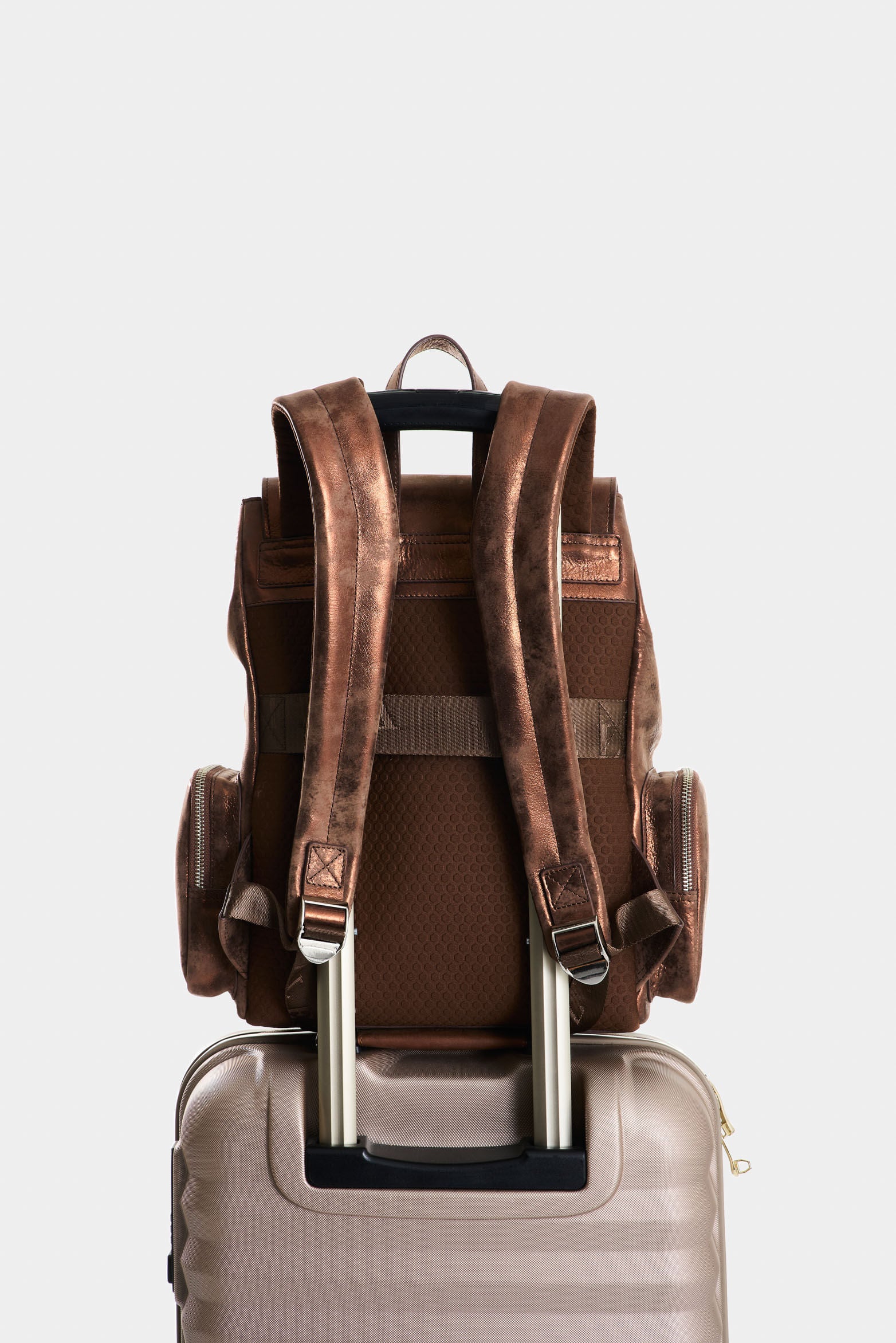 This folia leather backpack combines timelessness and individual expression. Its lightweight silhouette and standout details make it the perfect companion for your travels and adventures. With an authentic and functional design, its hexagonal flap and clasp closure add sophistication, while its multiple pockets ensure organization and comfort. Craftsmanship and design unite in a unique piece.