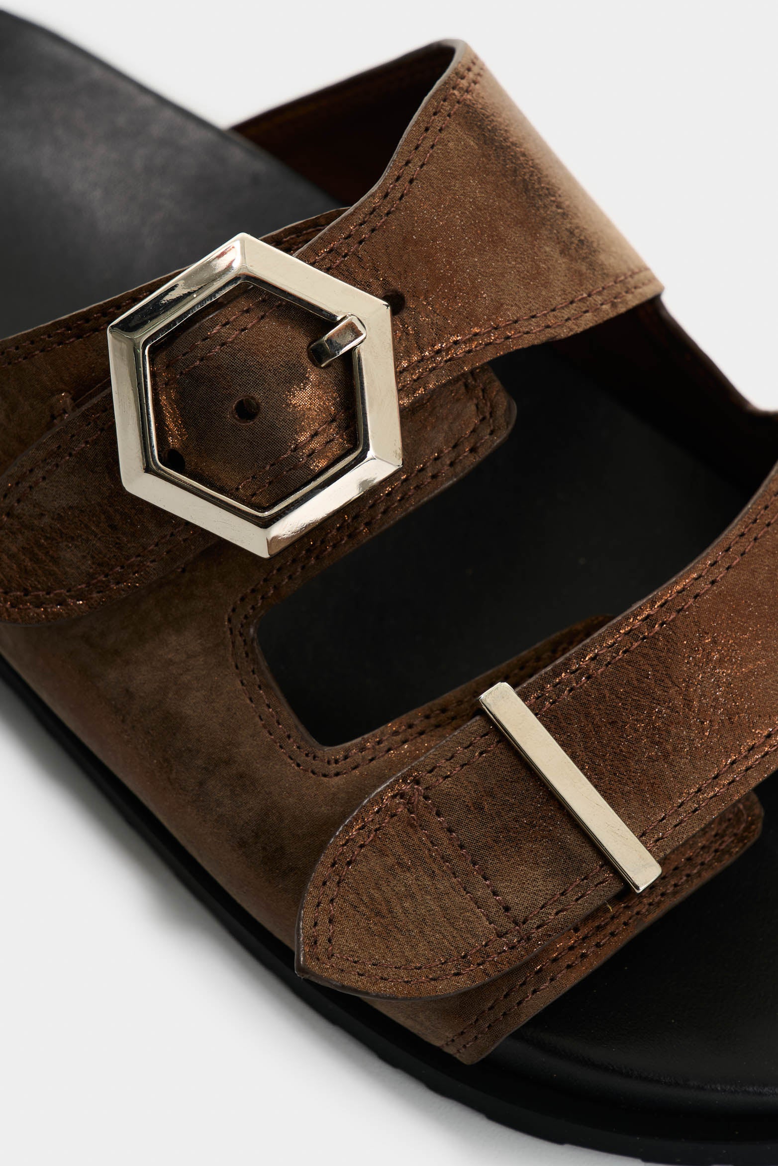 Bohemian and handcrafted details define this flat sandal, crafted in folia leather with polished nickel hardware that adds a touch of sophistication. Its boat-sole design ensures comfort. Perfect for summer styling with dresses or Bermuda shorts, or for more relaxed occasions with trousers and a shirt. A piece that reflects the dedication and handwork of our artisans, offering comfort and charm with every step.