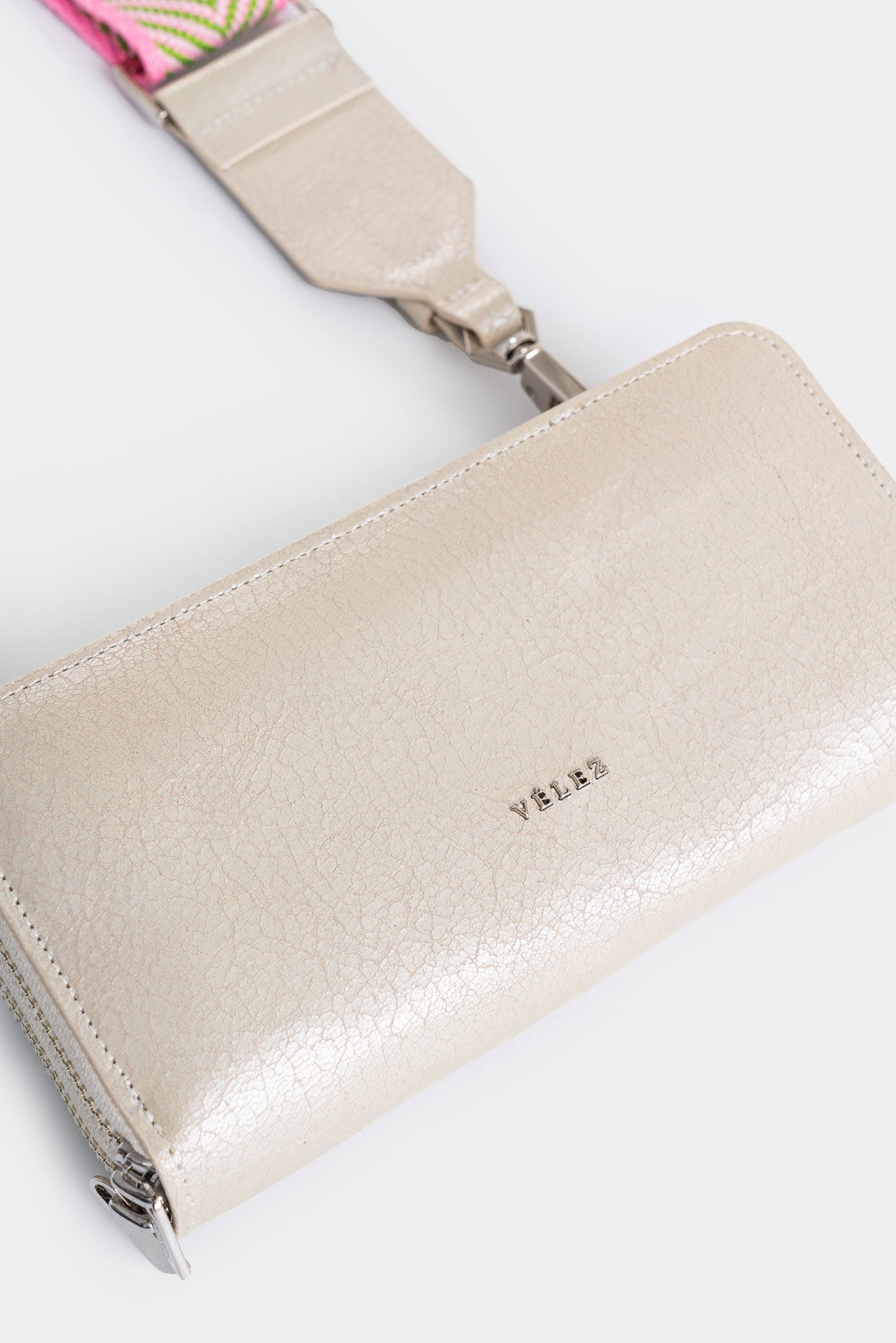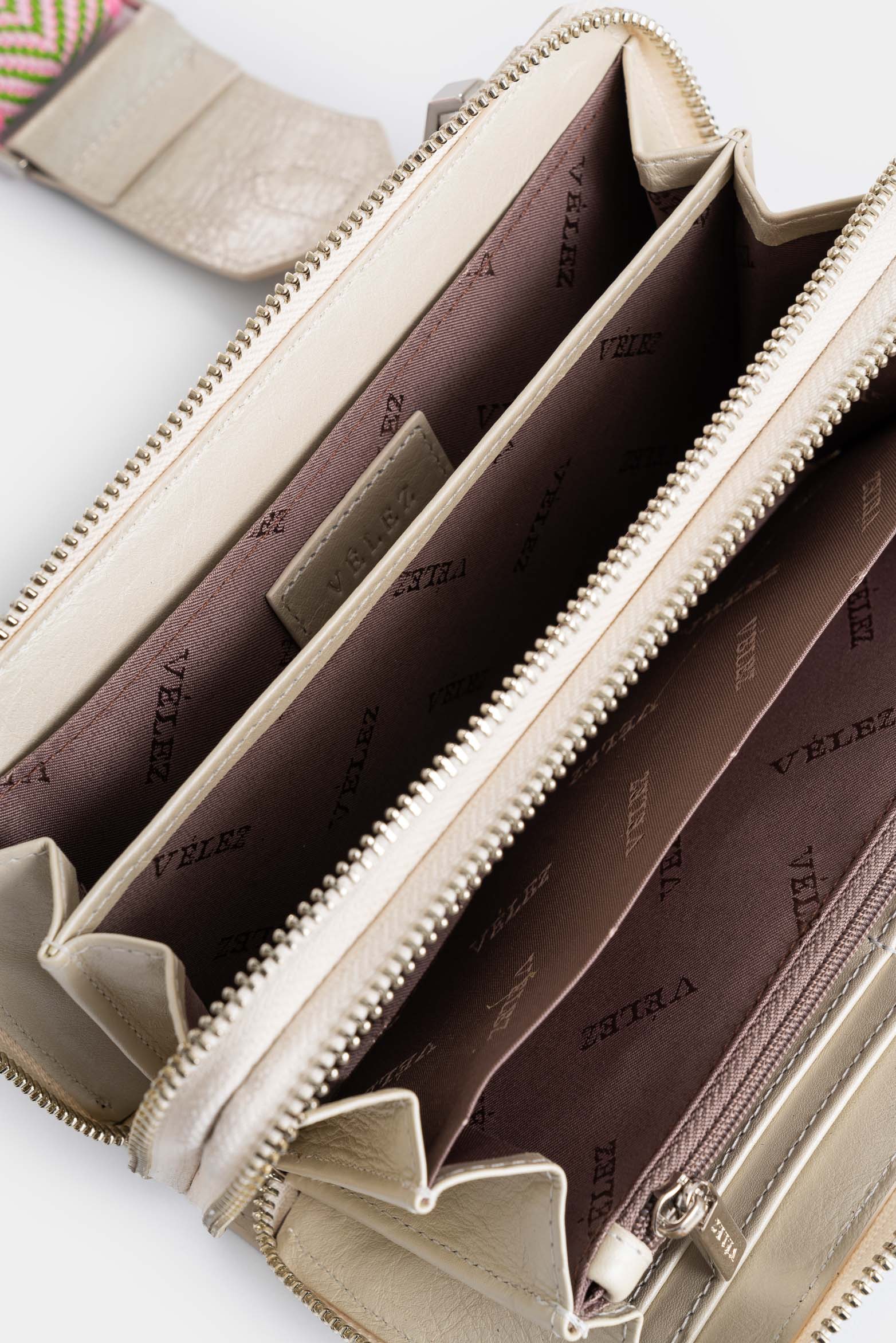 Ideal for your travels or keeping your essentials organized daily, this checkbook holder combines versatility and luxury. Handcrafted, it reflects Vélez's expertise in every detail. Available in smooth leather with a natural shine or metallic cracked finish depending on the color. Featuring multiple card slots, a double zippered compartment, and an internal coin pocket, it offers a new way to carry your daily essentials with a distinctive touch.