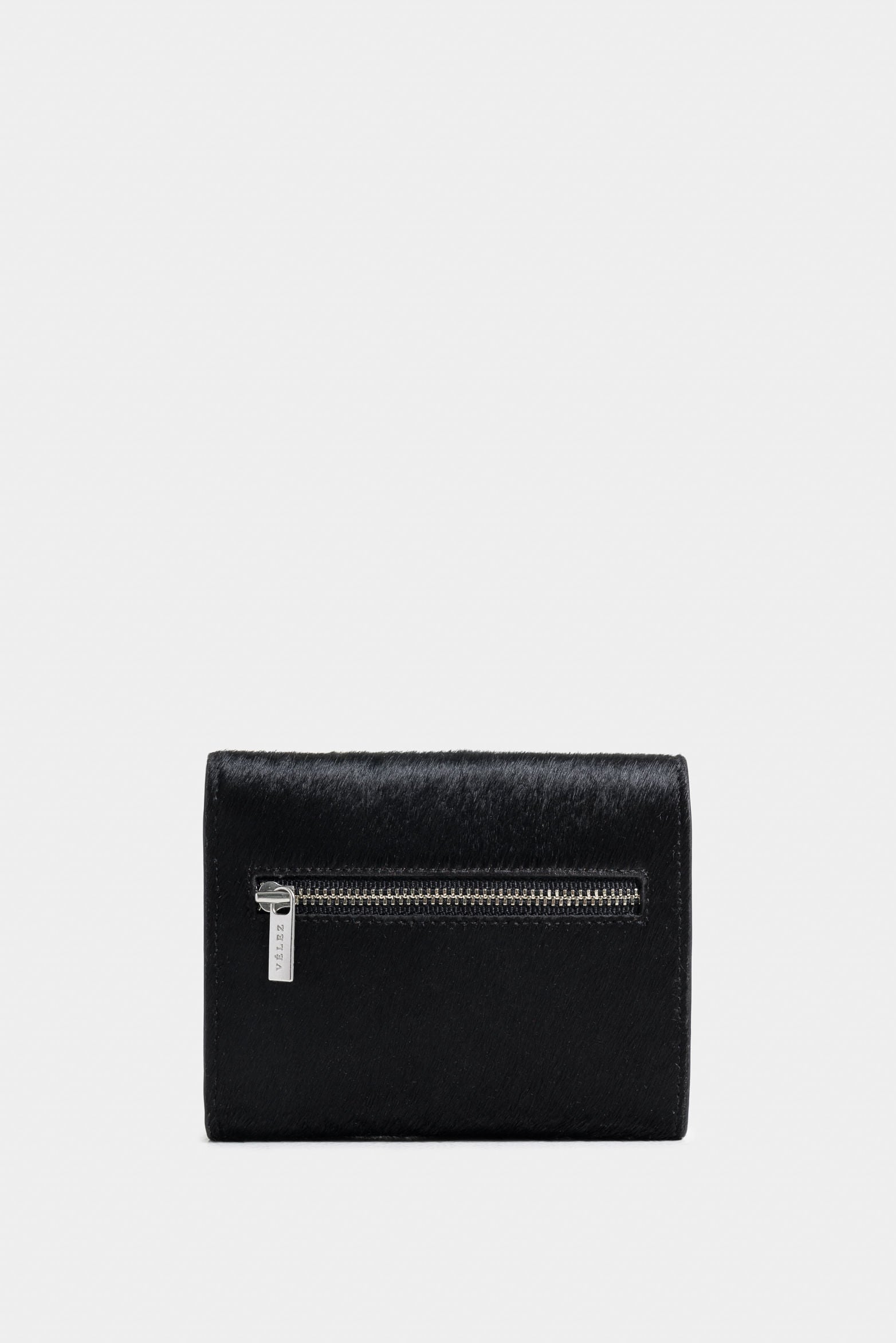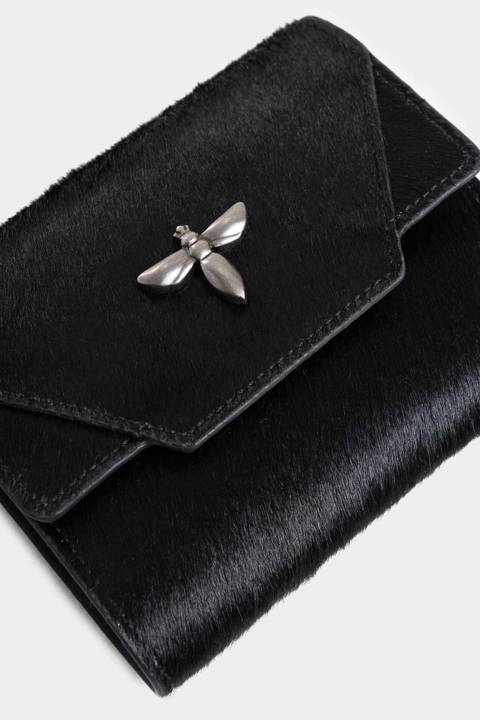 Taupe Leather Hair-On Wallet for Women with Bee Insignia