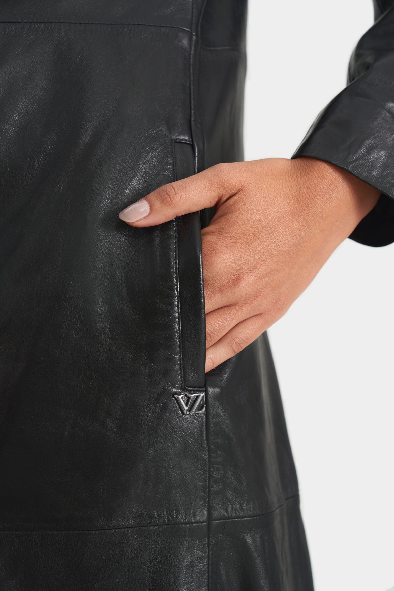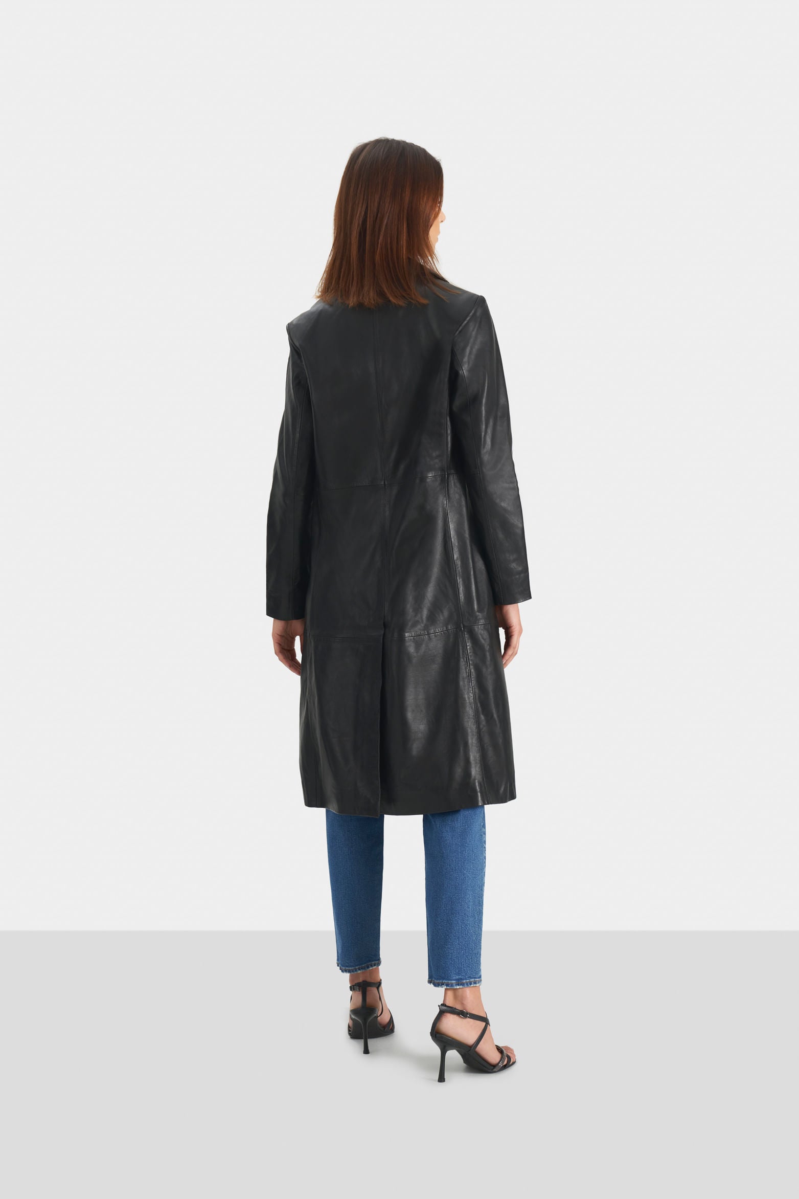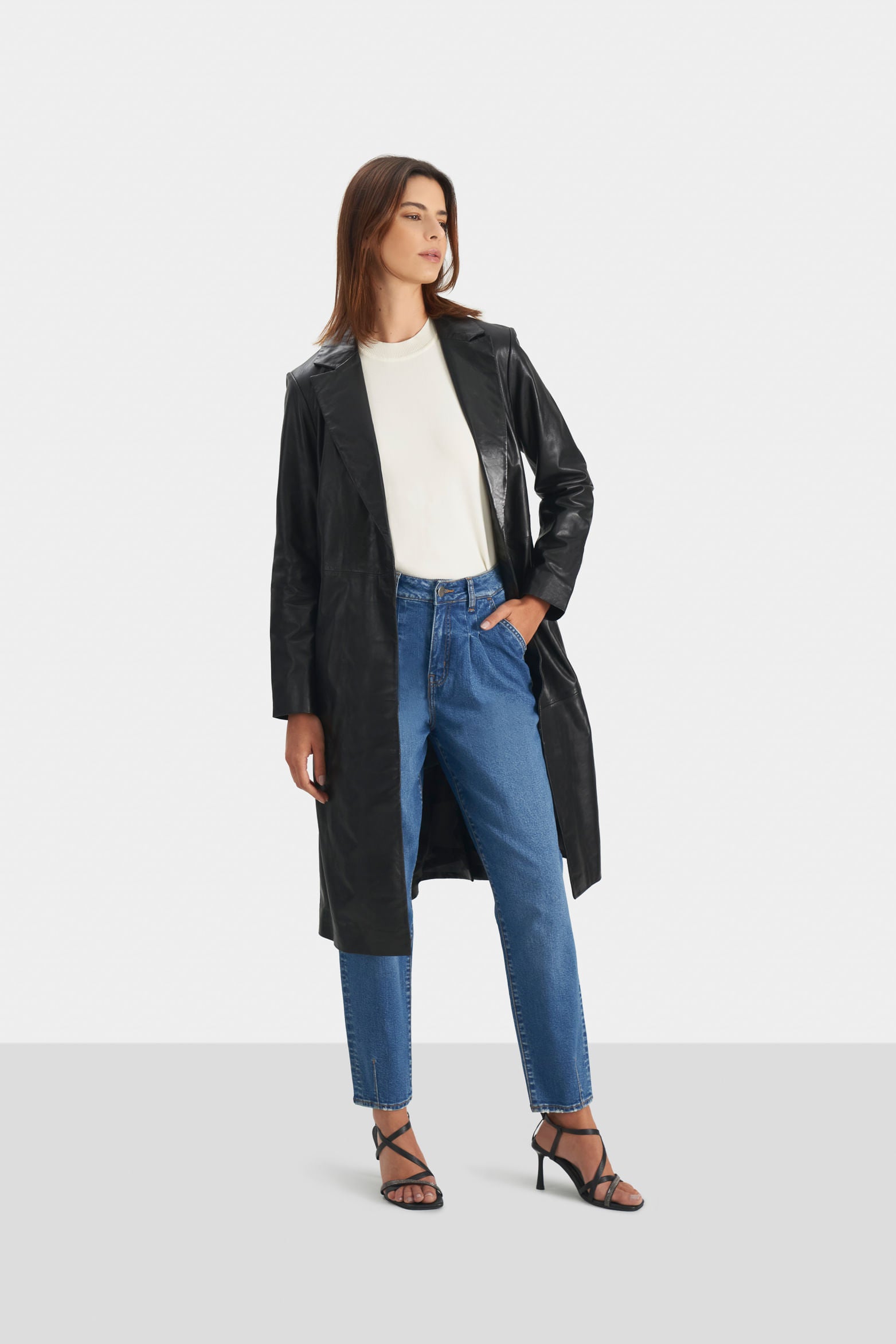 Our ovine leather coat features a collar design with lapels, welt pockets, a center button, and knee length. This piece is a statement of character that embodies the elegance and artisanal luxury of Vélez. It's ideal for starring in your cold-weather looks.